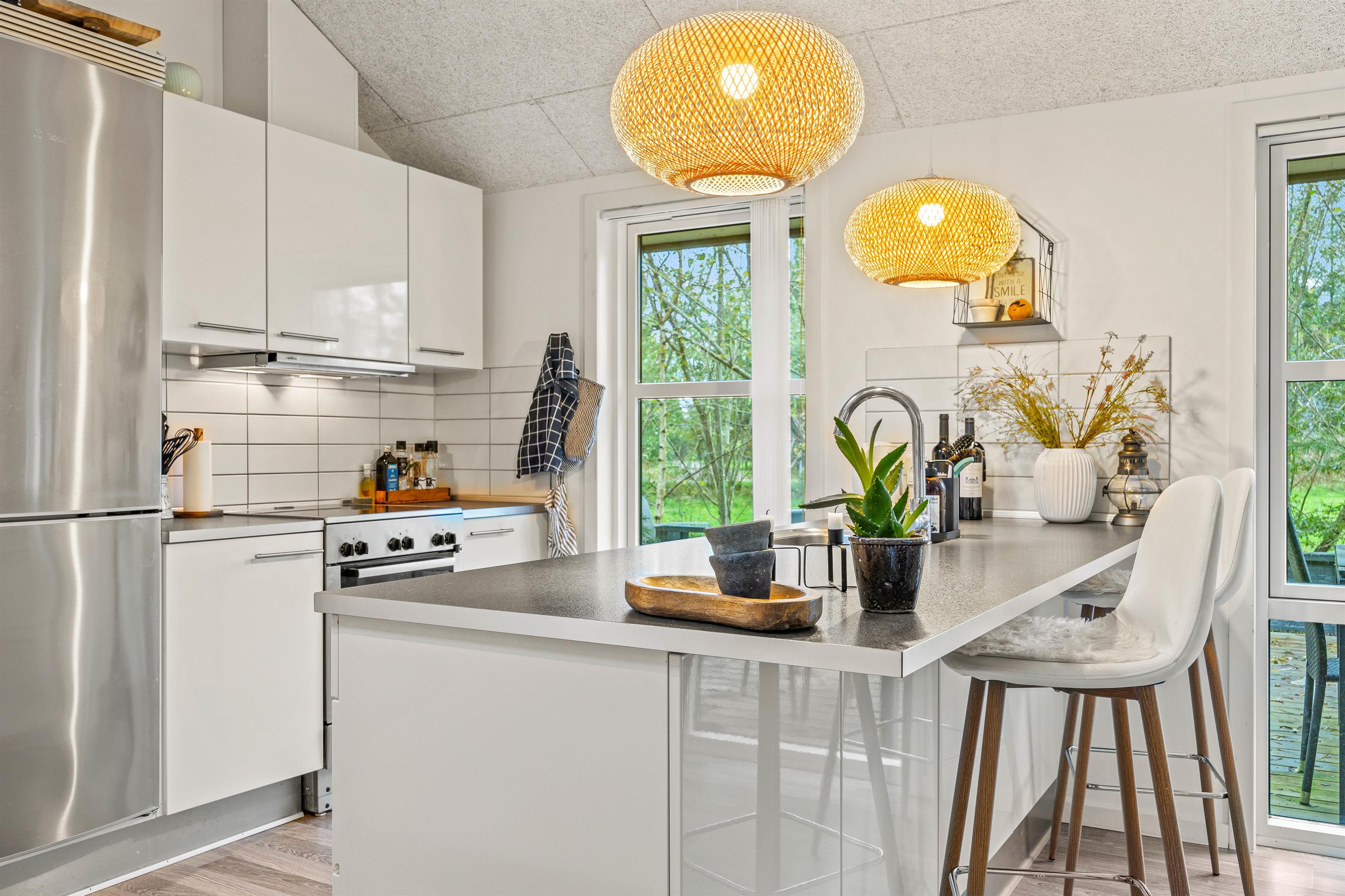 Hvert af feriehusets rum er indrettet med kvalitetsmøbler og stilfulde detaljer og tilbyder maksimal komfort. Det rummelige opholdsareal på 106 m² giver jer masser af plads til afslapning og velvære. Bliv betaget af den moderne og stilfulde indretning i dette feriehus.