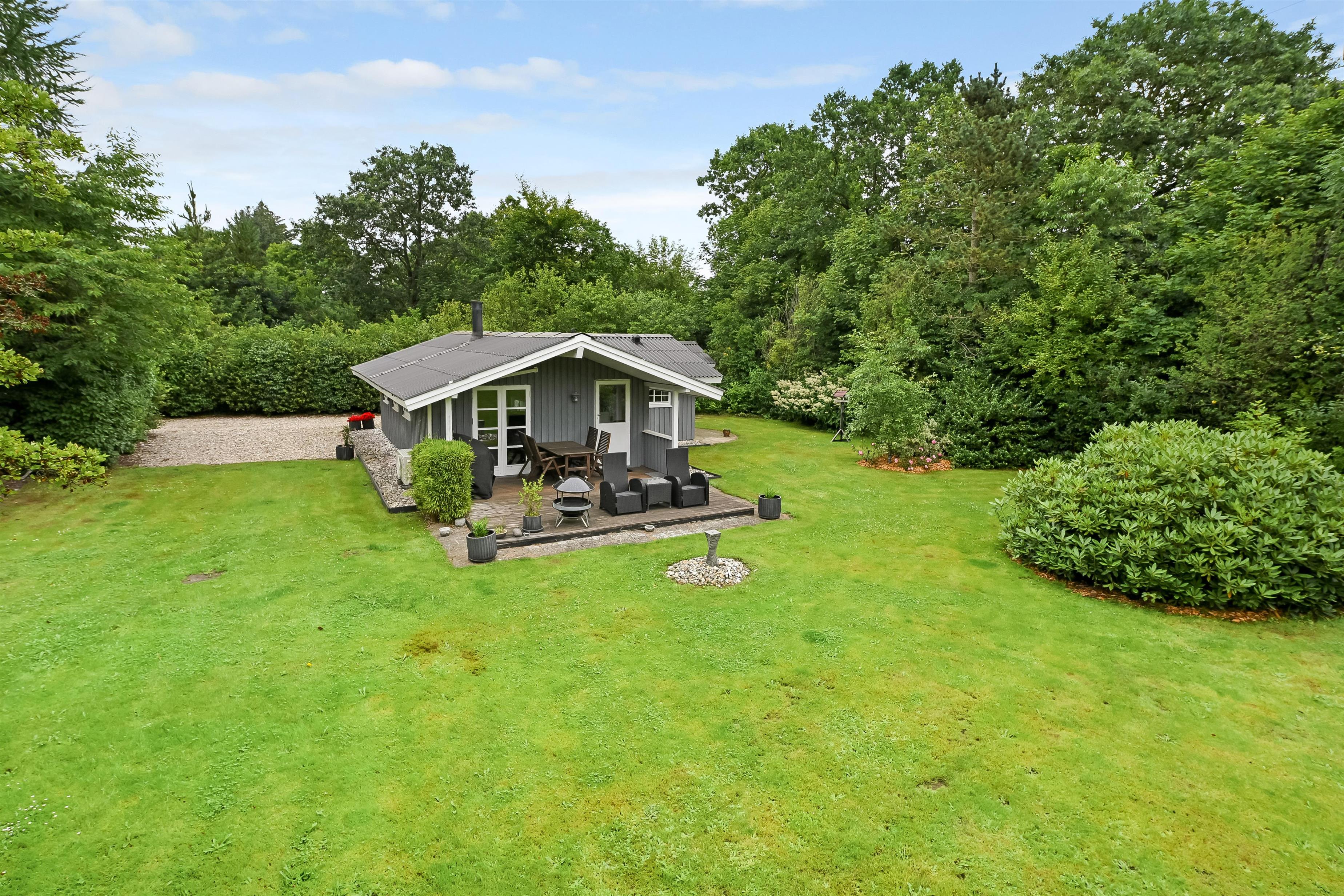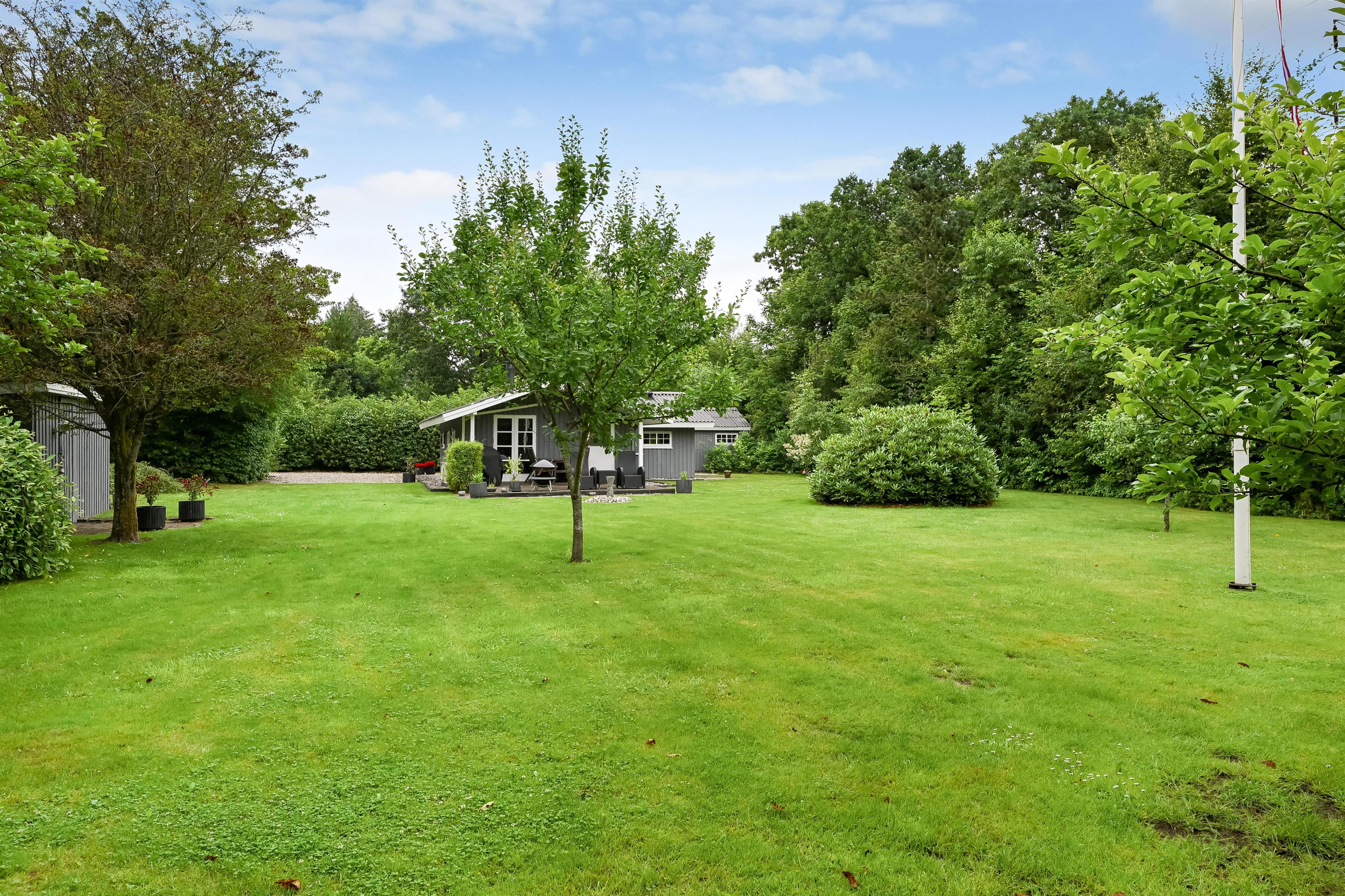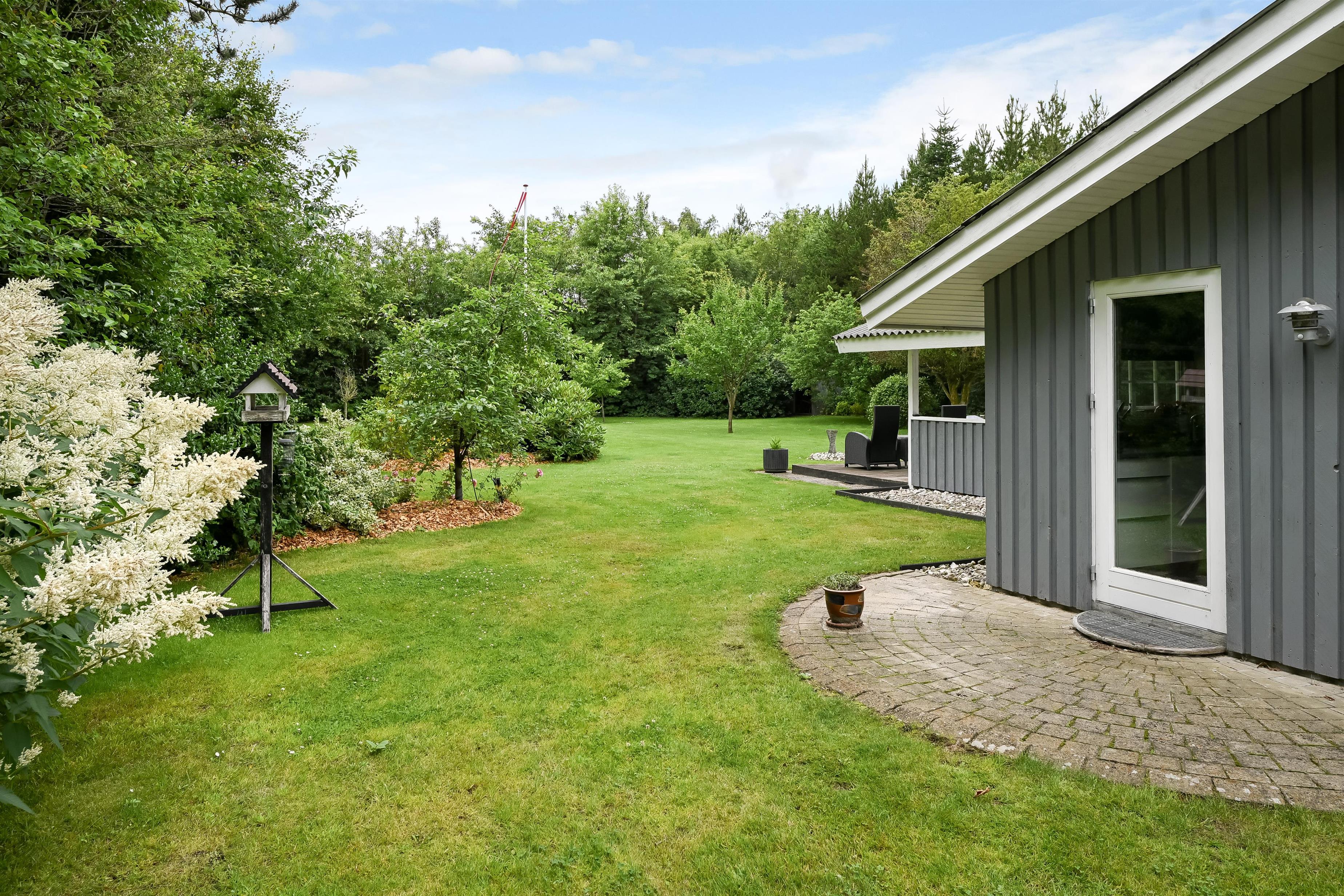 Fra stuen har I adgang til terrassen, og her åbner det 1583 m² store haveområde sig foran jer. Omgivet af buske og træer kan I nyde jeres privatliv. Komfortable havemøbler indbyder til afslapning, og en gasgrill står klar til hyggelige grillaftener.