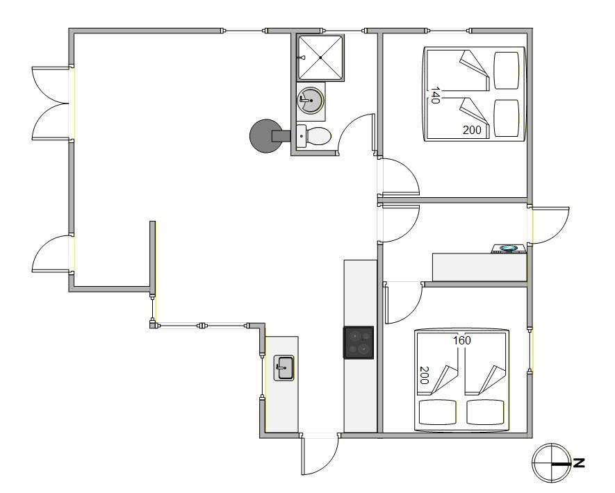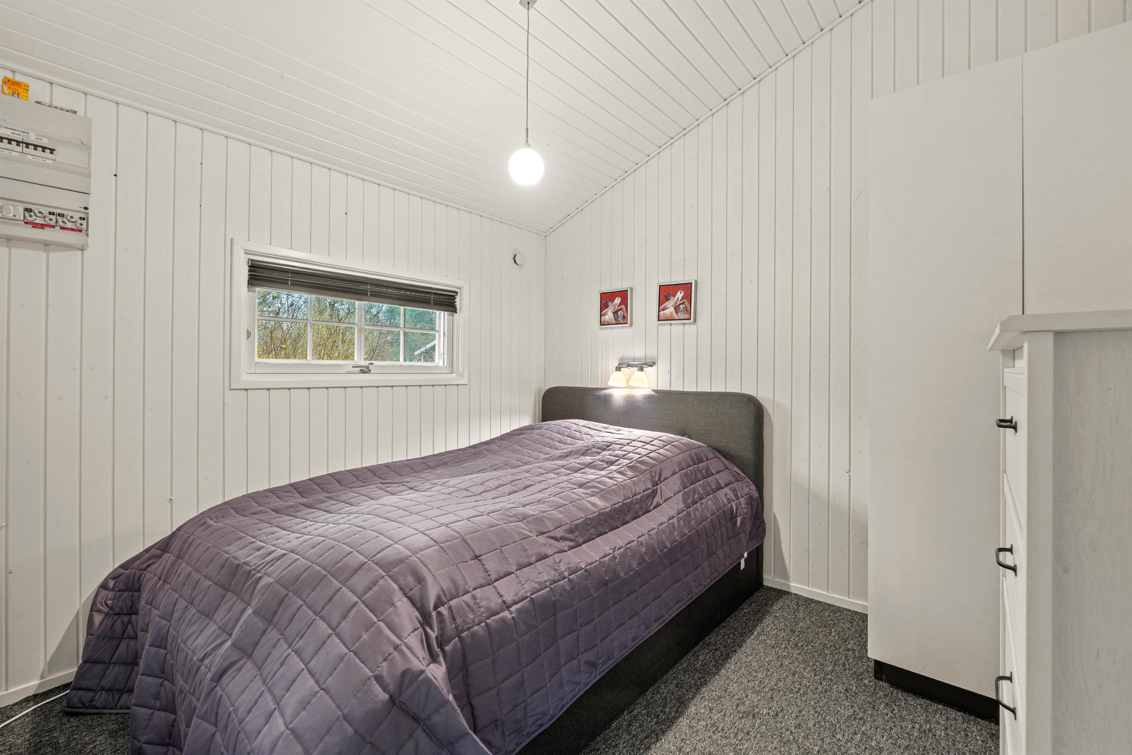 Et lille dagslysbadeværelse med bruser står også til rådighed i feriehusets. Udover brændeovnen kan I varme huset op med den energibesparende varmepumpe, som hurtigt bringer ferieboligen til jeres foretrukne temperatur. Om aftenen kan I fordele jer på de to soveværelser med komfortable dobbeltsenge.