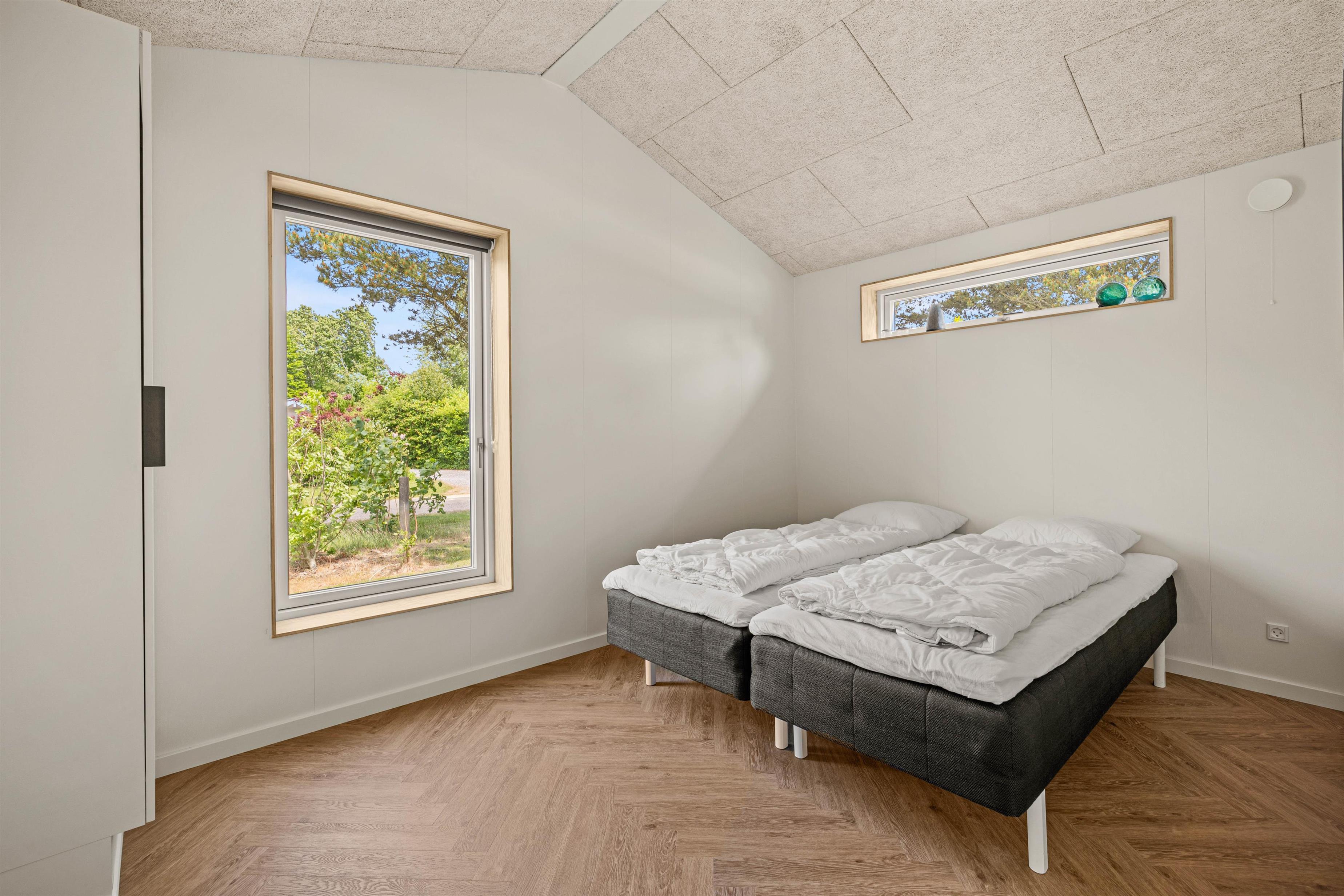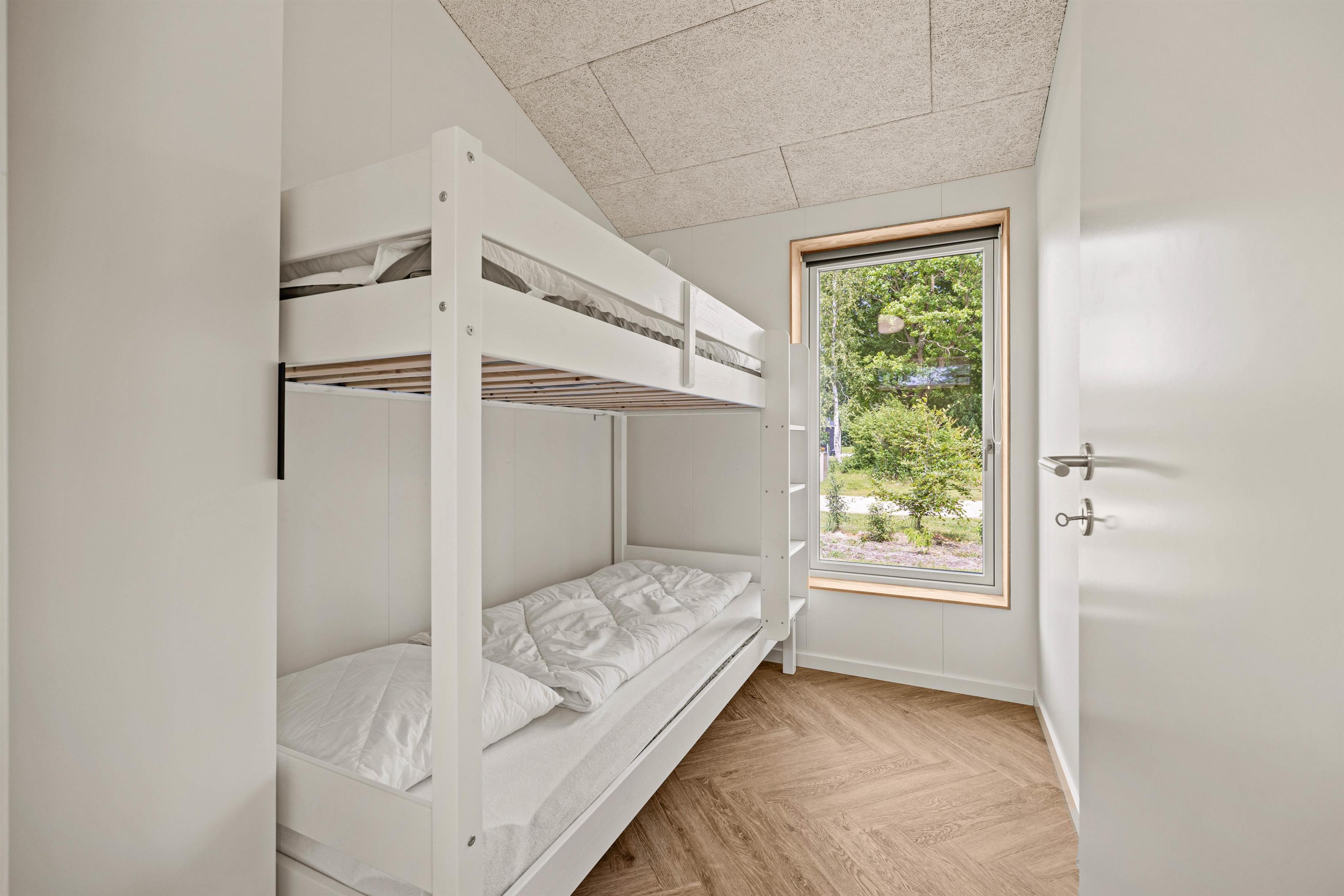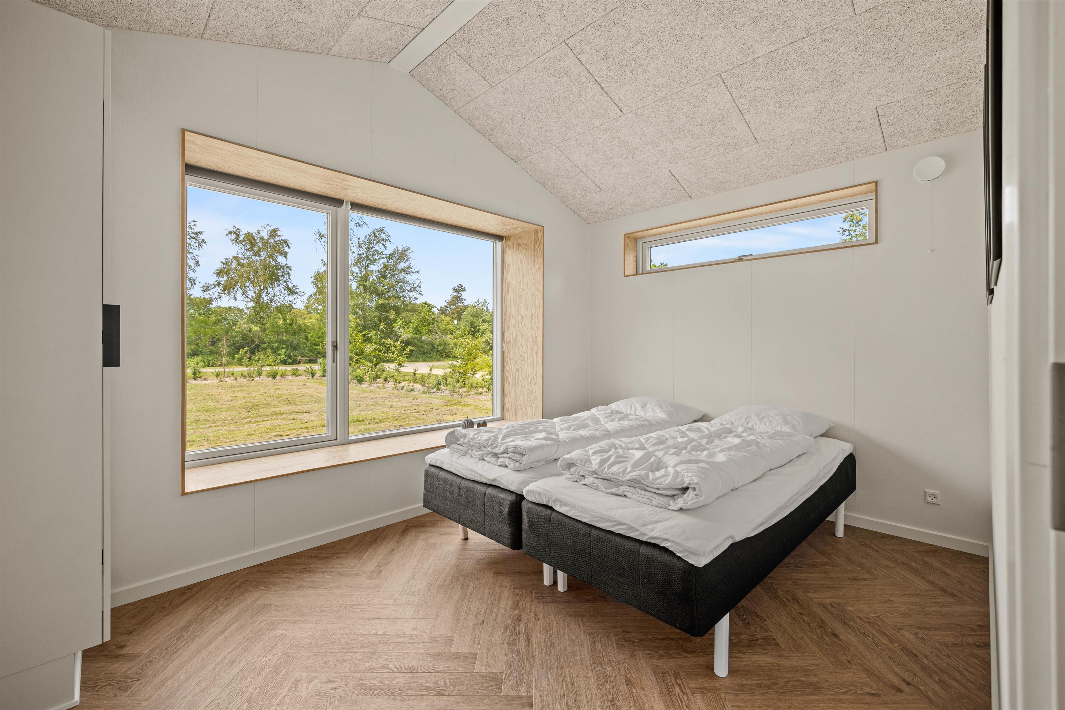 Sommerhuset har plads til op til 6 personer fordelt på 3 indbydende soveværelser med 2 dobbeltsenge og 1 køjeseng, perfekt til både familier og vennegrupper. De store vinduer giver et smukt lysindfald og skaber en varm og afslappet atmosfære i hele sommerhuset.