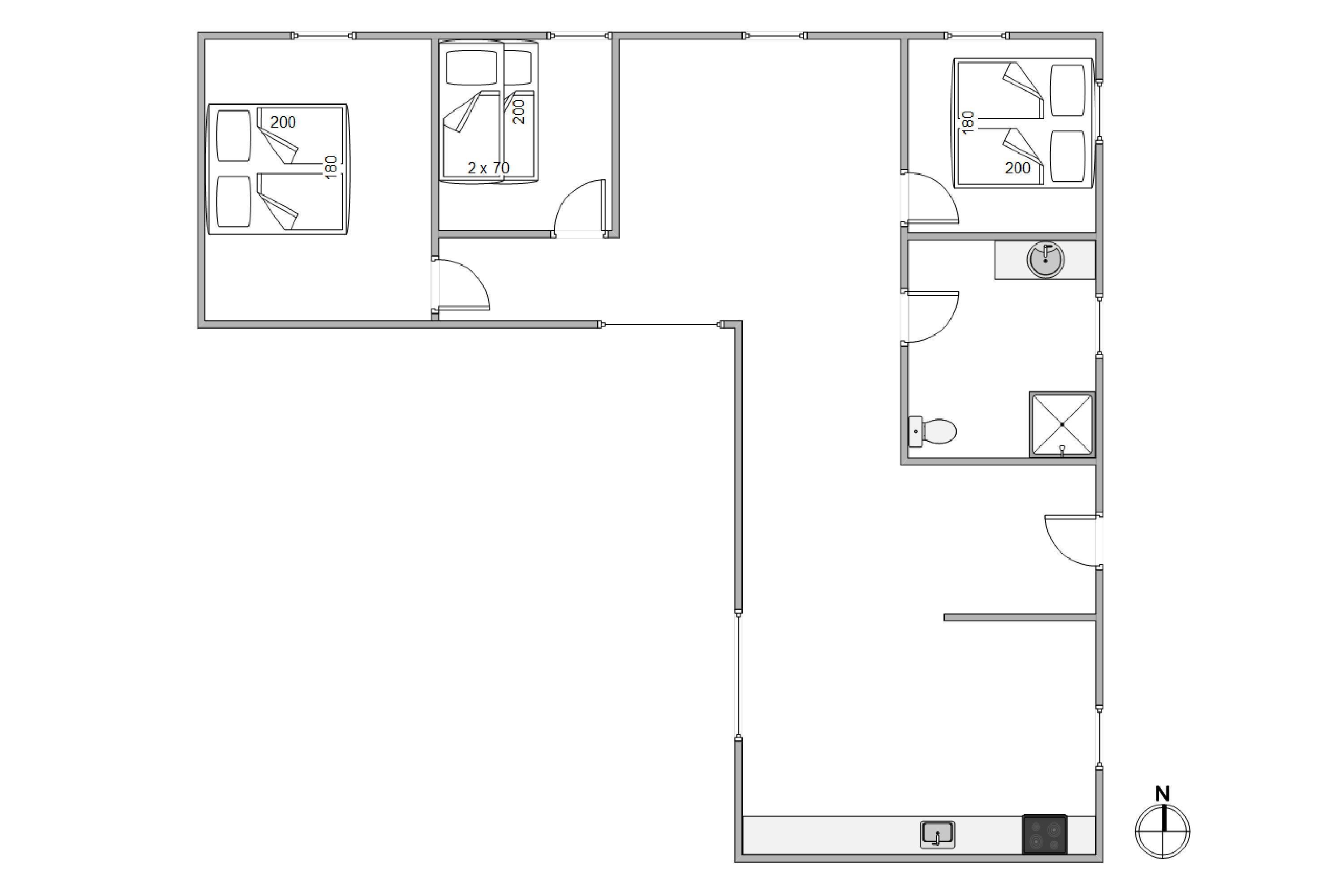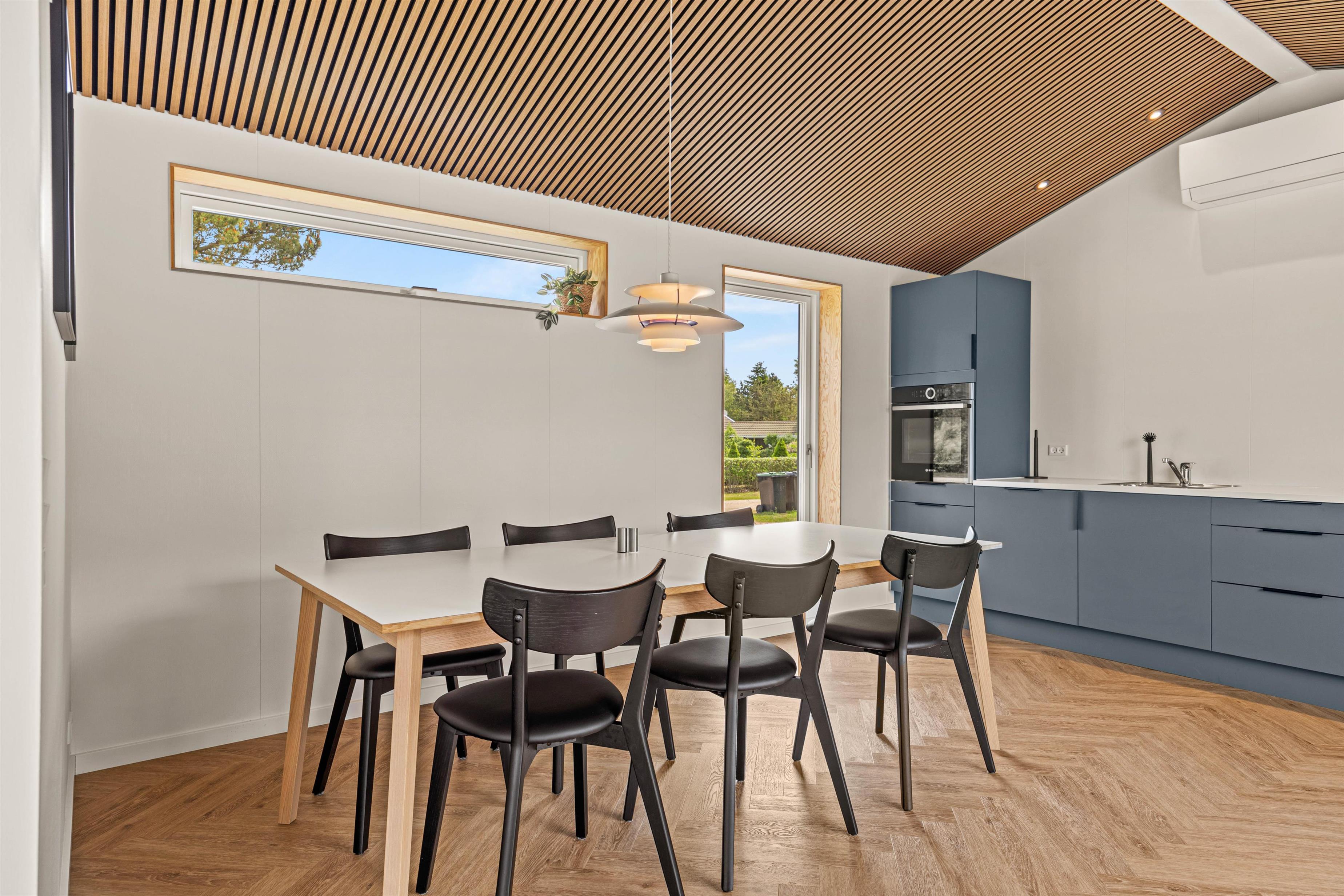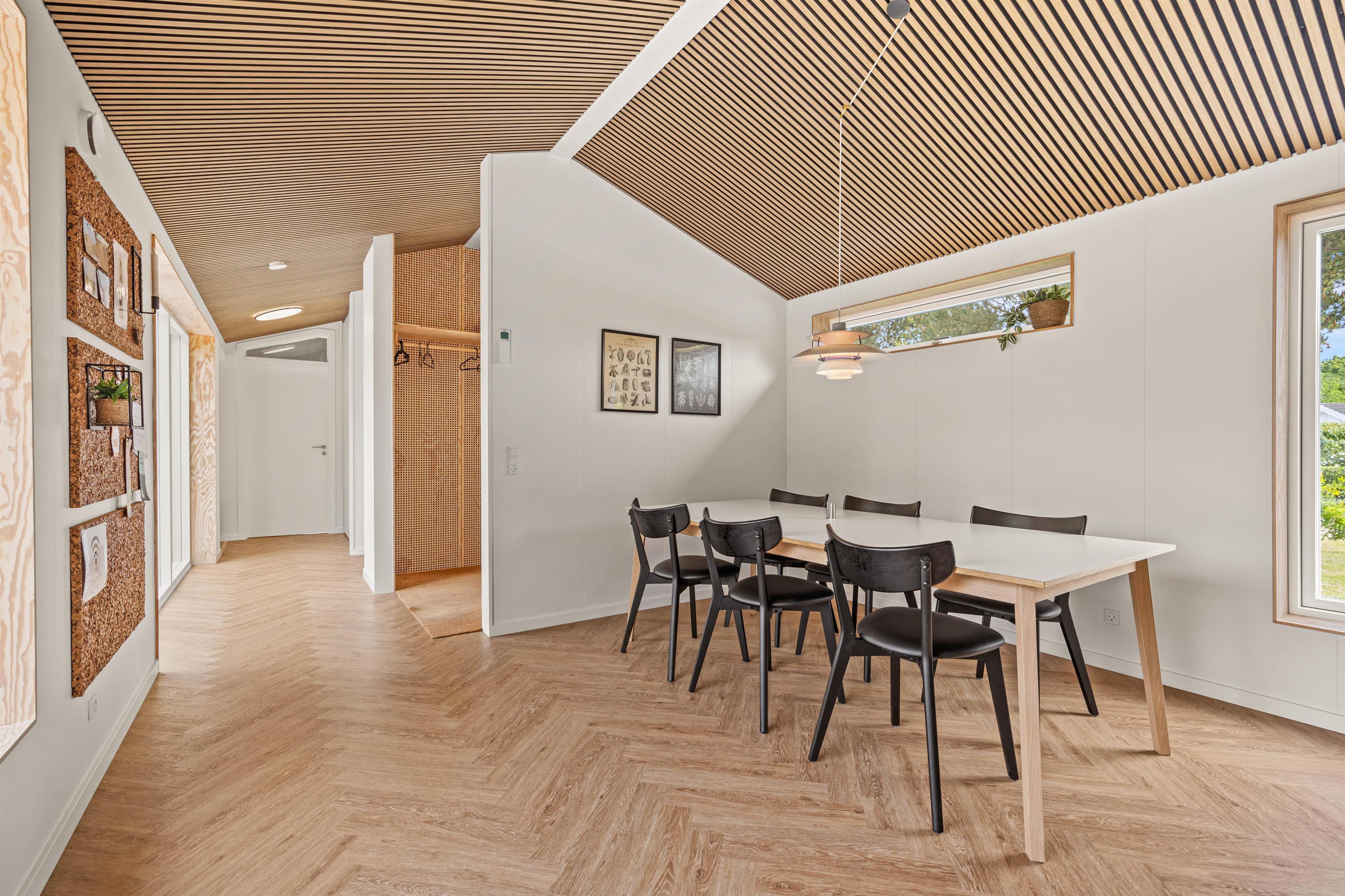 Sommerhuset har plads til op til 6 personer fordelt på 3 indbydende soveværelser med 2 dobbeltsenge og 1 køjeseng, perfekt til både familier og vennegrupper. De store vinduer giver et smukt lysindfald og skaber en varm og afslappet atmosfære i hele sommerhuset.