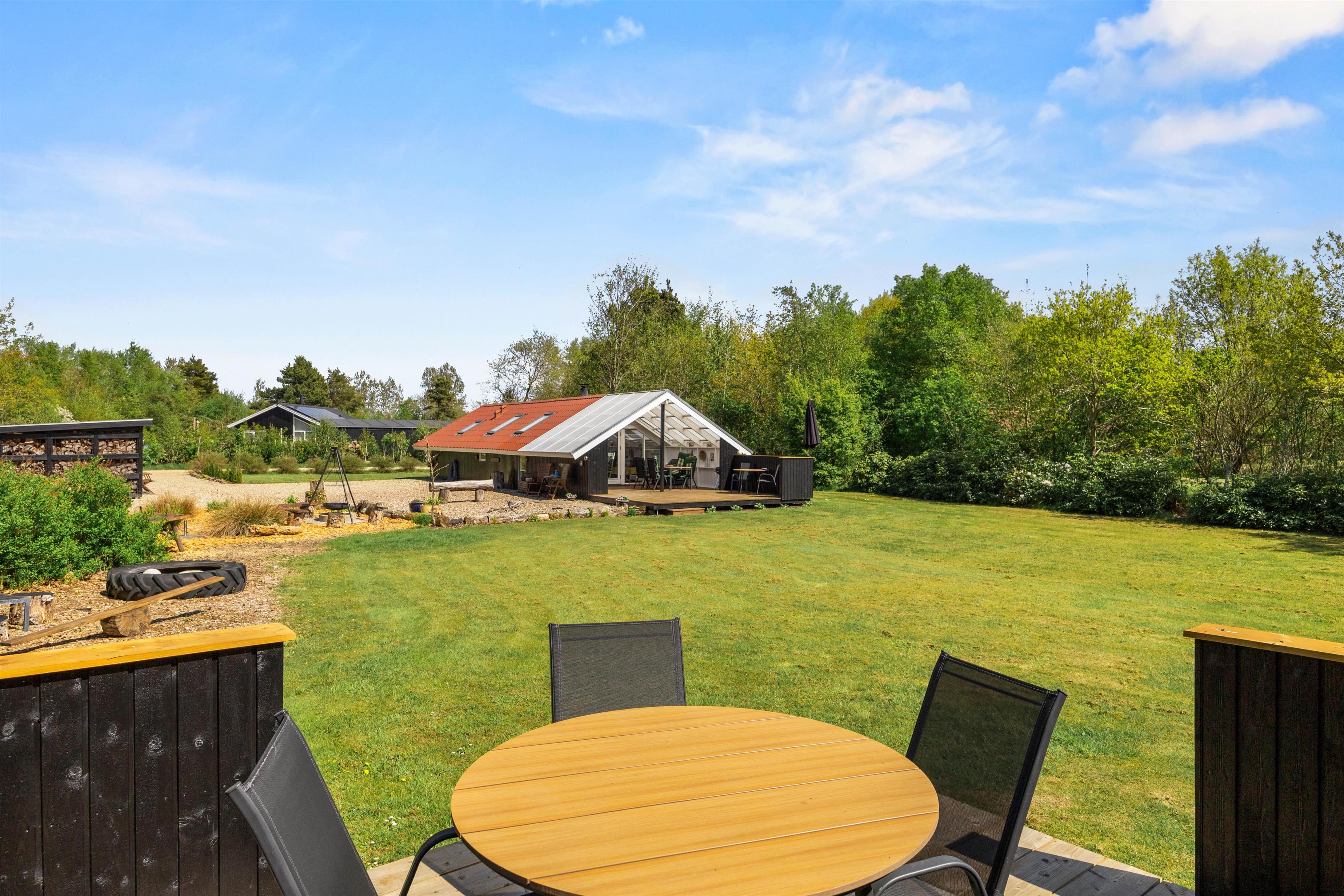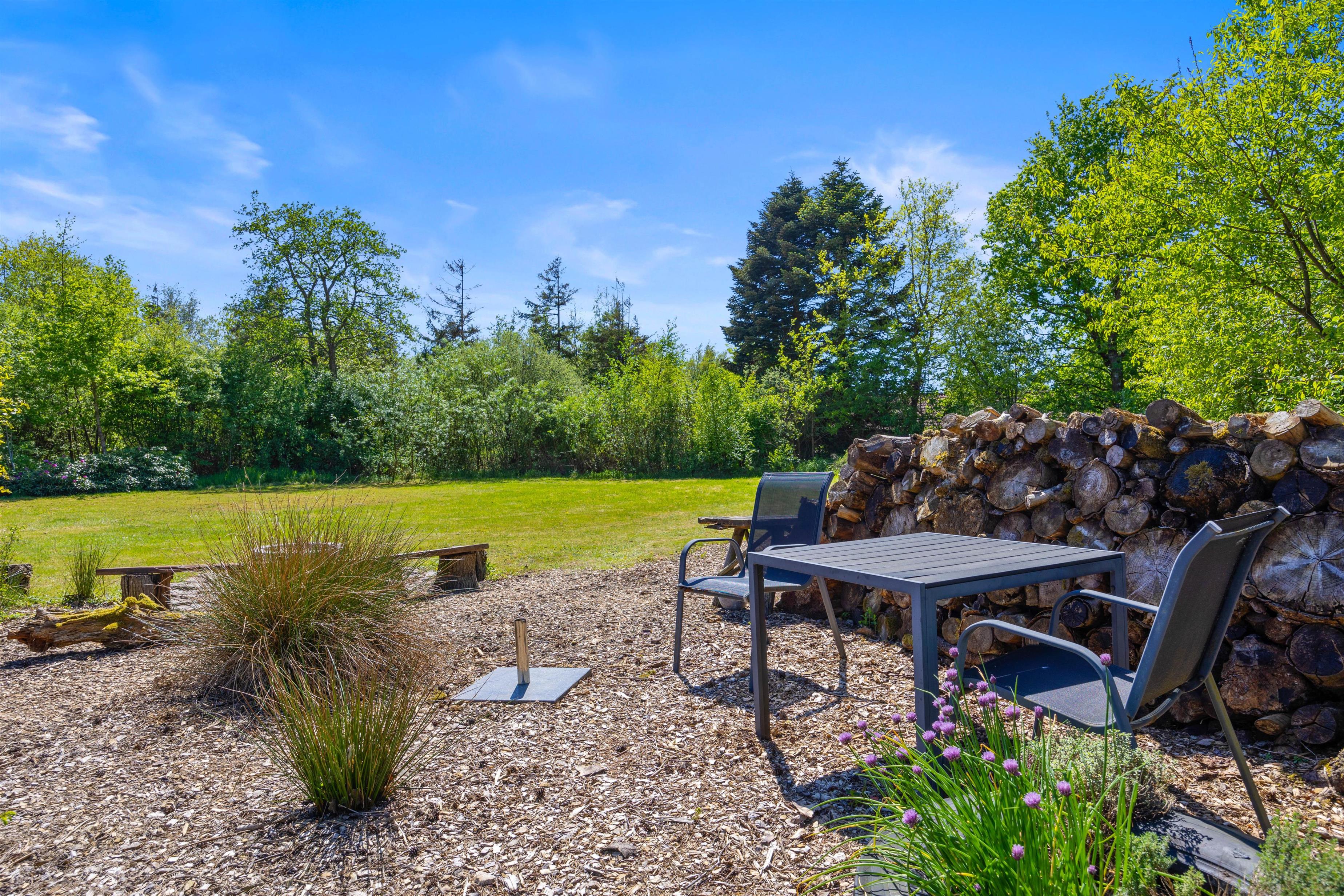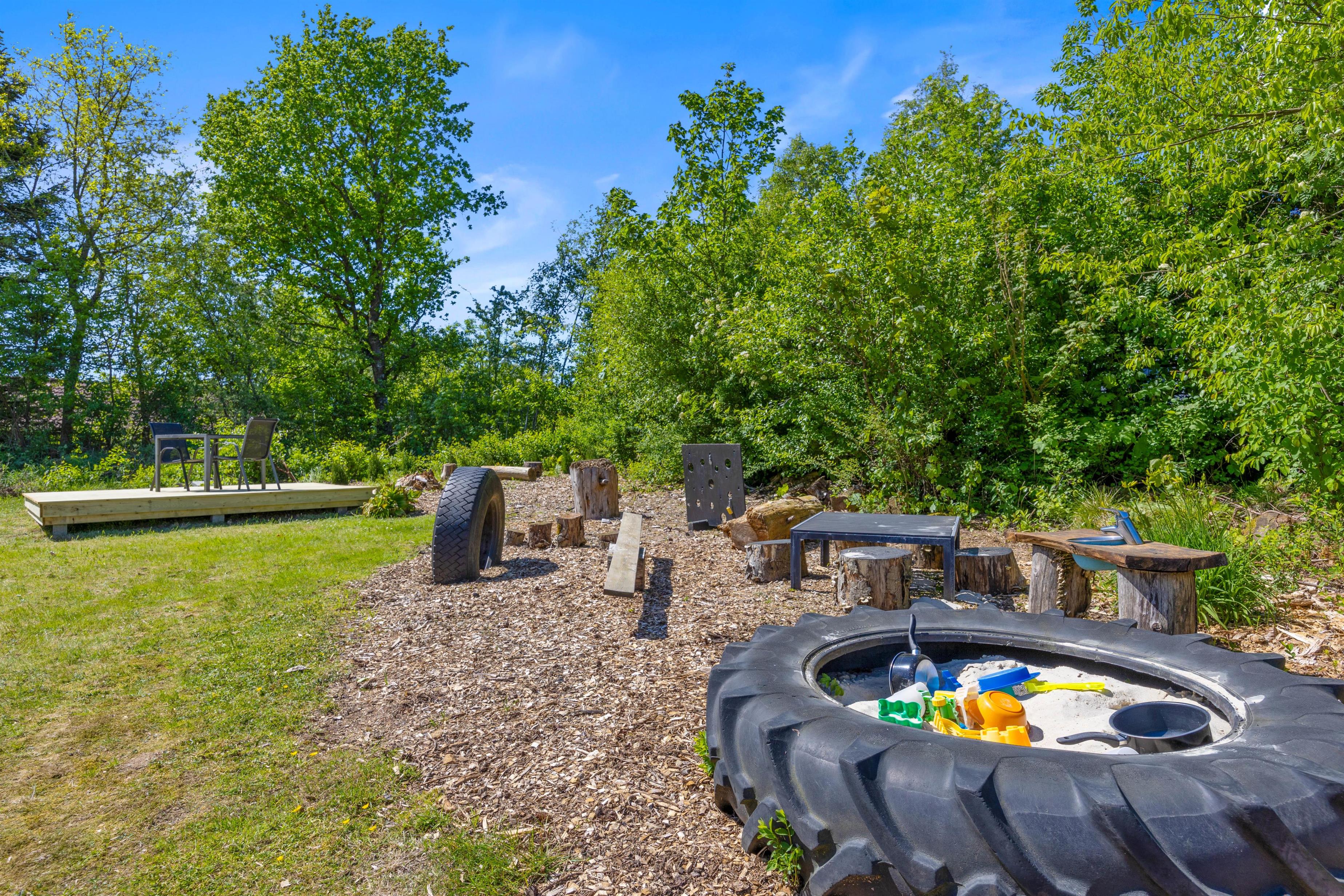 For de små er der en sandkasse, der inviterer til leg og sjov. Hele grunden er omgivet af grønne omgivelser, der giver jer en følelse af at være tæt på naturen, samtidig med at I kan nyde privathed og ro.
