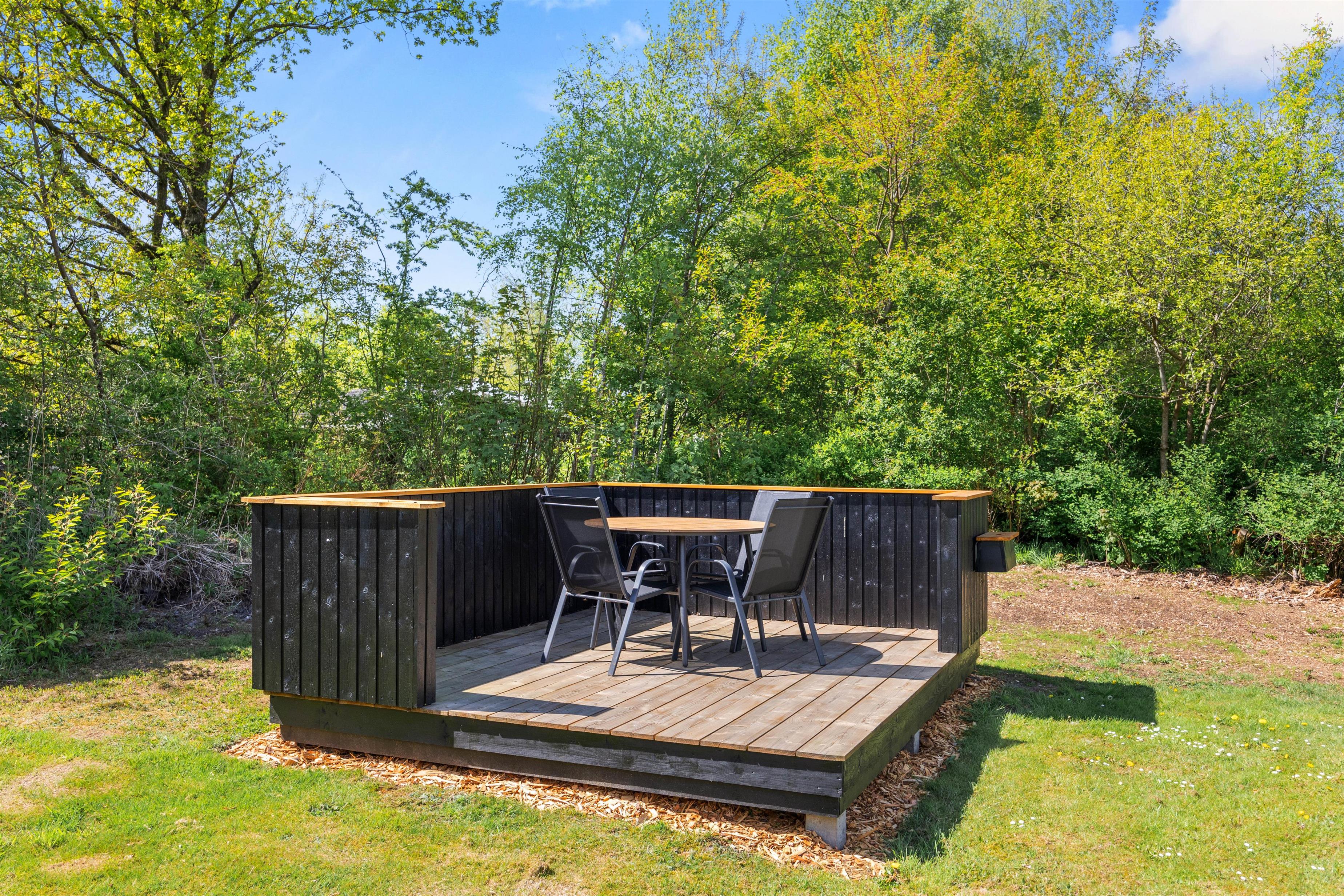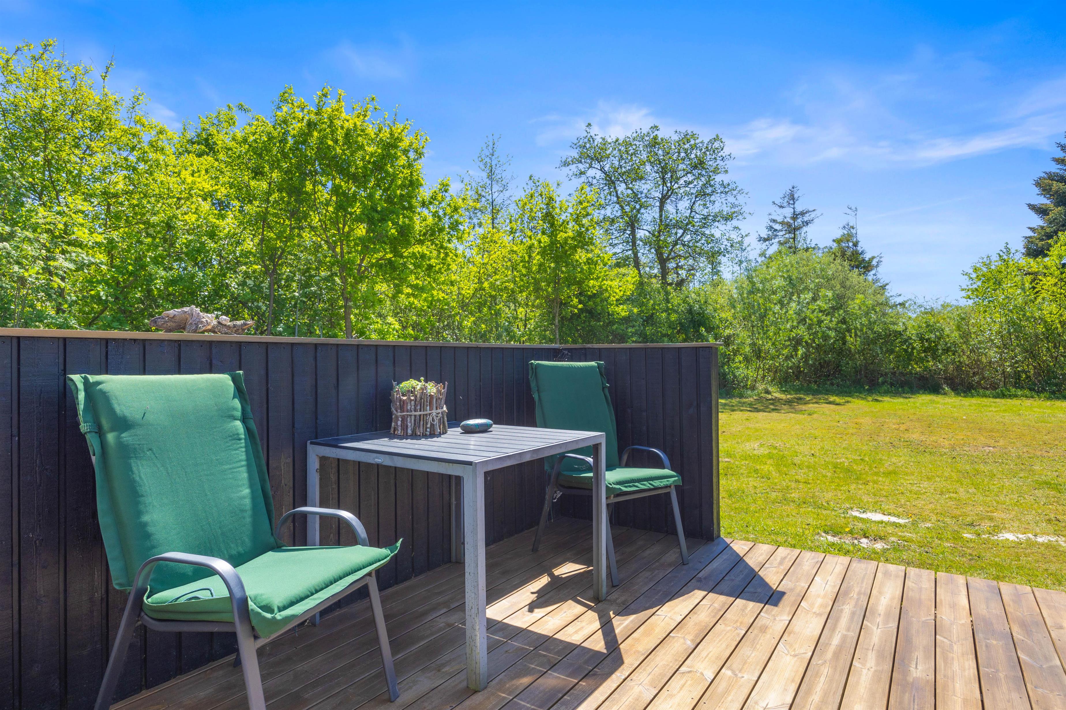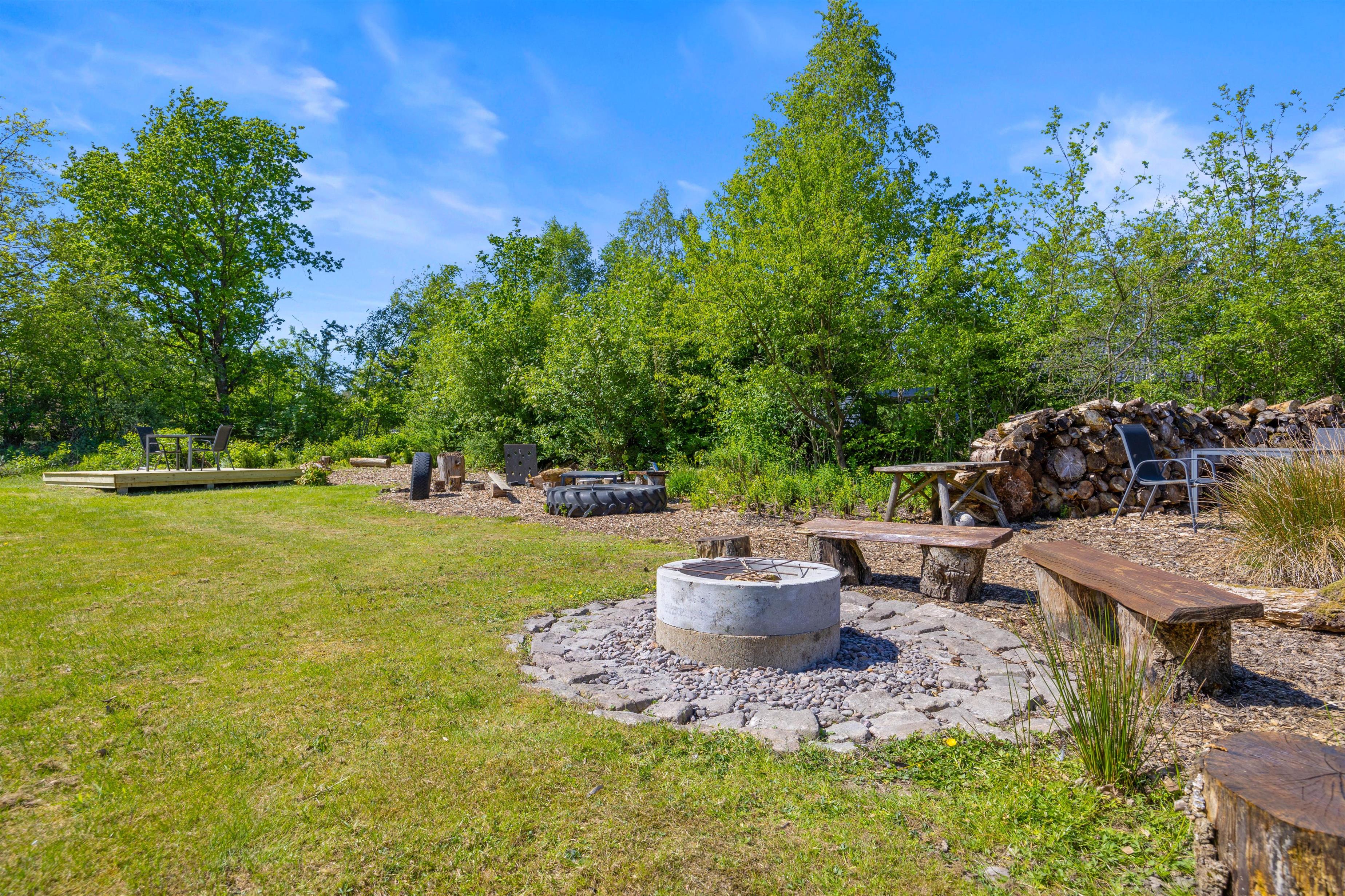 For de små er der en sandkasse, der inviterer til leg og sjov. Hele grunden er omgivet af grønne omgivelser, der giver jer en følelse af at være tæt på naturen, samtidig med at I kan nyde privathed og ro.