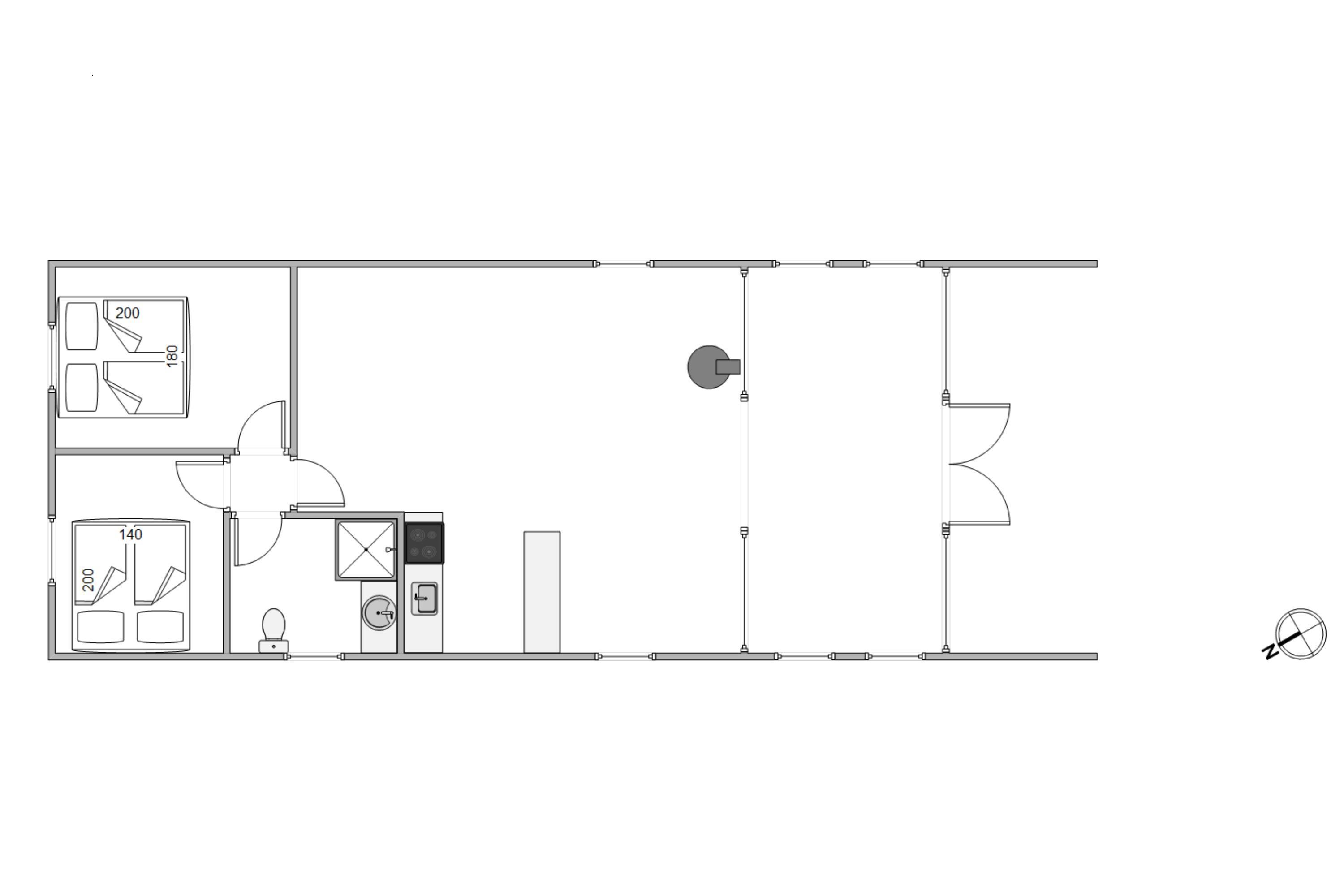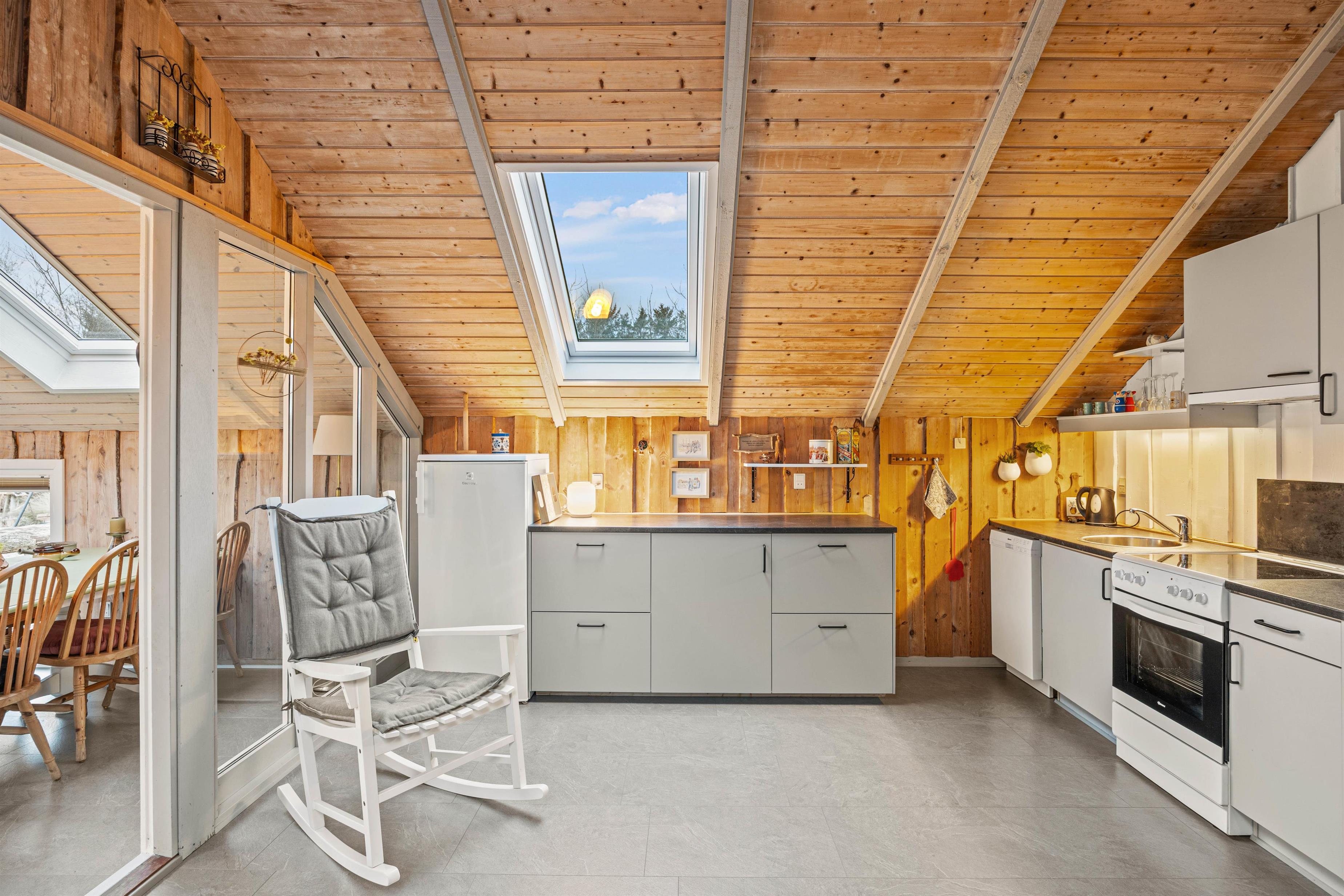 Den åbne planrum mellem køkken og stue sikrer, at I stadig kan hygge jer sammen, selvom nogle er i fuld gang med at tilberede feriens lækre måltider og andre slapper af på sofaen med en god bog eller en film. Det praktiske køkken er udstyret med alle nødvendigheder inklusive en opvaskemaskine, som sikrer, at I kan nyde mere tid sammen og mindre tid på rengøring.
