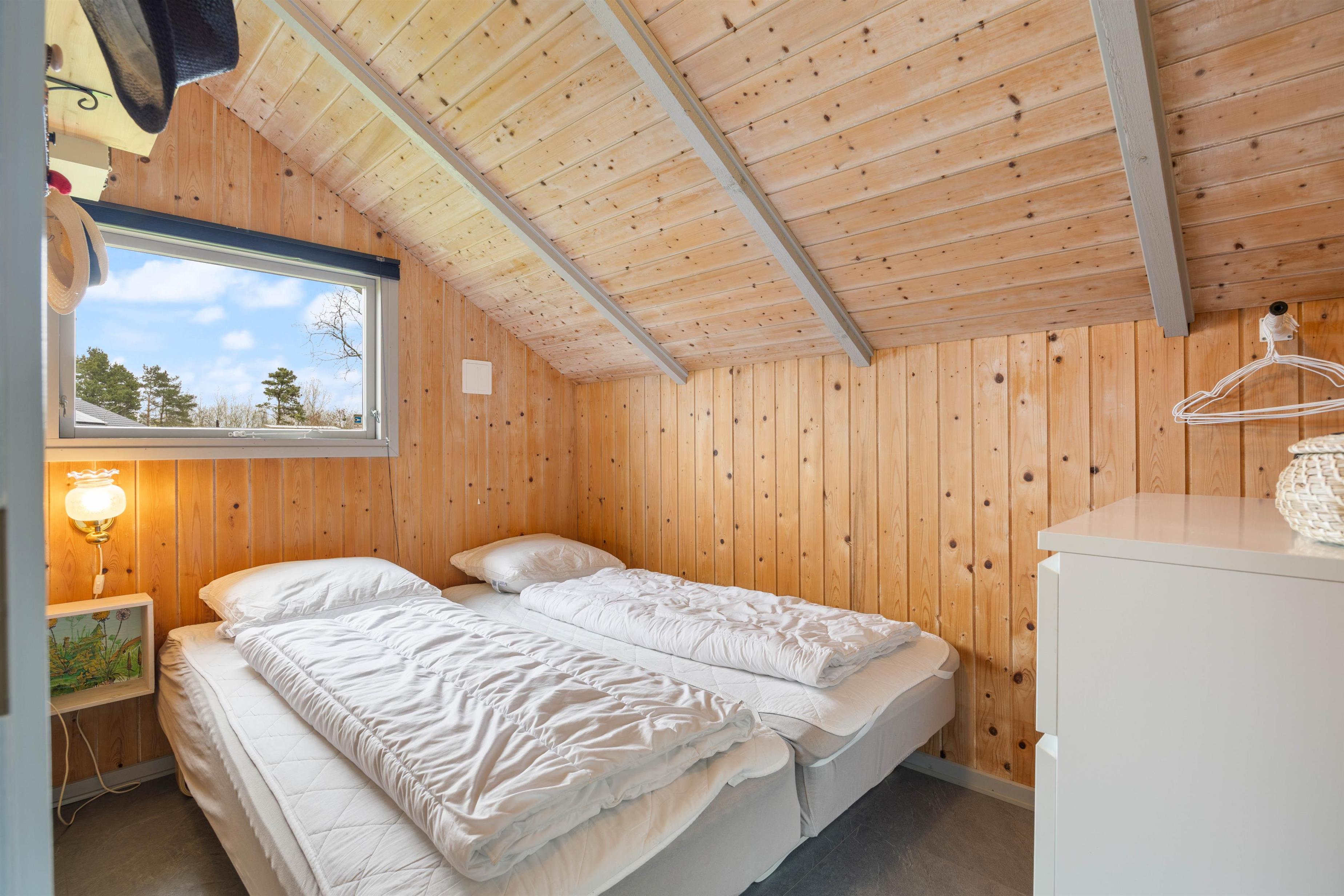 Sommerhuset er indhyllet af familiehygge, med sine 2 soverum i huset, hvor der i begge er dobbeltsenge, der indbyder til afslapning og restituerende søvn. I finder også et fint badeværelse fra 2025 med gulvvarme, så de tidligere morgener bliver lidt nemmere.