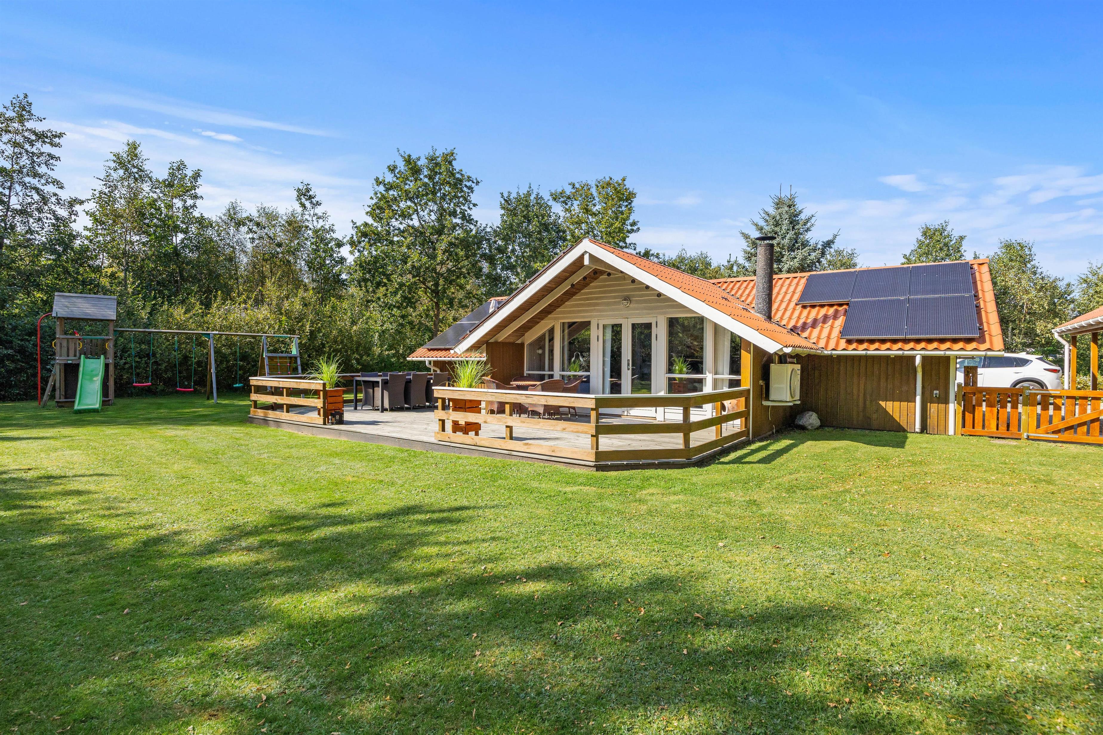 Bare rolig, mens børnene leger, kan I trygt holde øje med dem fra terrassen. Terrassen er delvist afskærmet og overdækket, og her finder I alt, hvad I behøver til hyggelige måltider under åben himmel, inklusive grill og havemøbler.