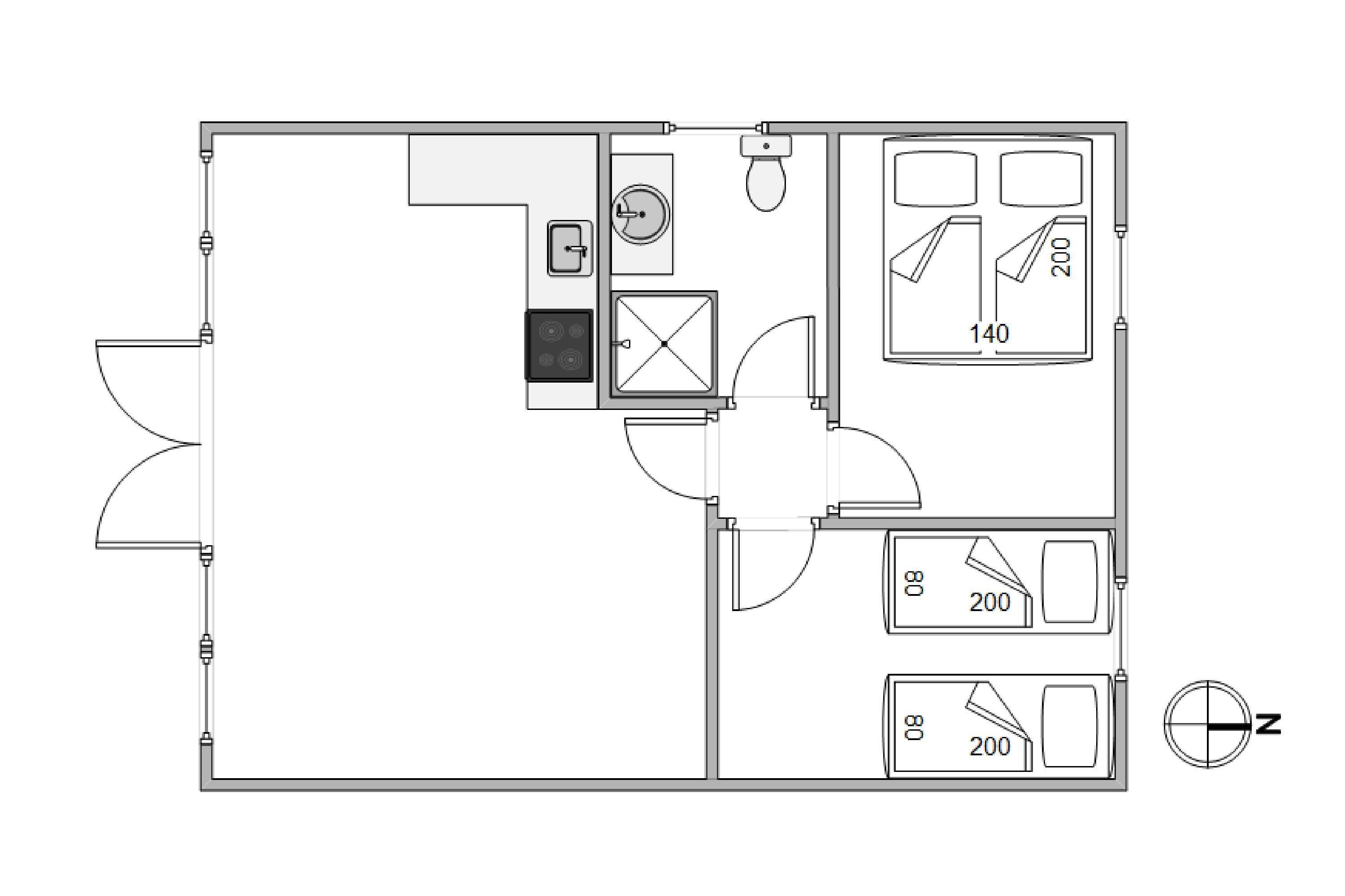 Her venter jer 2 soverum med helholdsvis en 140x200cm dobbeltseng og 2stk. 80x200cm enkeltsenge, der sikrer jer gode nætter. Det lyse badeværelse med bruseniche er med gulvvarme, så I ikke skal frygte kolde fødder i de kolde måneder.