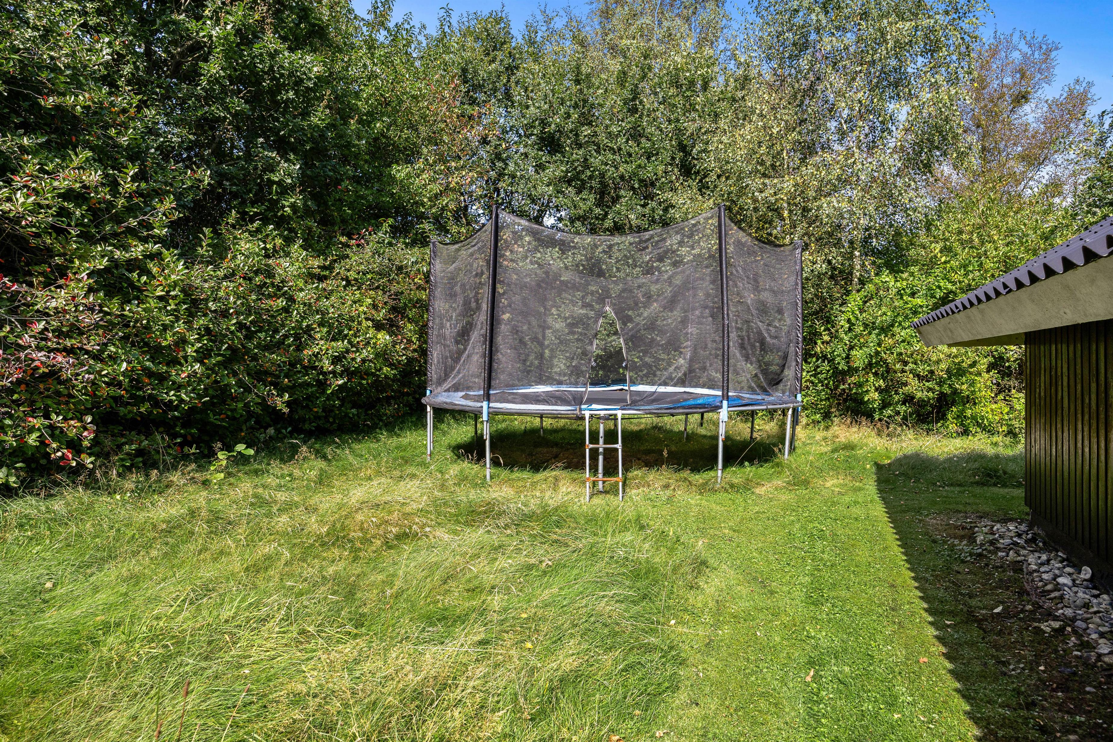 Feriehuset på Fyrrelunden 58 er beliggende på en 1553m2 stor plænegrund midt i skønne Jegum Ferieland, der indbyder til mange timers sjov og leg – hvor især jeres hunde og børn kan få brændt godt med krudt af. Her er der nemlig foruden den store plæne både fodboldmål, gynge og trampolin.