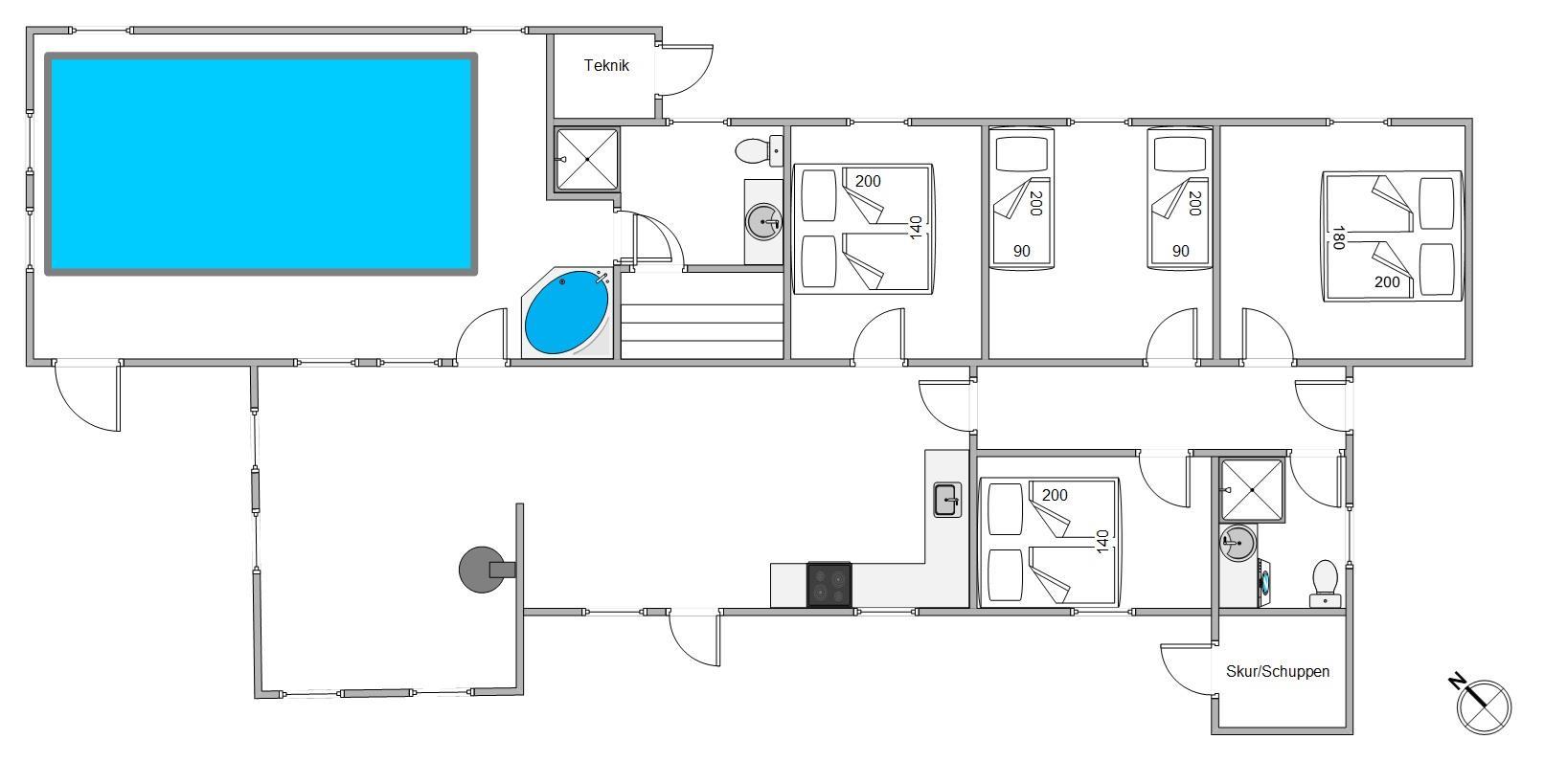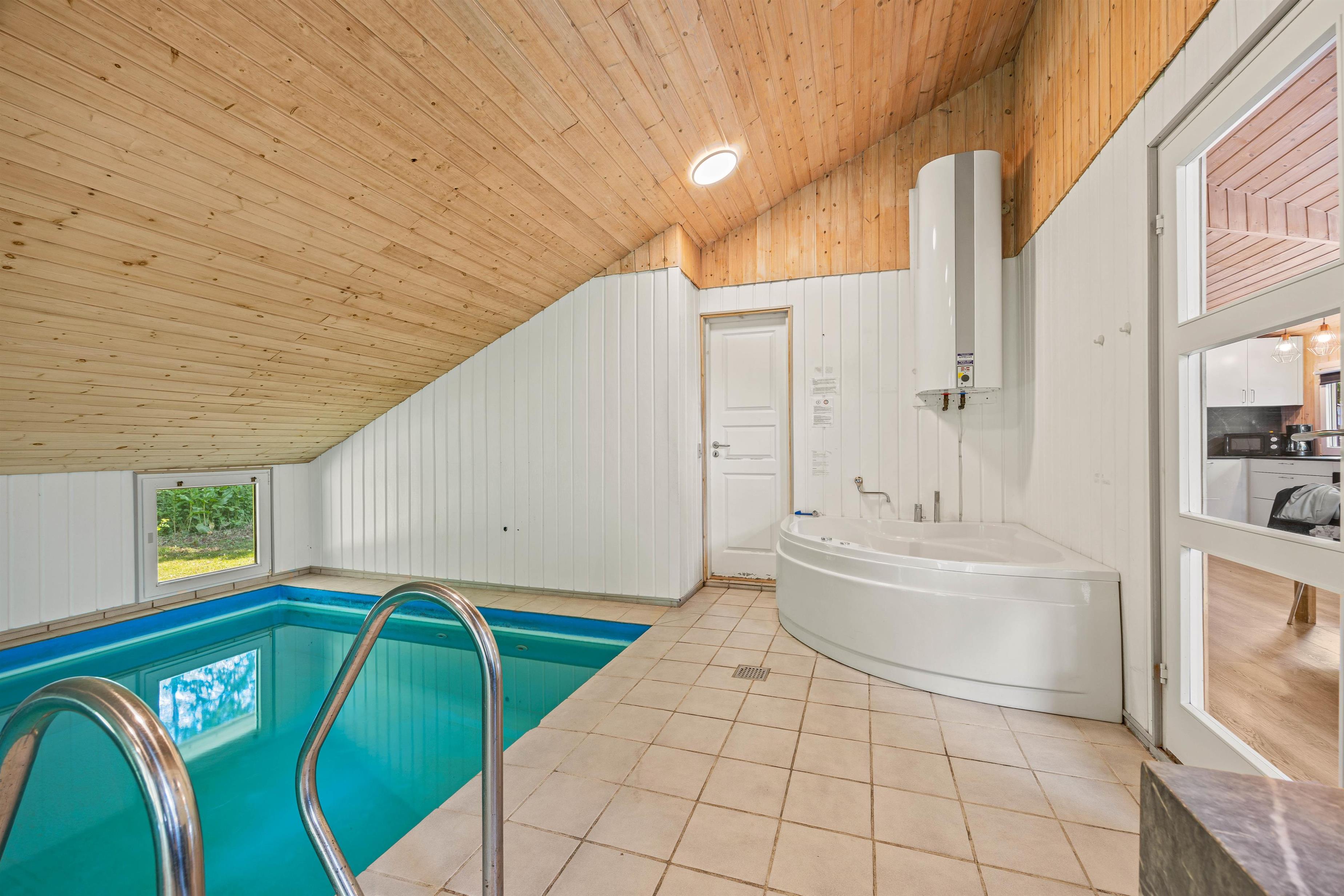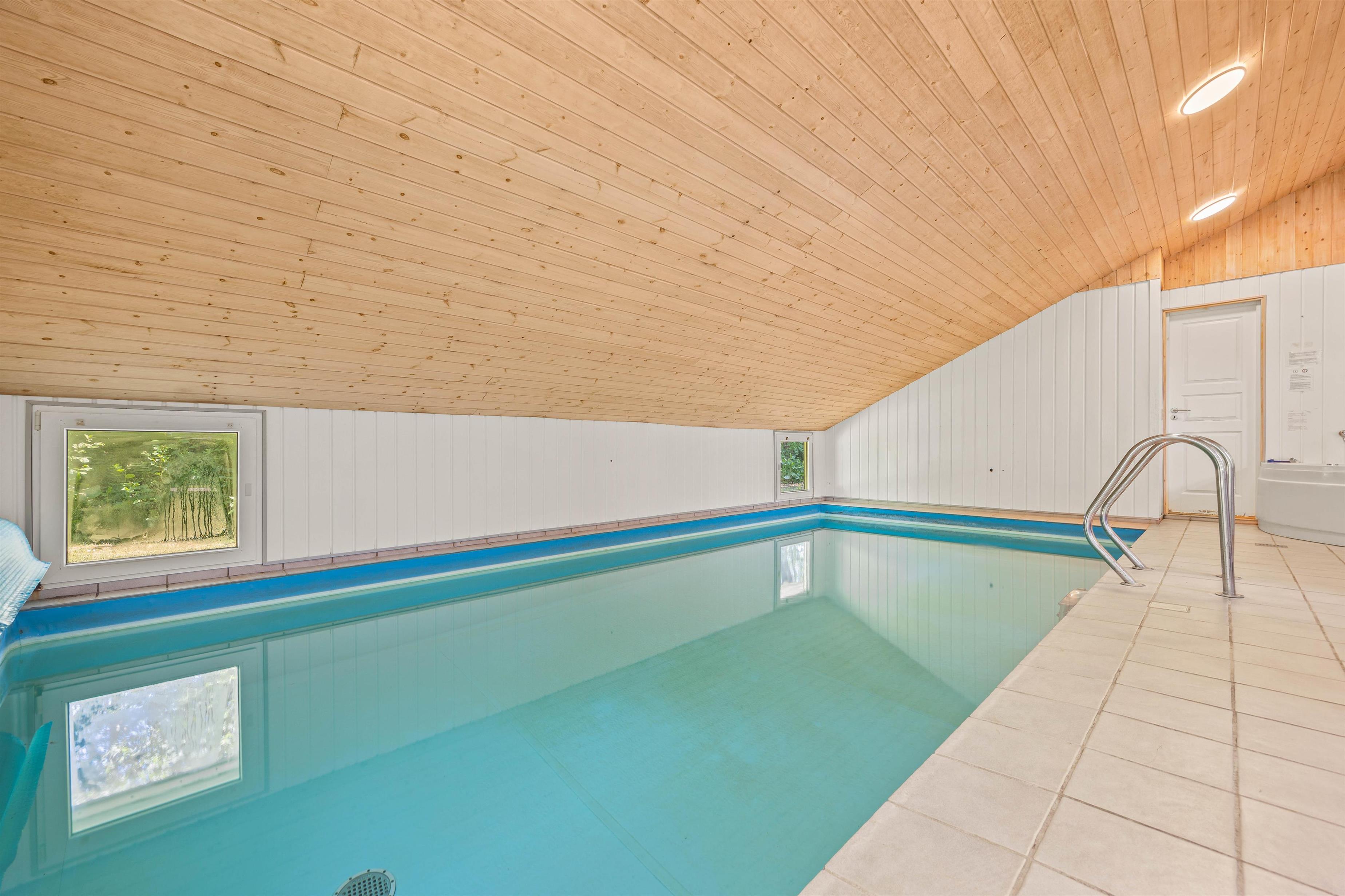 Rummeligt poolhus med brændeovn, spabad og sauna
