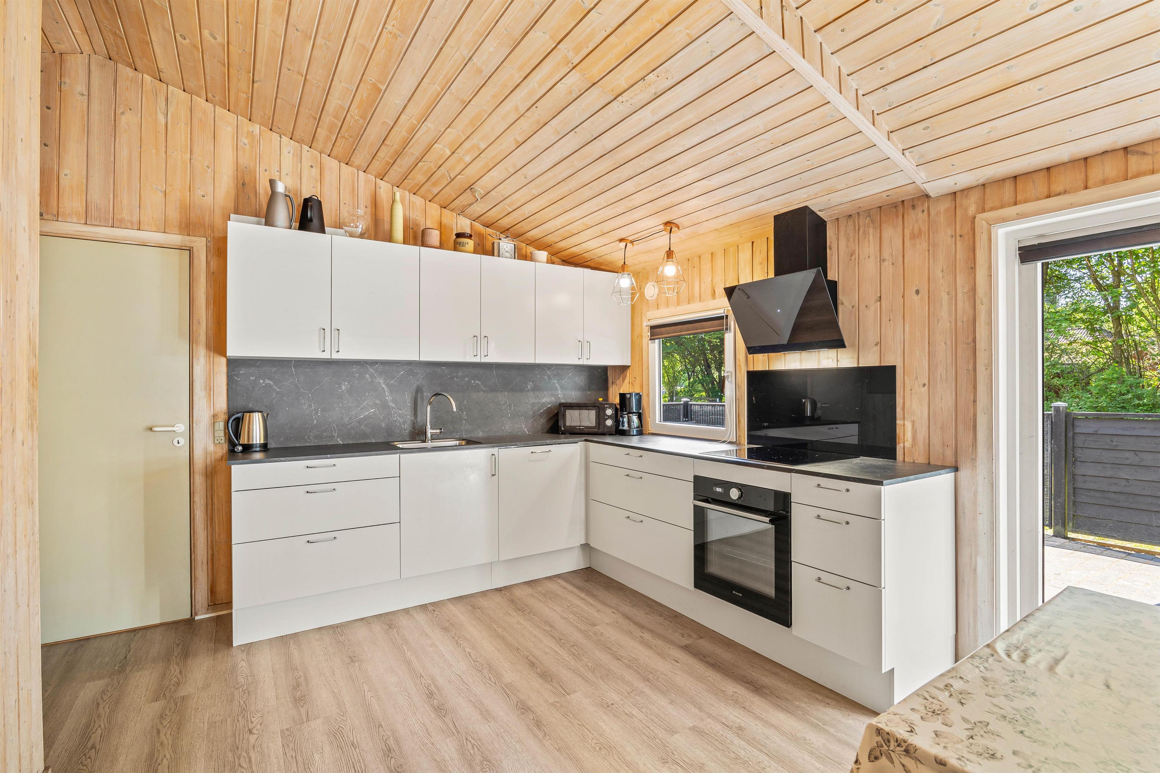 Det rummelige feriehus har 4 soveværelser og ikke mindre end 2 badeværelser, der giver plads til op til 8 personer, så du kan dele ferieoplevelsen med venner eller familie. Feriehuset er delvist renoveret i 2023, og har alt, hvad I behøver for en afslappende og behagelig ferie. En effektiv varmepumpe sørger desuden for en behagelig temperatur året rundt og med en vaskemaskine til rådighed, har I altid mulighed for nyvaskede håndklæder.