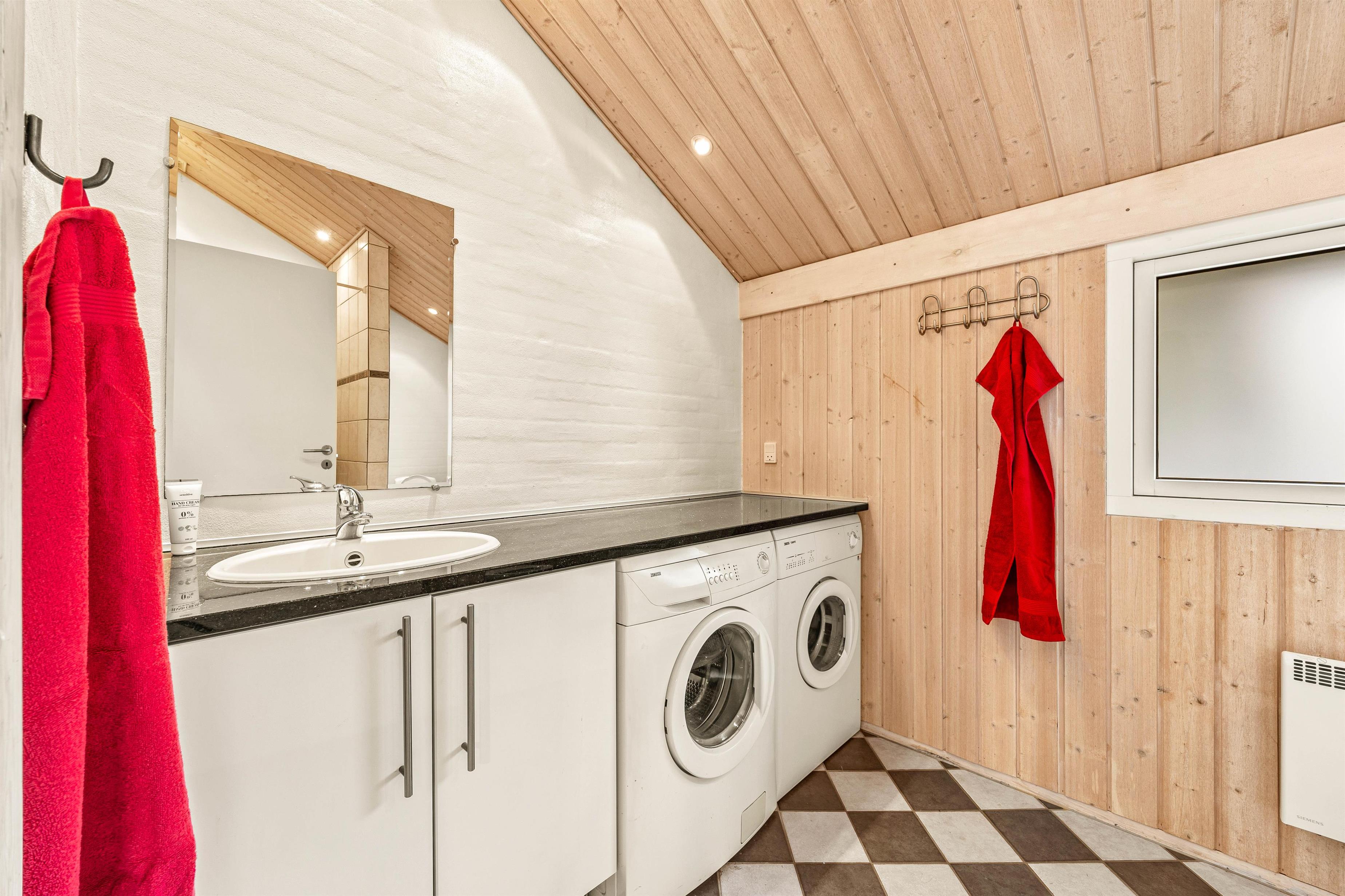 De to badeværelser i sommerhuset er begge udstyret med gulvvarme, så I kan nyde den ultimative komfort. Derudover byder huset på en standspa samt en sauna, hvor I virkelig kan slappe af. For ekstra bekvemmelighed er der både vaskemaskine og tørretumbler, så I kan holde garderoben ren under hele jeres ophold.