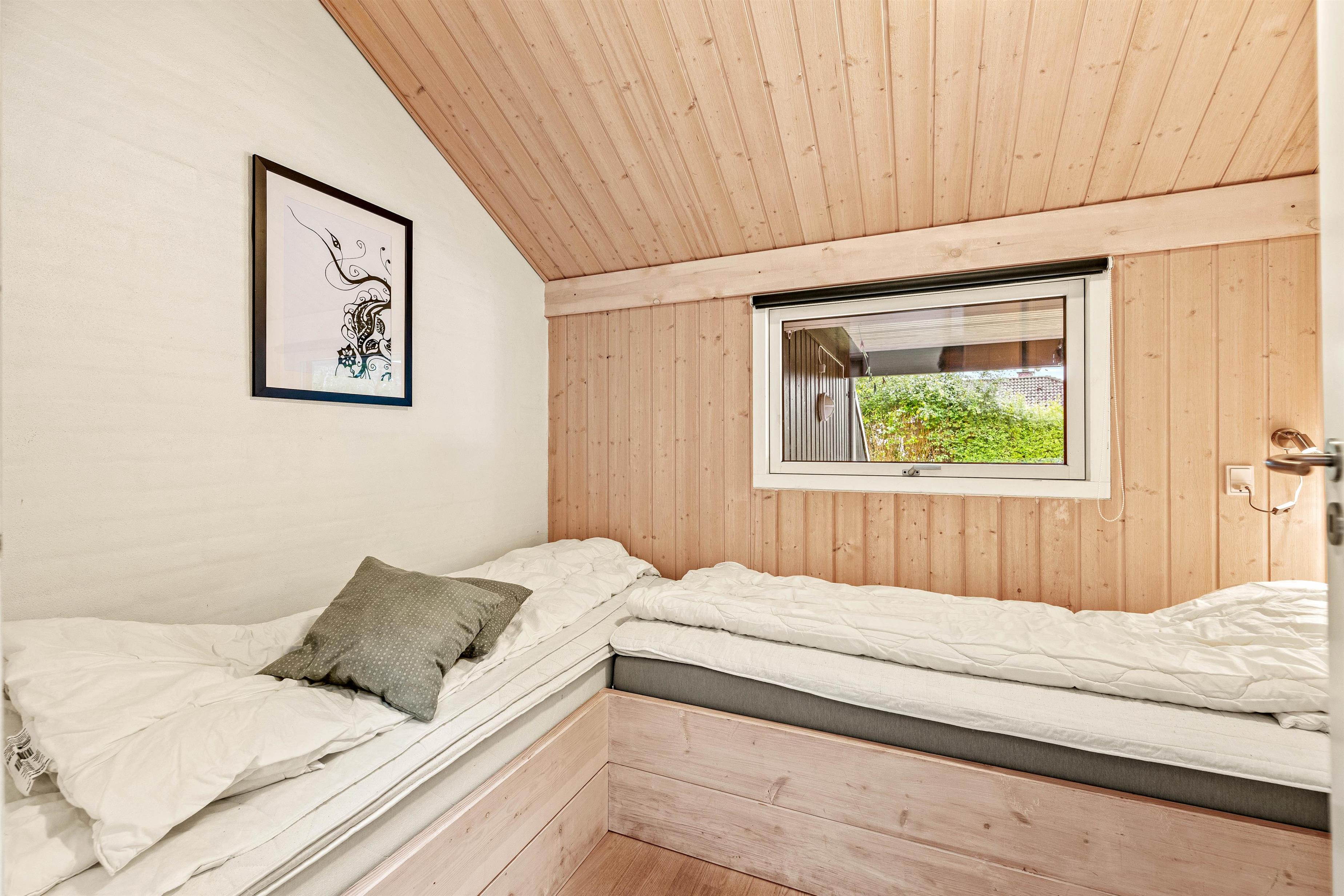 I stuen finder I en Chromecast, så der er mulighed for at streame jeres yndlingsserier og film. Her er også en hyggelig brændeovn, hvor I kan samles omkring en varm og indbydende ild på kølige aftener. Sommerhuset har fire lyst indrettede soveværelser: tre med dobbeltsenge og et med to enkeltsenge, hvilket gør sommerhuset ideelt for familier med børn.