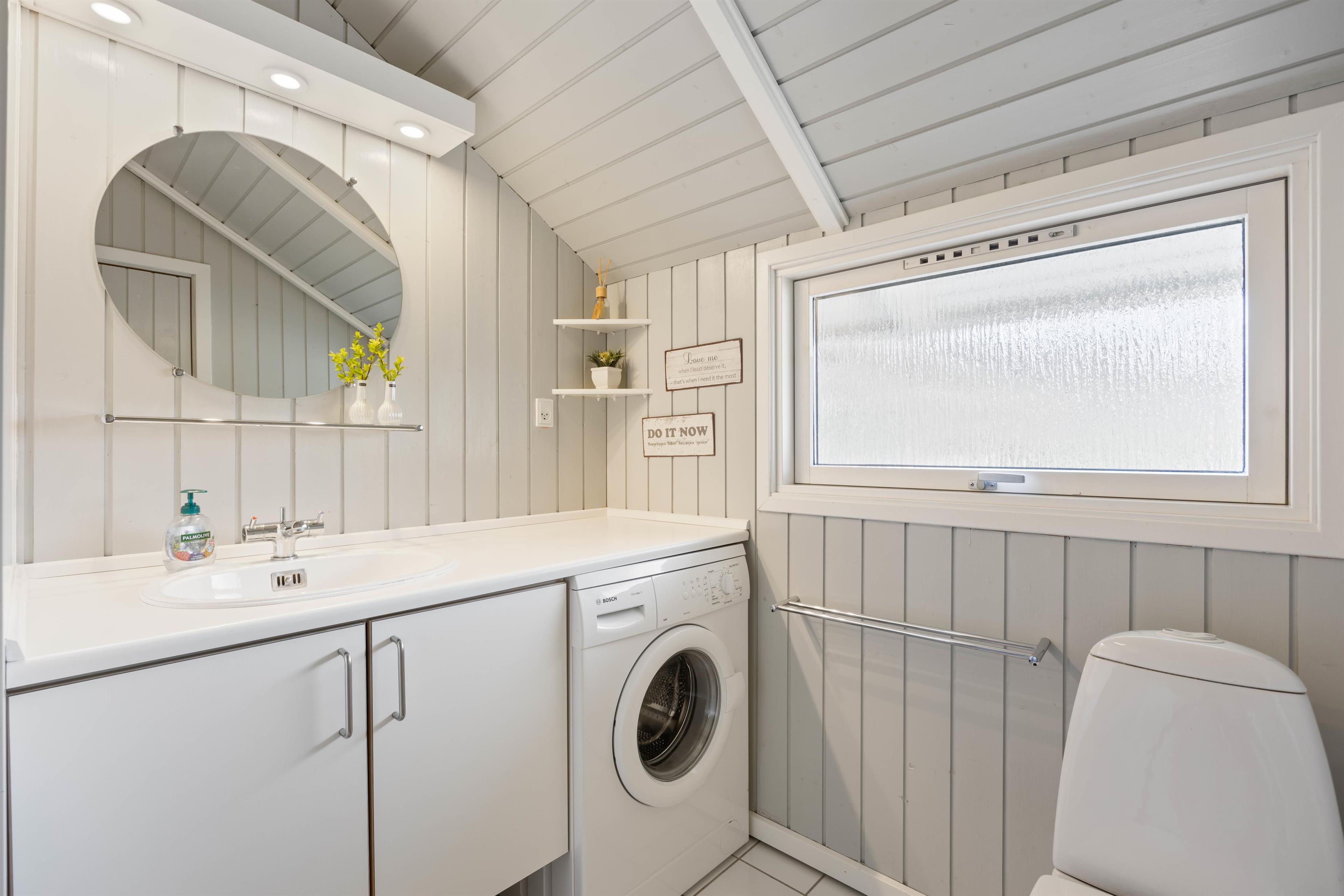 Badeværelset i ferieboligen har både gulvvarme og god plads, så I rigtig kan føle jer godt tilpas. Dertil er der en sauna, hvor I kan blive varmet igennem efter en lang gåtur i området eller efter en stille og rolig feriedag.
