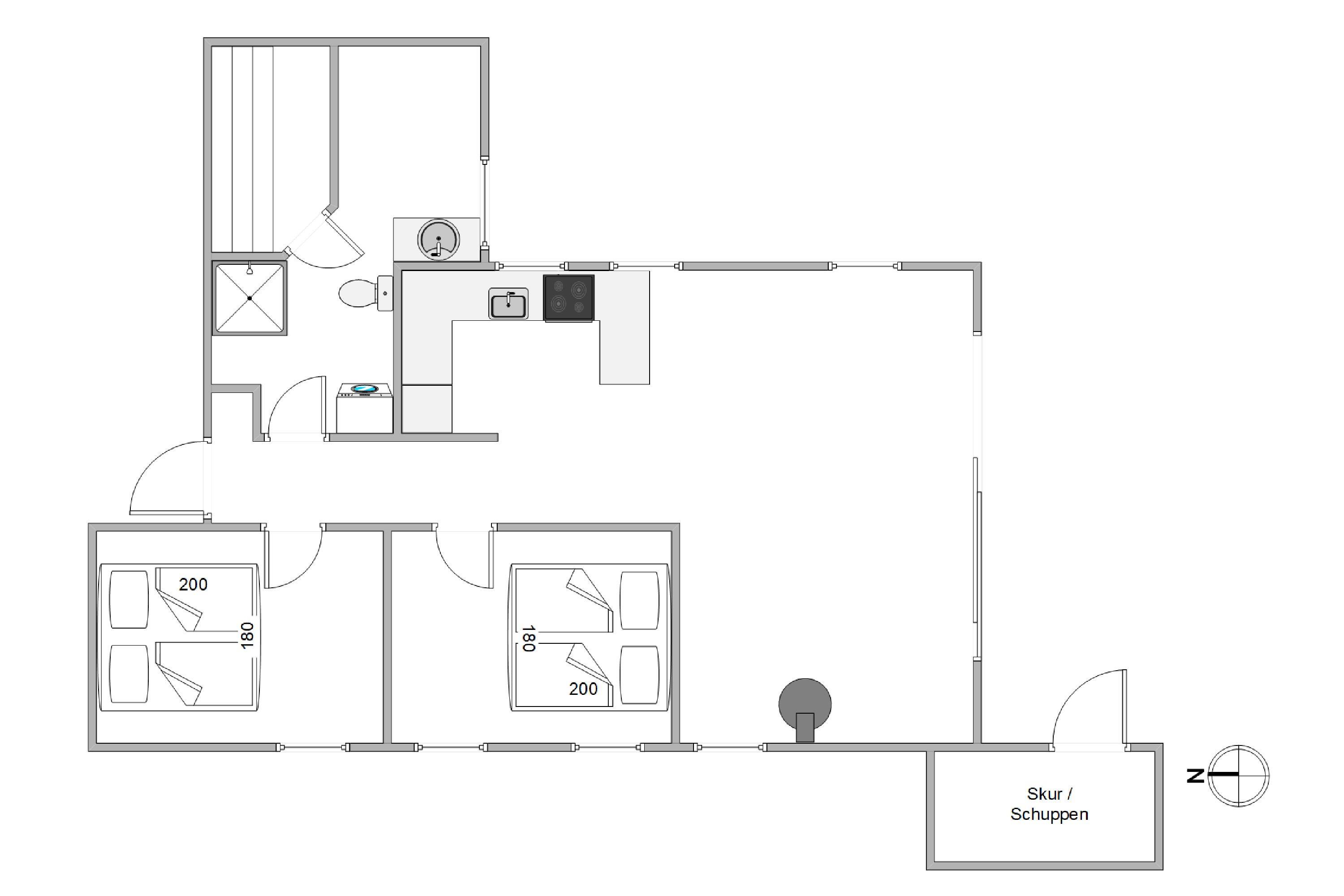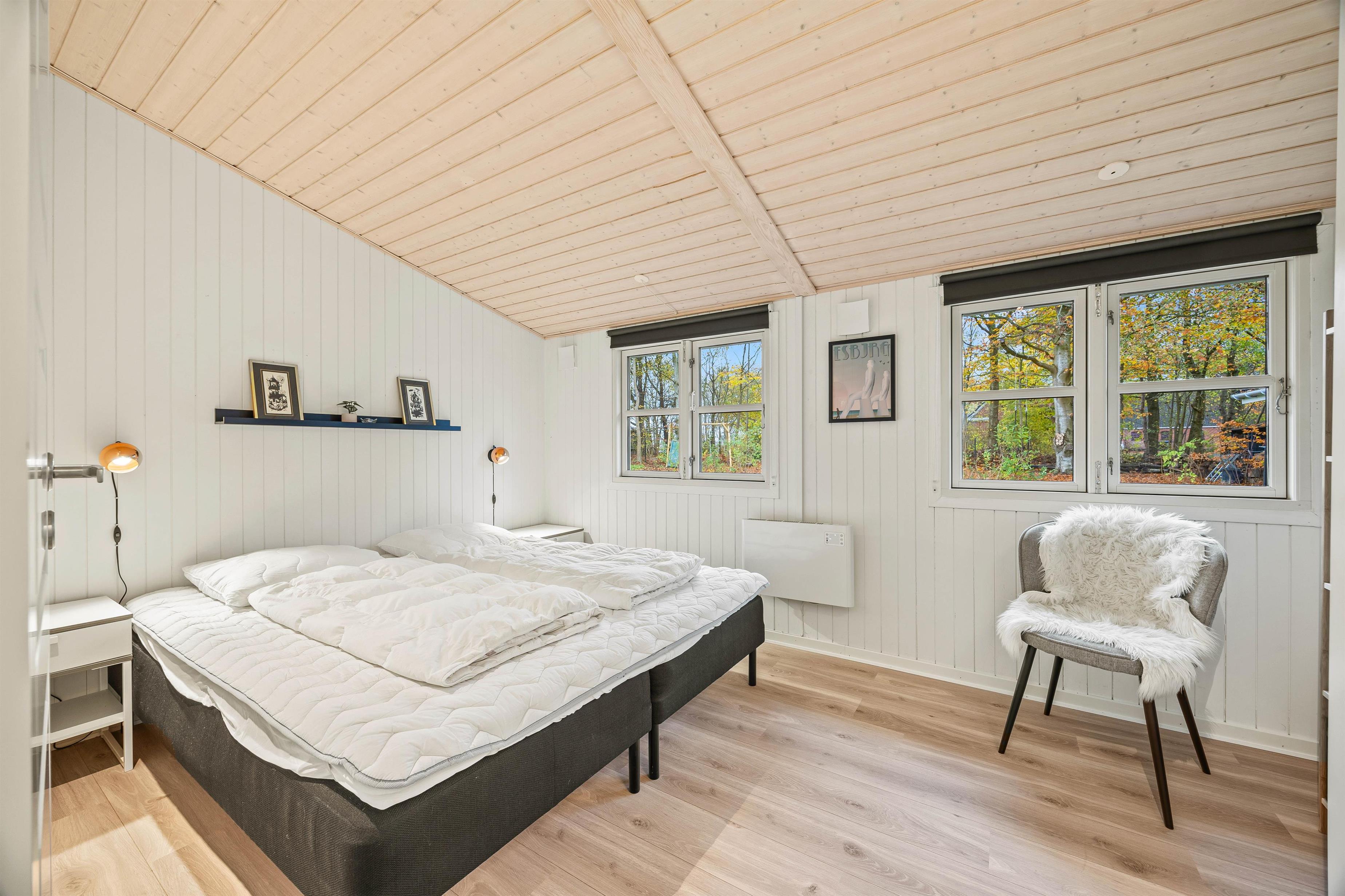Sommerhuset har 2 soveværelser, som hver er udstyret med dobbeltsenge, hvilket sikrer komfortable soveforhold for op til 4 personer. Badeværelset er lyst og har behagelig gulvvarme, der holder fødderne varme. Efter en eventyrlig dag langs Vestkysten kan I slappe af i sommerhusets sauna, som tilbyder en afslappende pause og mulighed for at løsne op.