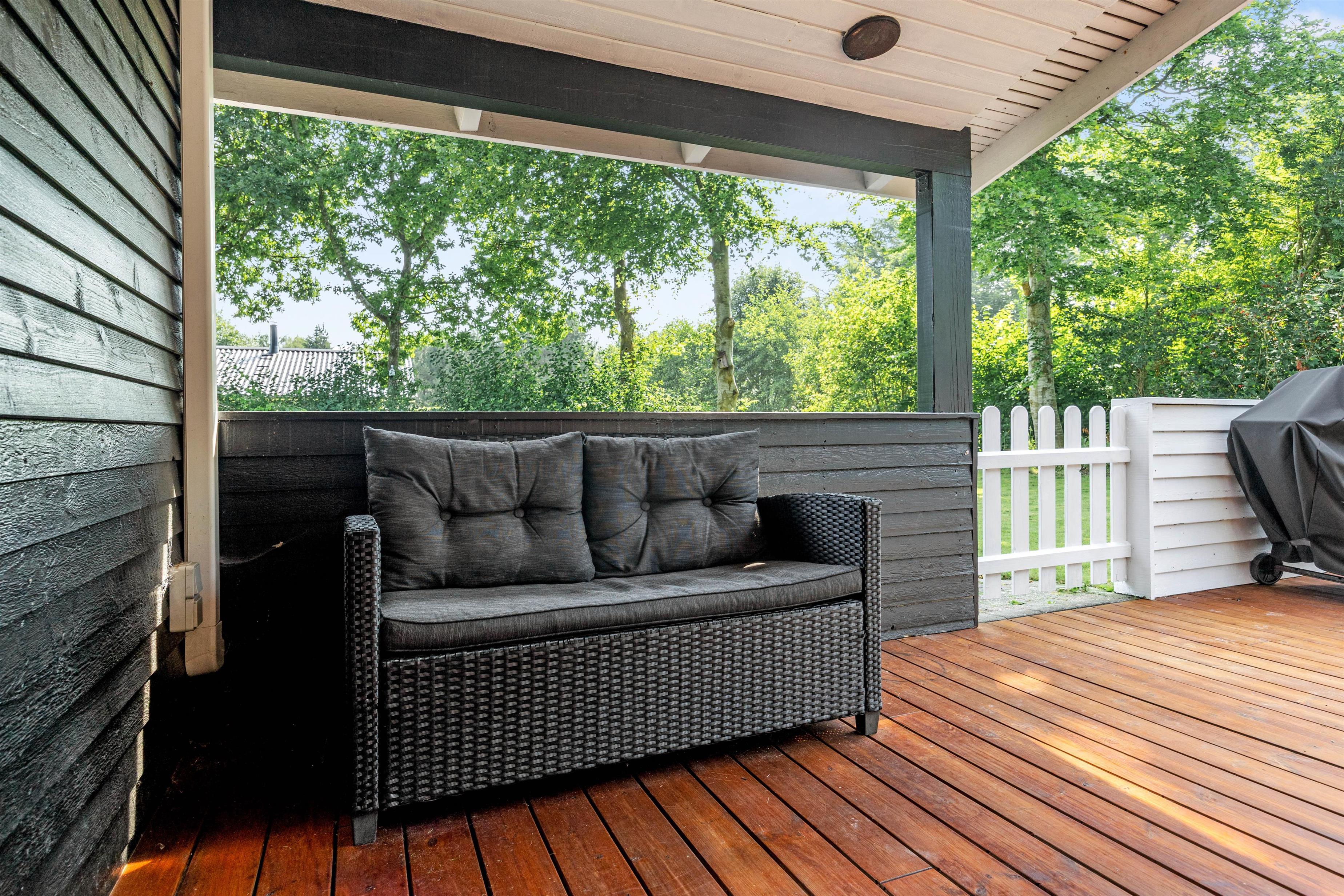 Fra stuen har I direkte adgang til en lukket og overdækket terrasse, hvor I kan nyde udendørslivet i al slags vejr. Her er det oplagt at samle venner og familie omkring grillen for hyggelige måltider. Der er god plads til, at børnene og jeres firbenede ven kan udforske terrassen i sikkerhed.