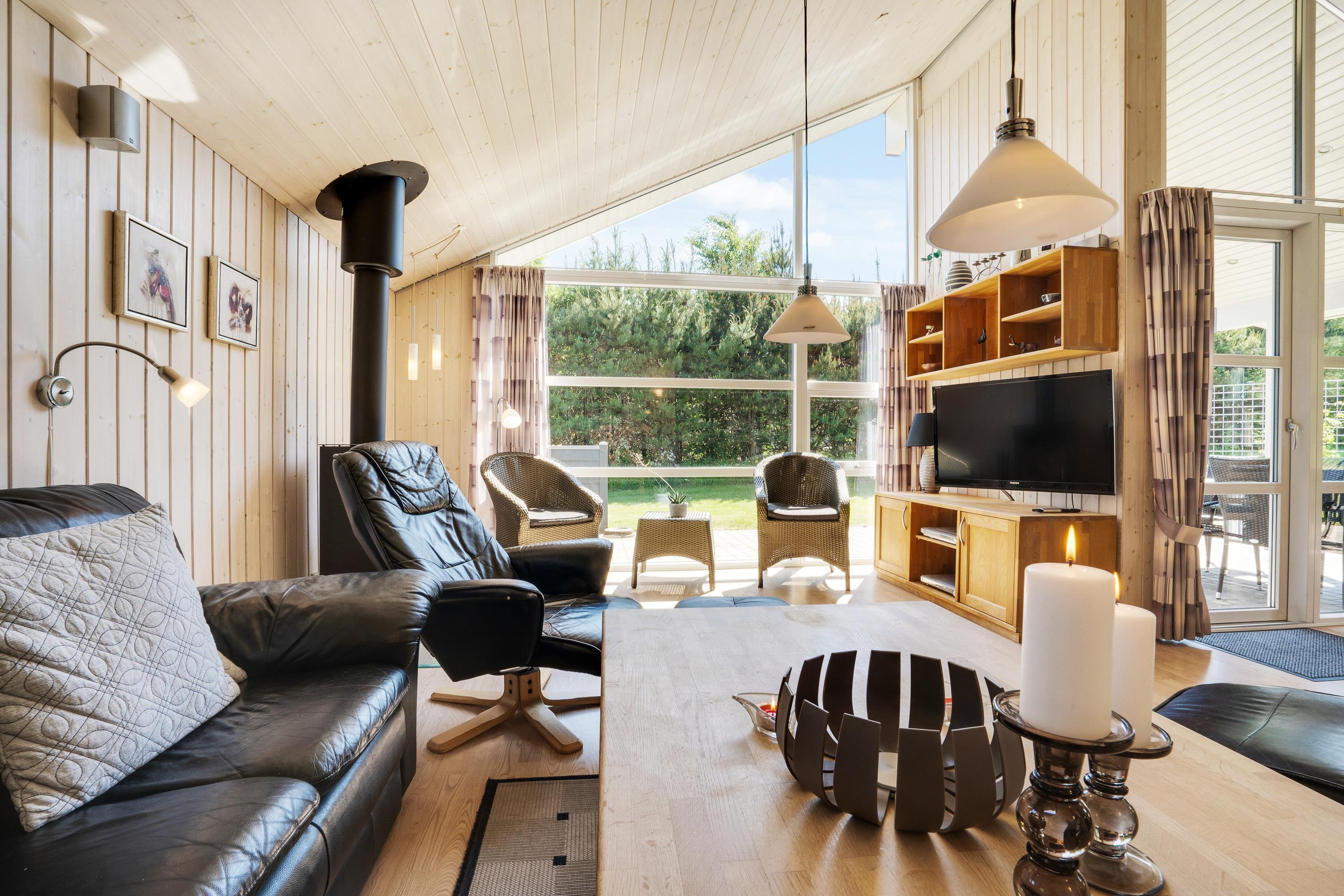 I alrummet har I en brændeovn, der med sin knitren fuldender den hyggelige feriestemning og indbyder til afslappende aftener med kortspil eller film. Sommerhuset har en energivenlig varmepumpe, der sørger for gode temperaturer og et godt indeklima året rundt.