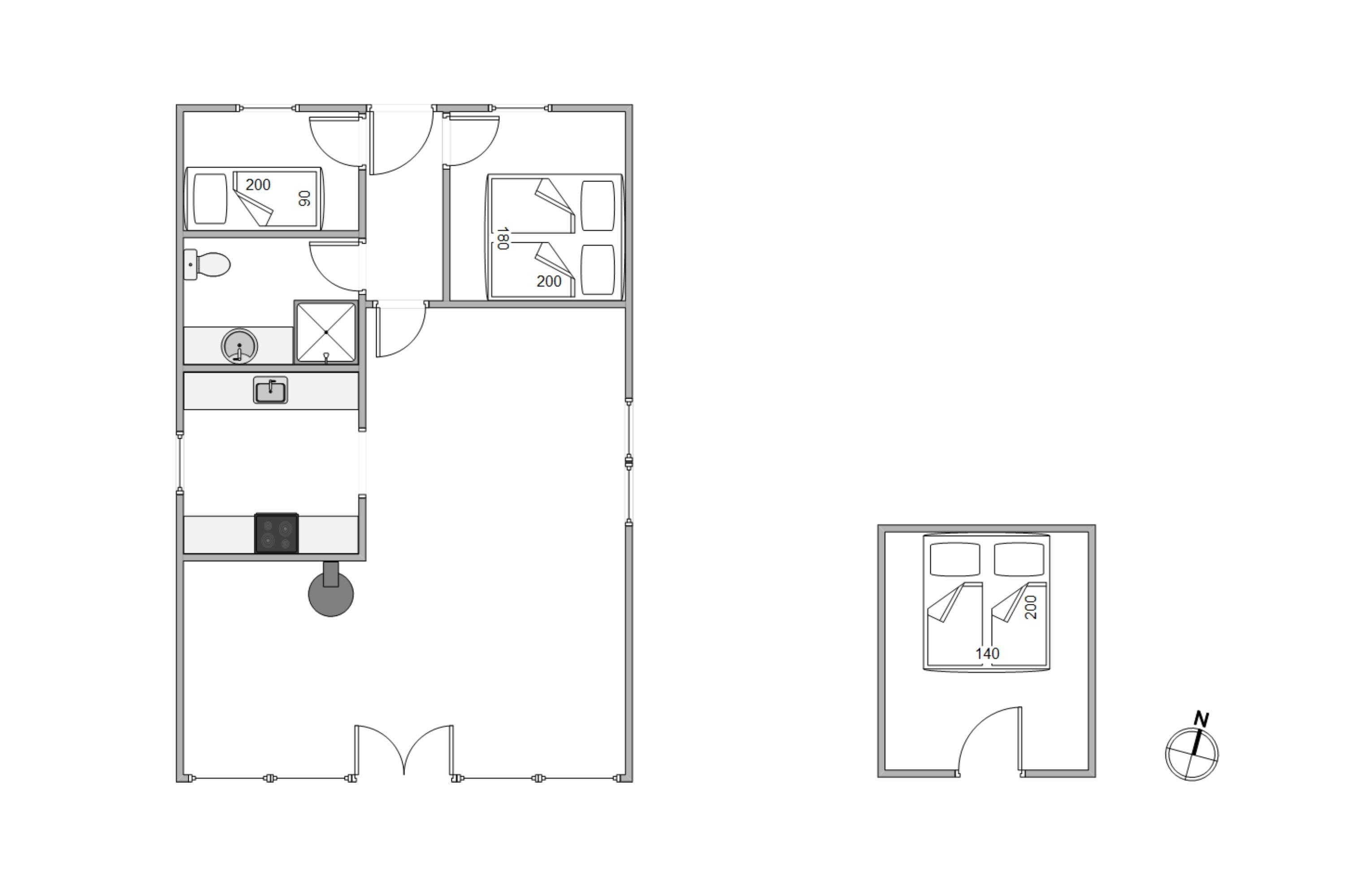 Feriehuset har plads til 5 personer fordelt på 2 soverum i selve huset og 1 anneks. I huset er det ene værelse er med dobbeltseng og det andet med enkeltseng. I annekset, der har gulvtæppe, er der dobbeltseng. Dertil har I badeværelset med bruseniche og god opbevaringsplads.