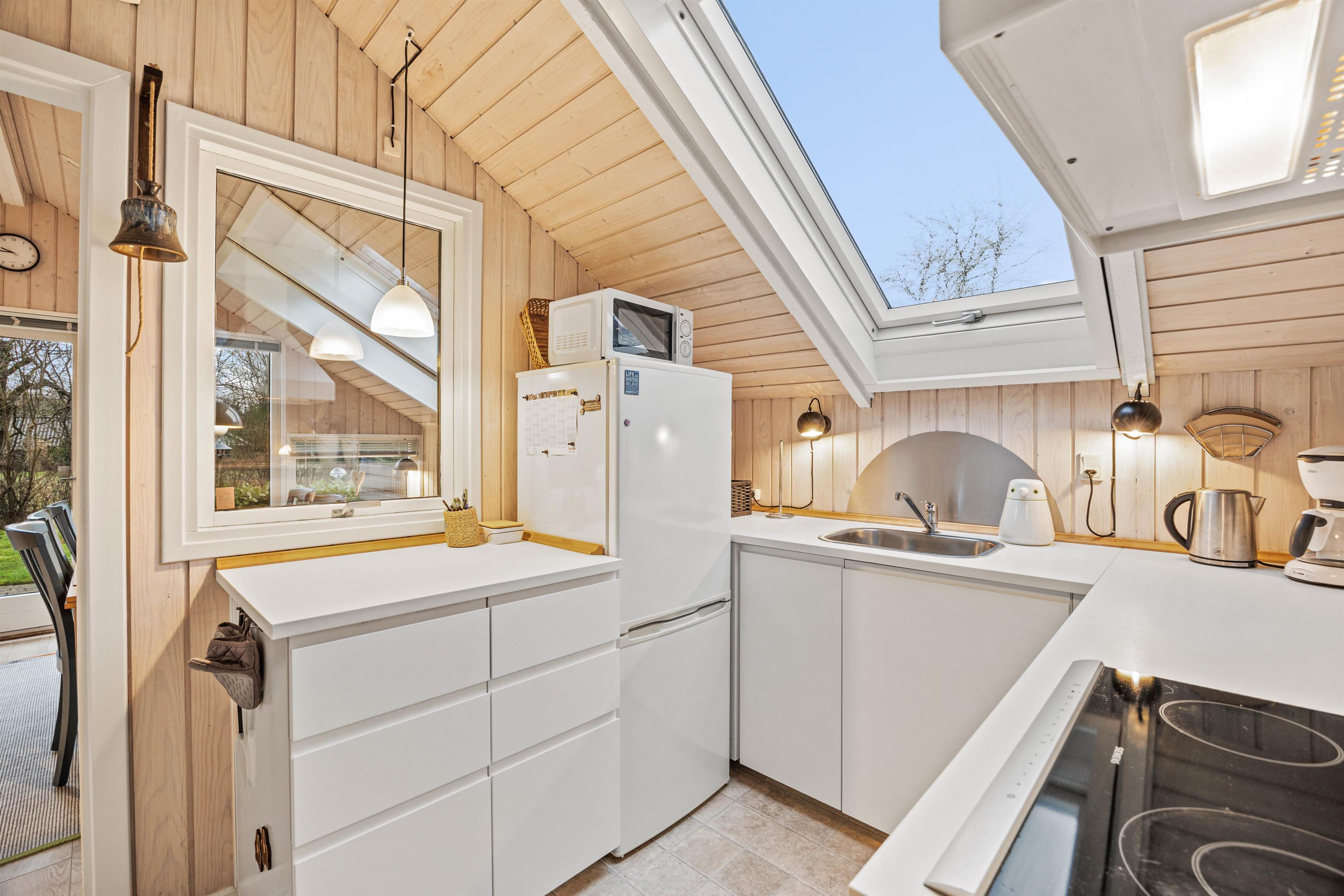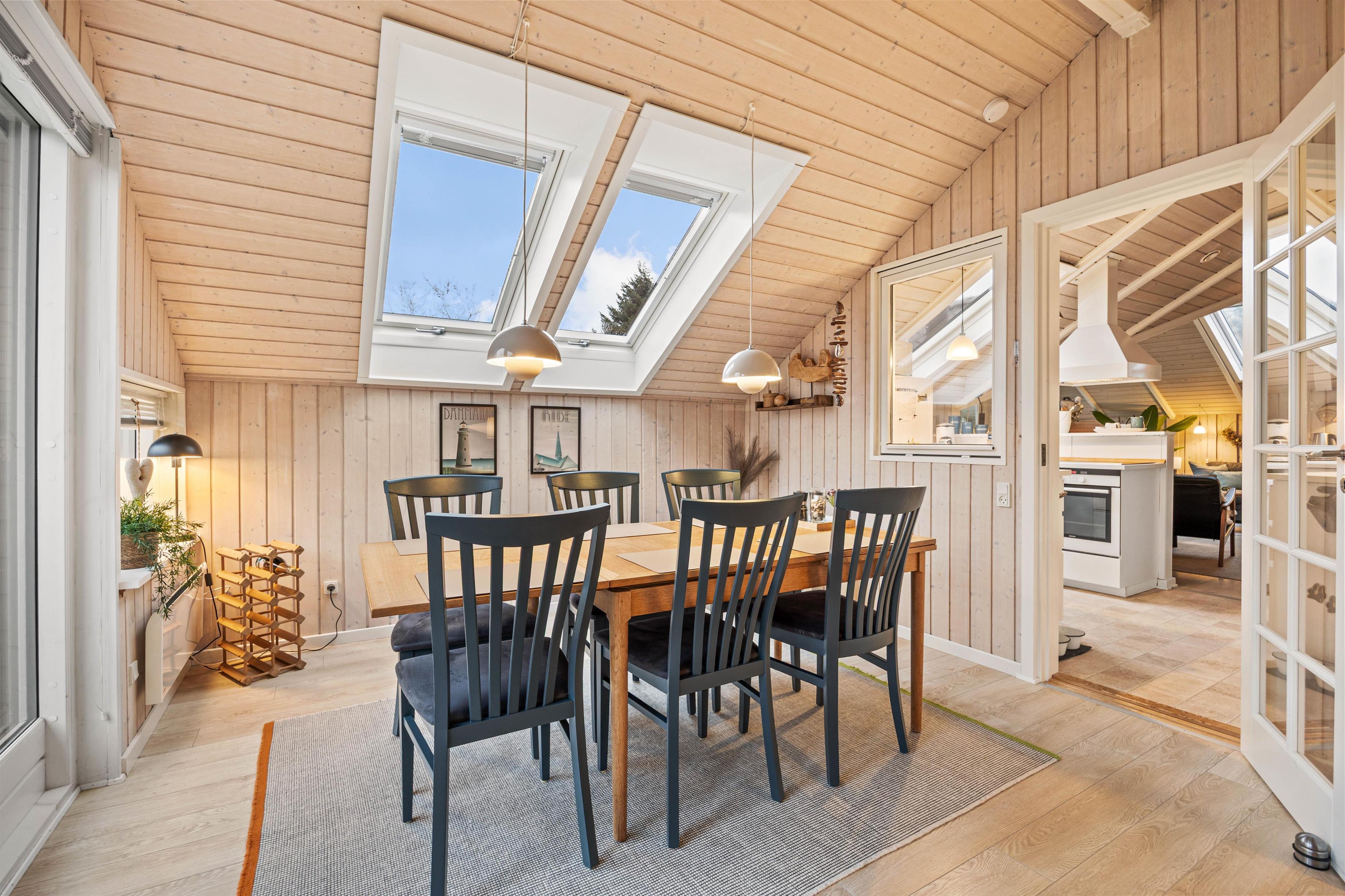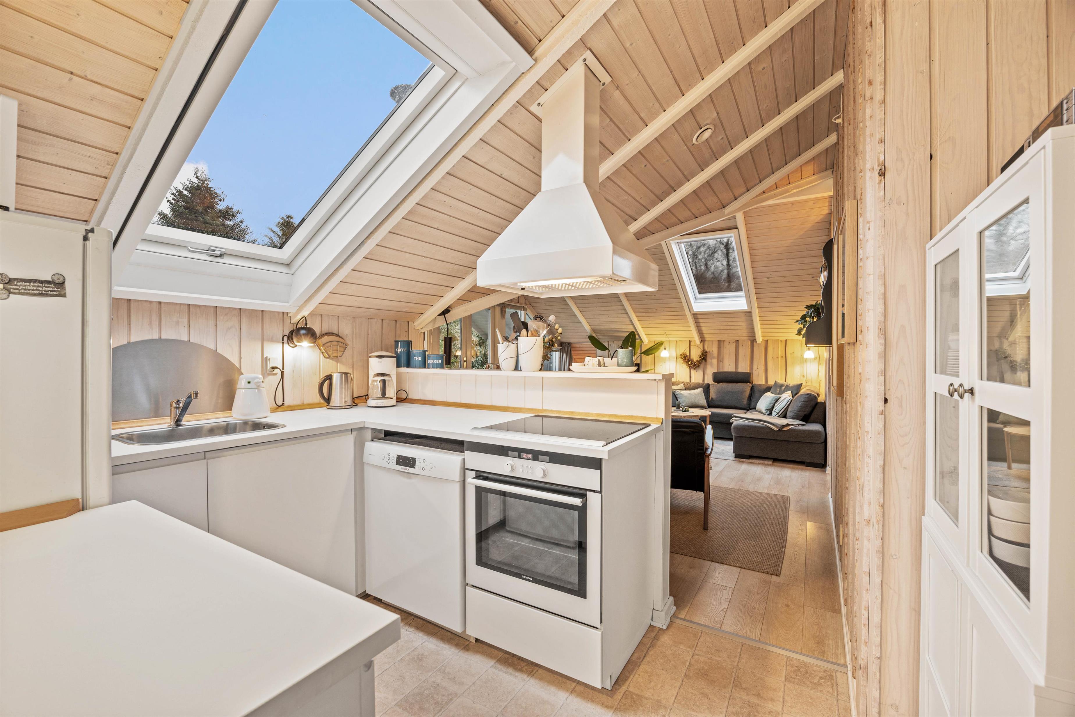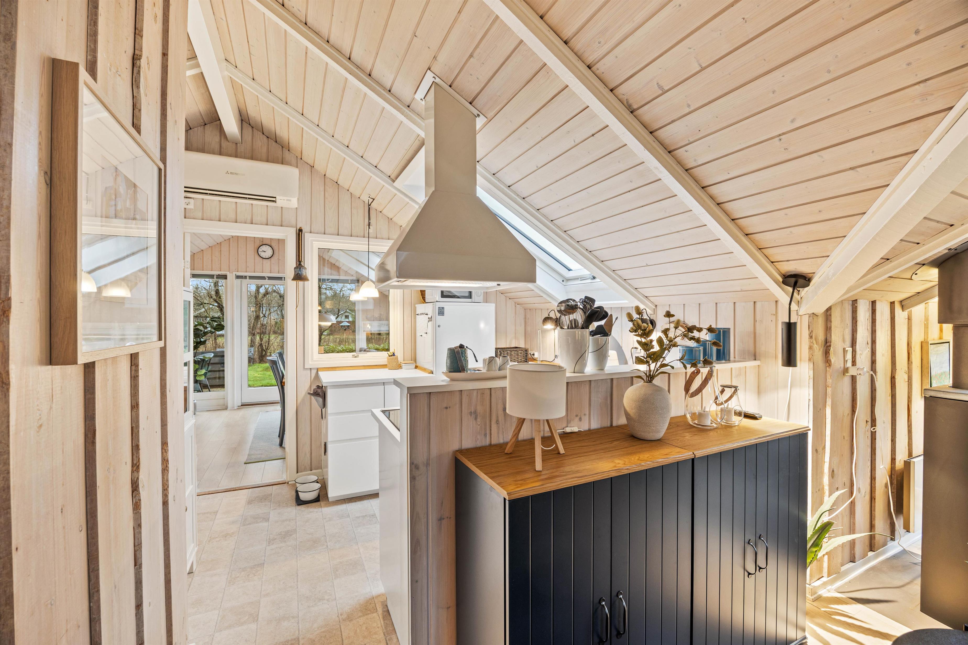 Indenfor byder sommerhuset jer velkommen med en varm og afslappet atmosfære, hvor alt er tænkt til at gøre ferien let og bekvem. Vaskemaskinen sørger for, at familiens tøj hurtigt kan klares, så I kan bruge tiden på at nyde ferien. I den hyggelige stue knitrer brændeovnen og spreder både varme og charme – perfekt til lange, rolige aftener med spil, bøger eller en god film. Badeværelset er moderne og udstyret med gulvvarme, så I kan starte dagen med lune fødder og en følelse af velvære.