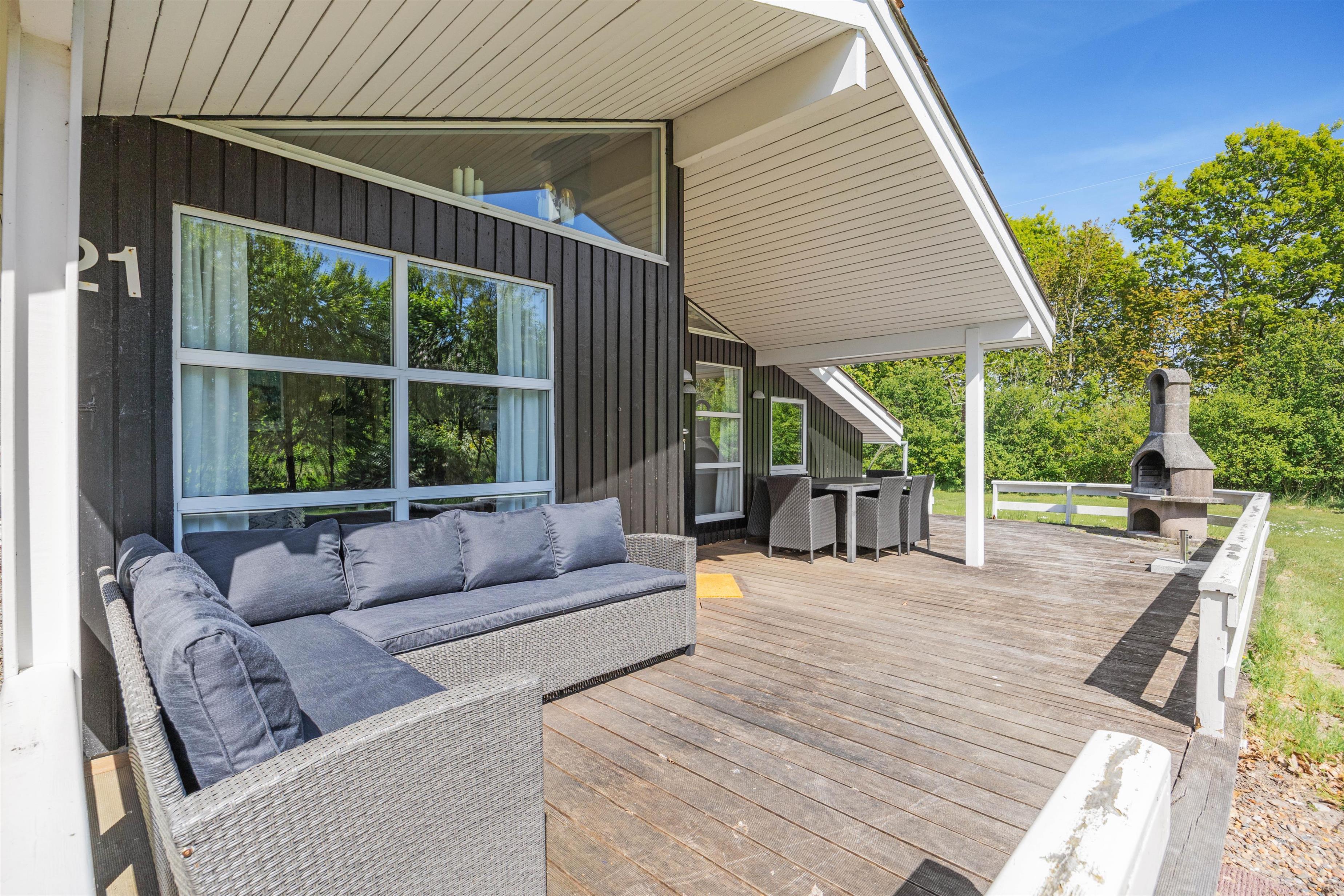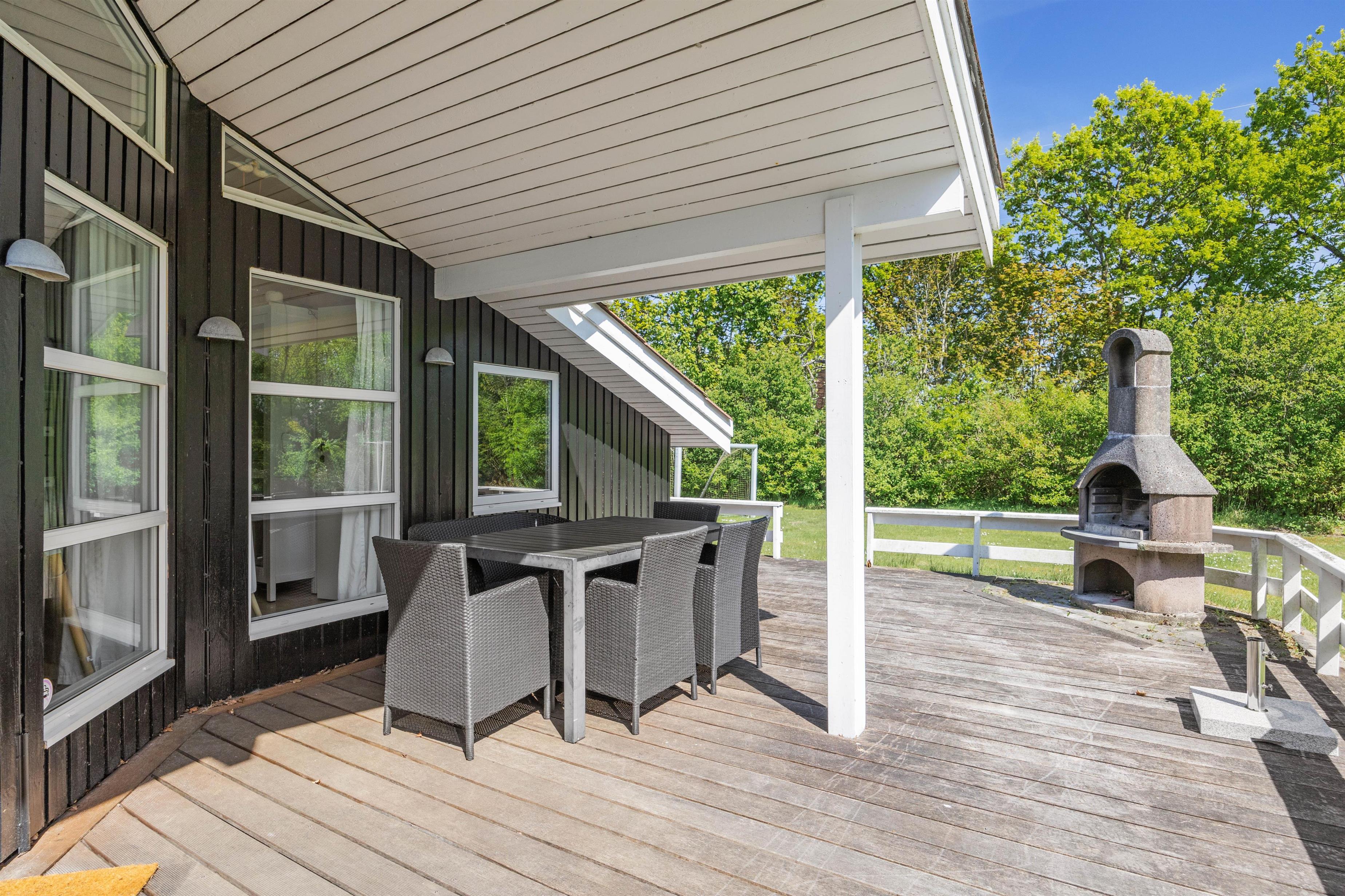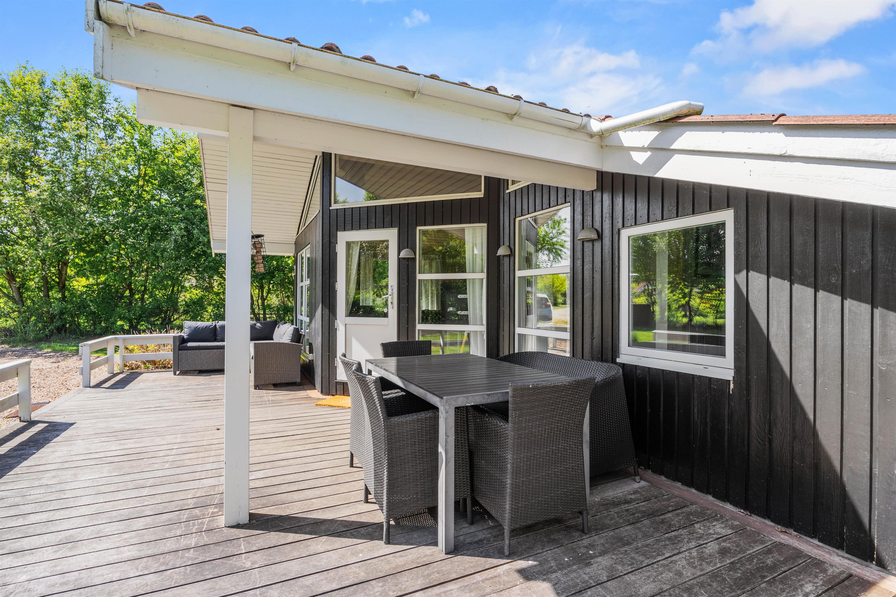 Fra sommerhuset kan I træde ud på den skønne terrasse, som er det oplagte sted at tilbringe de solrige feriedage. På terrassen kan I finde jer en god plads i solens stråler, hvor I kan sætte jer til rette i havemøblerne med en god bog eller en forfriskende drink i hånden. Om aftenen kan I tænde op i grillen og nyde en lækker middag under åben himmel, mens dagens oplevelser deles og latteren fylder luften. Terrassen bliver hurtigt et samlingspunkt, hvor både store og små kan finde sig til rette og nyde det gode vejr.