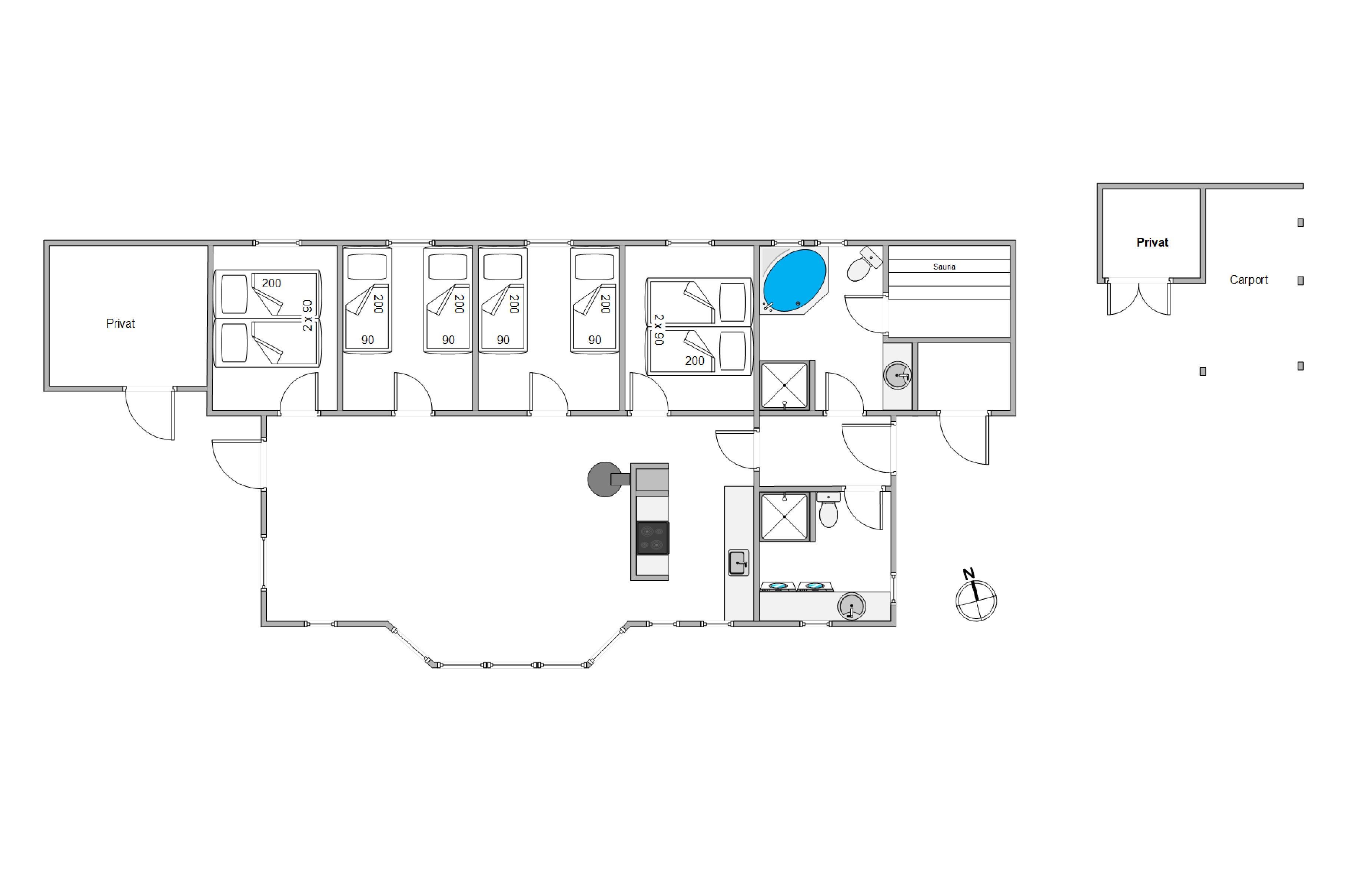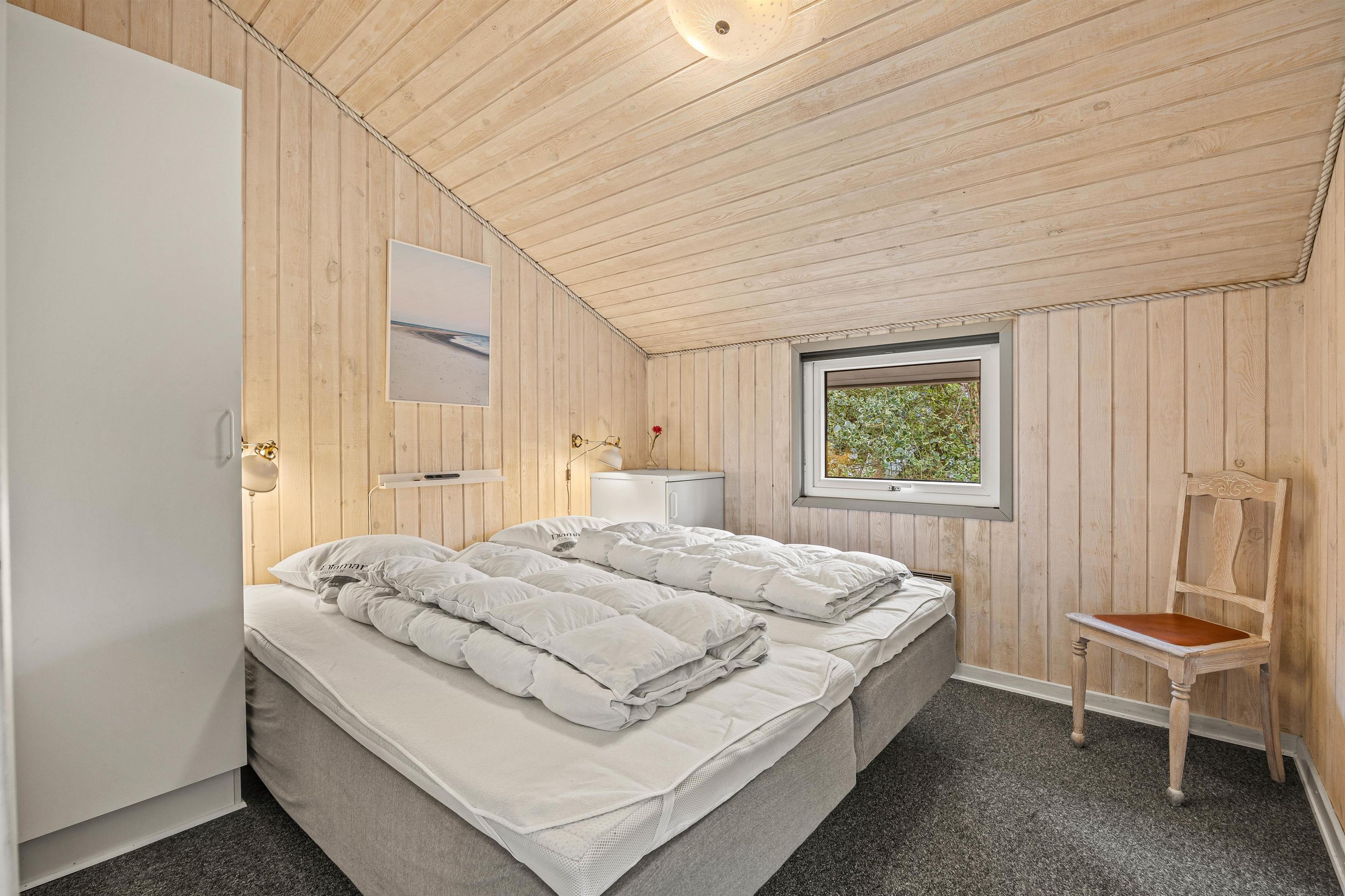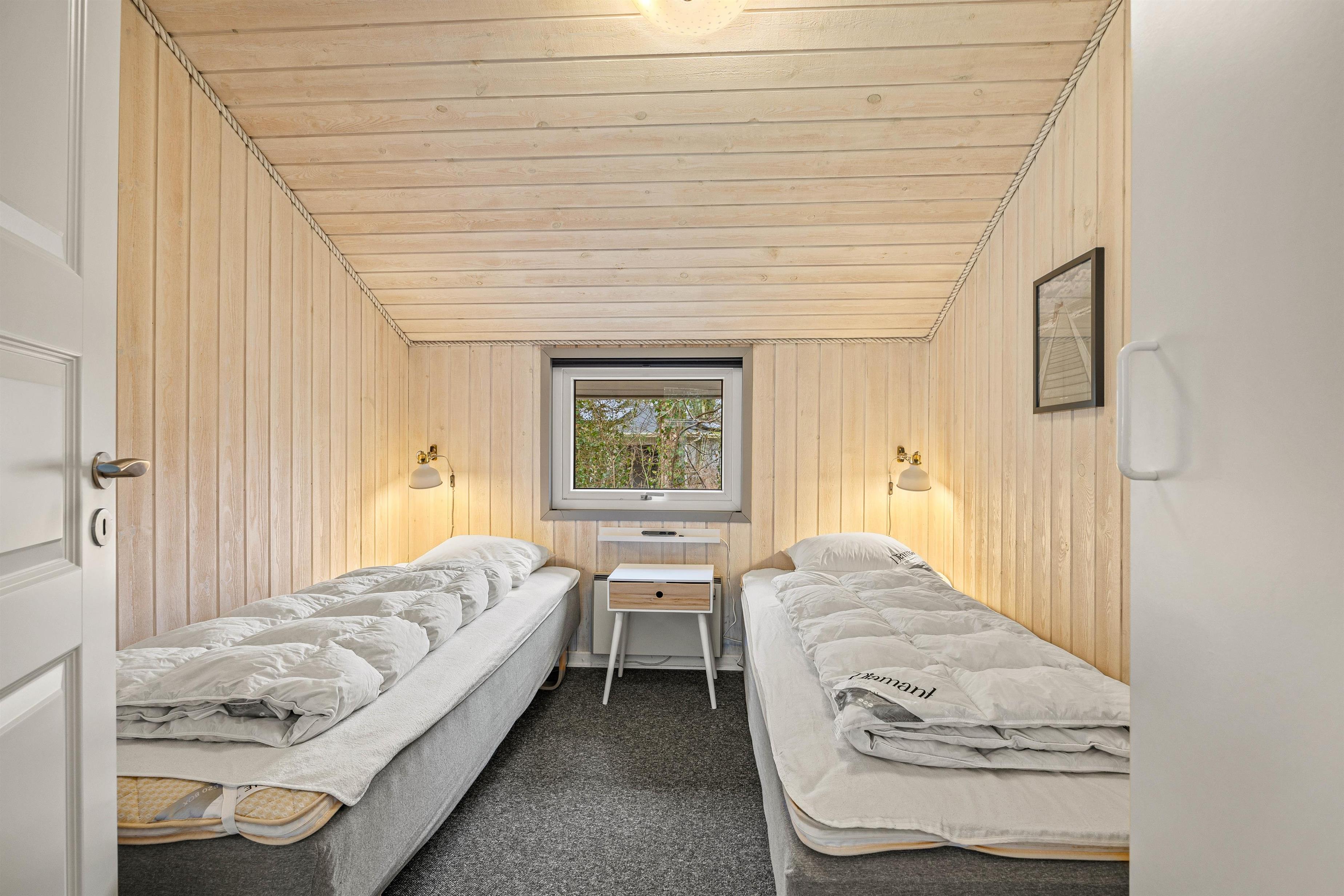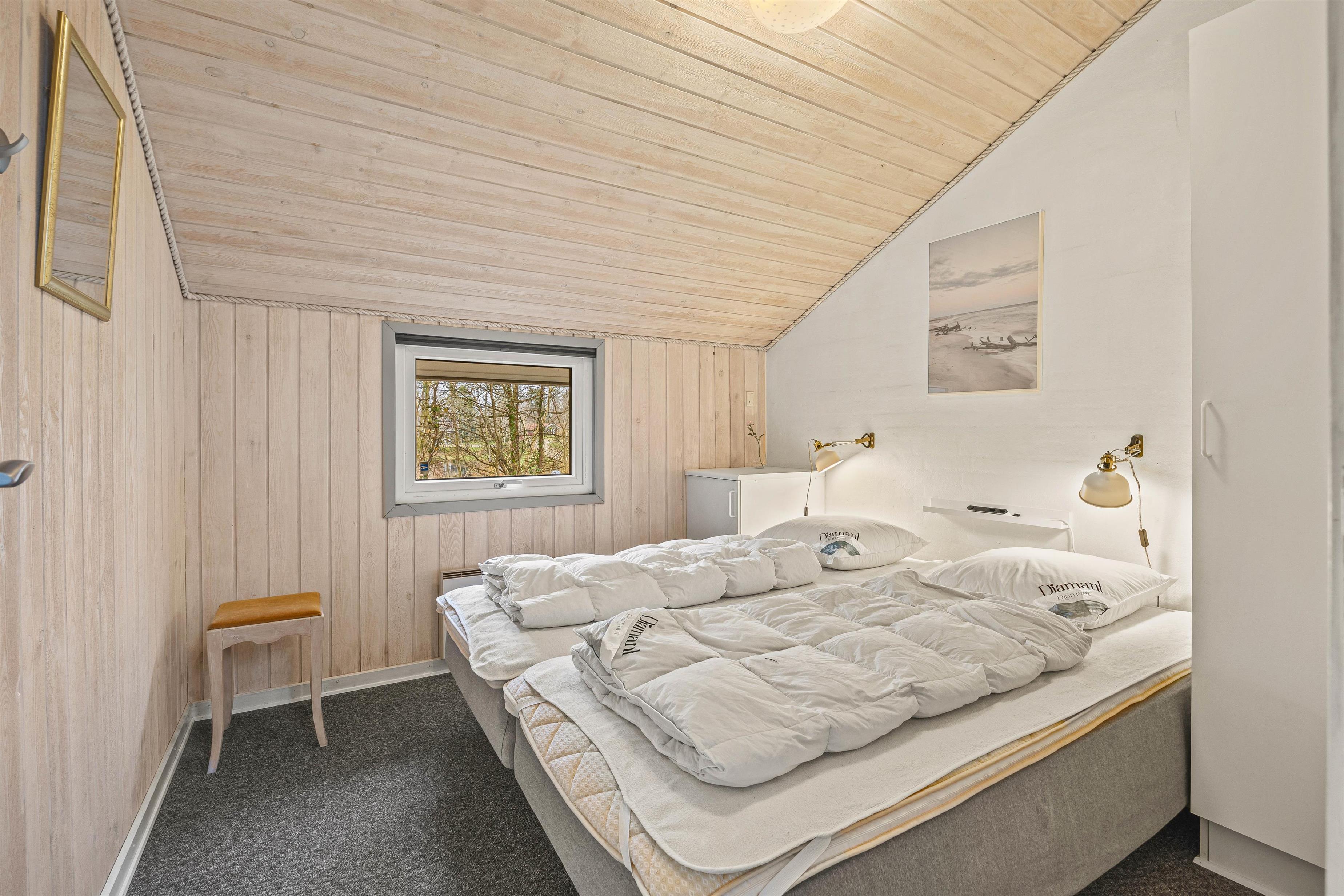 I finder også de 8 sovepladser, som er fordelt på 4 værelser. Her er 2 indrettet med store dobbeltsenge på 180 x 200 og de sidste 2 værelser er begge udstyret med 2 enkeltsenge i hver.