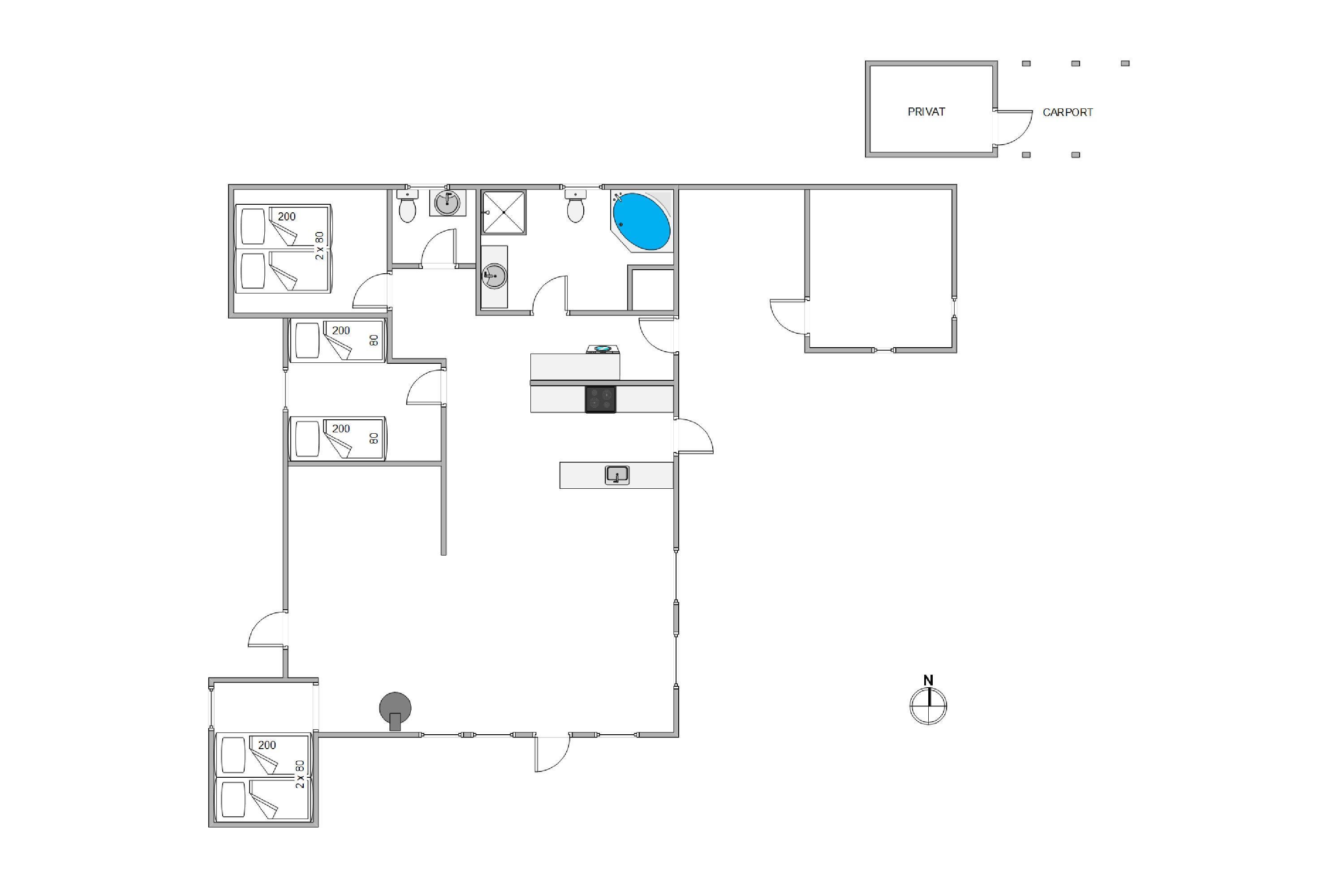 Her er 6 sovepladser fordelt på 3 gode værelser, hvoraf 2 er indrettet med dobbeltsenge, som er 180 og 140 centimeter bredde. På det sidste værelse er der 2 enkeltsenge – perfekt hvis I har børn med på ferien. I sommerhuset er der både badeværelse og gæstetoilet, så der ikke bliver kø. Begge er udstyret med gulvvarme og på badeværelset er der endda også en lækker spa, så I kan føle jer afslappet fra top til tå.