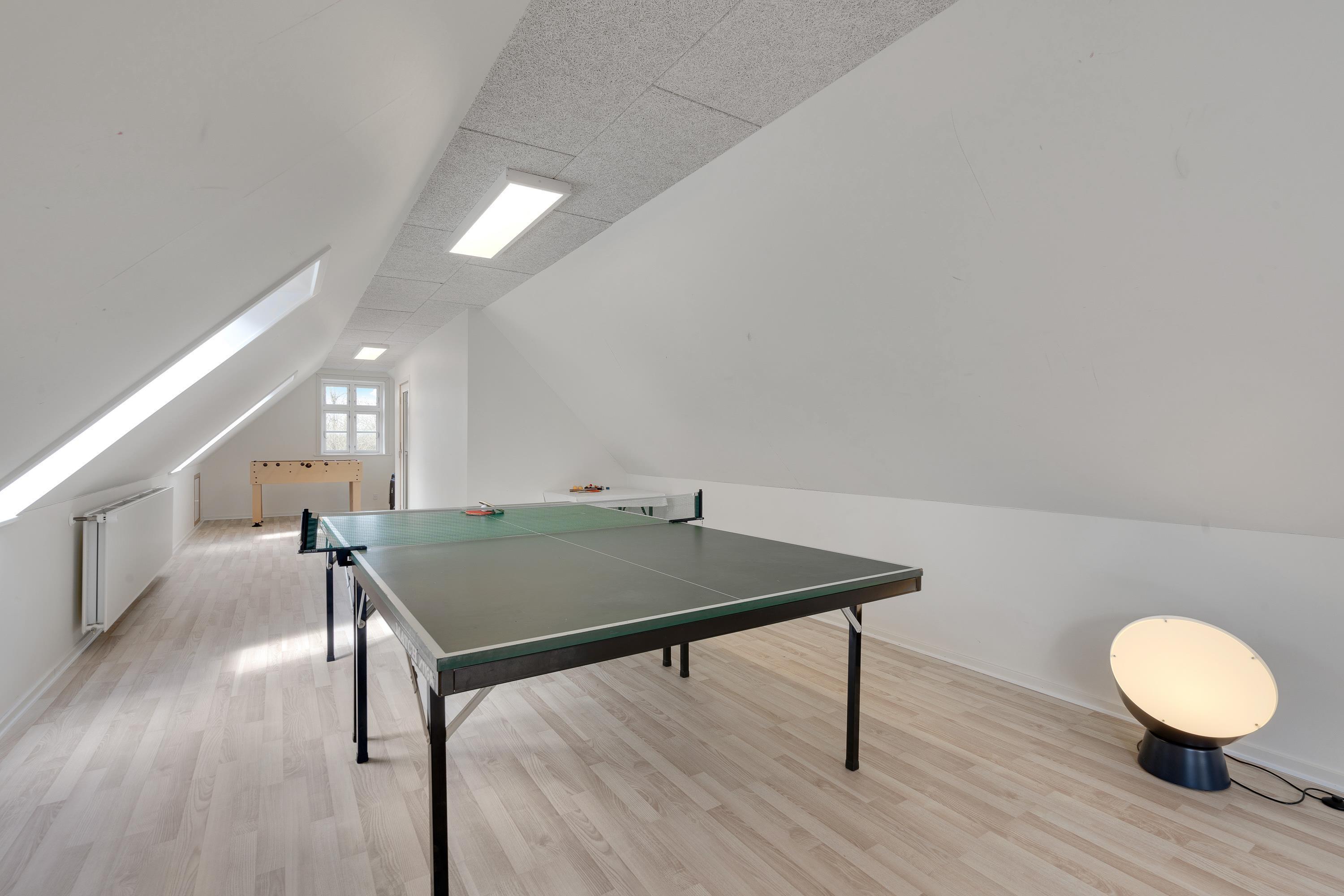 Aktivitetsrummet i feriehuset på Jegumvej 1 har både bordfodbold, bordtennis og en PlayStation3, så her kan du vinde mesterskaberne eller blot sætte dig i sækkestolene, snuppe en controller og tage et spil for sjov.