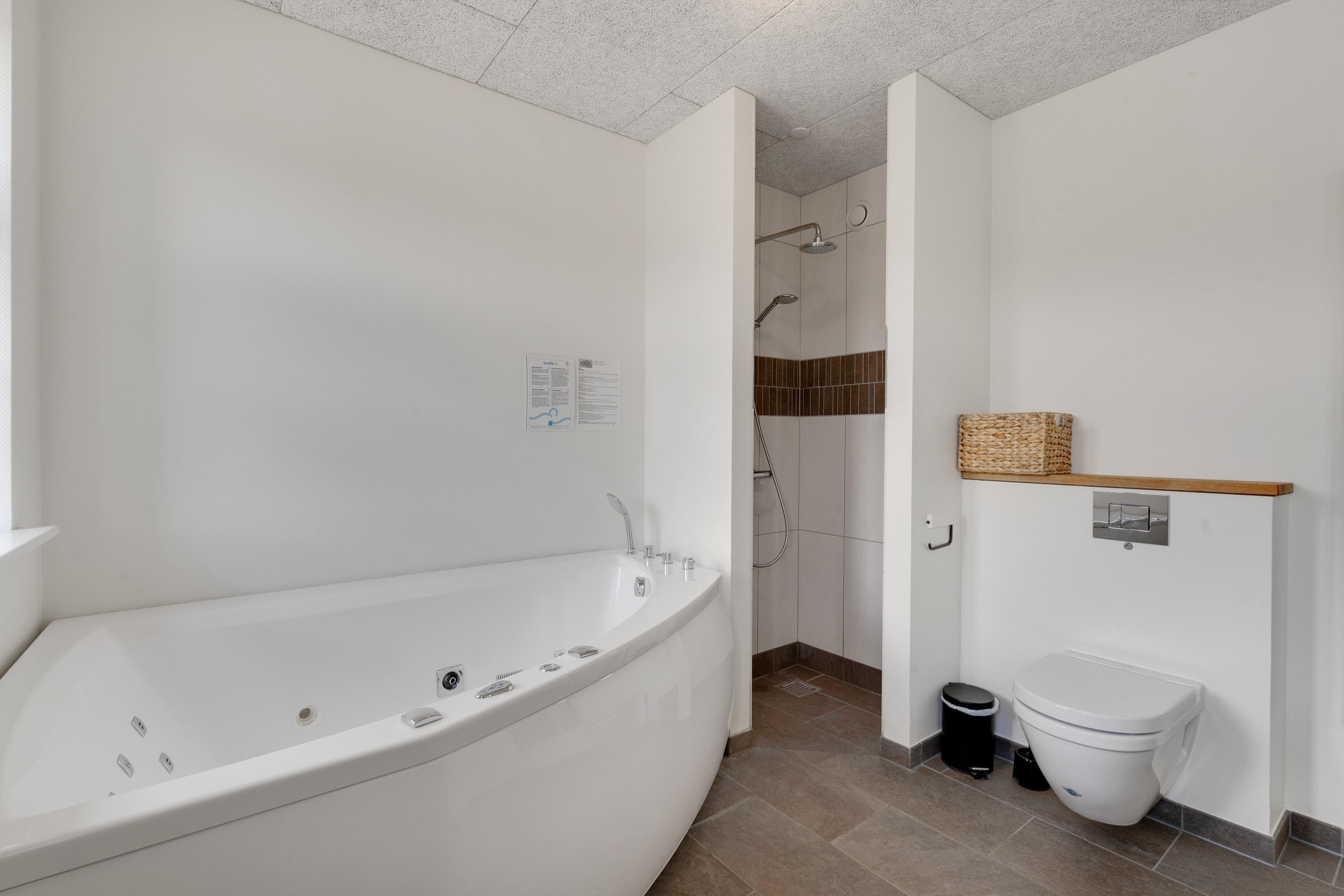 Sommerhusets store areal rummer 4 soverum med plads til 2 i hver og hele 3 badeværelser, så der bliver ingen kø til badet eller toilettet. På det ene badeværelse finder I også husets spa – ét af feriehusets mange steder, der er perfekt til afslapning.