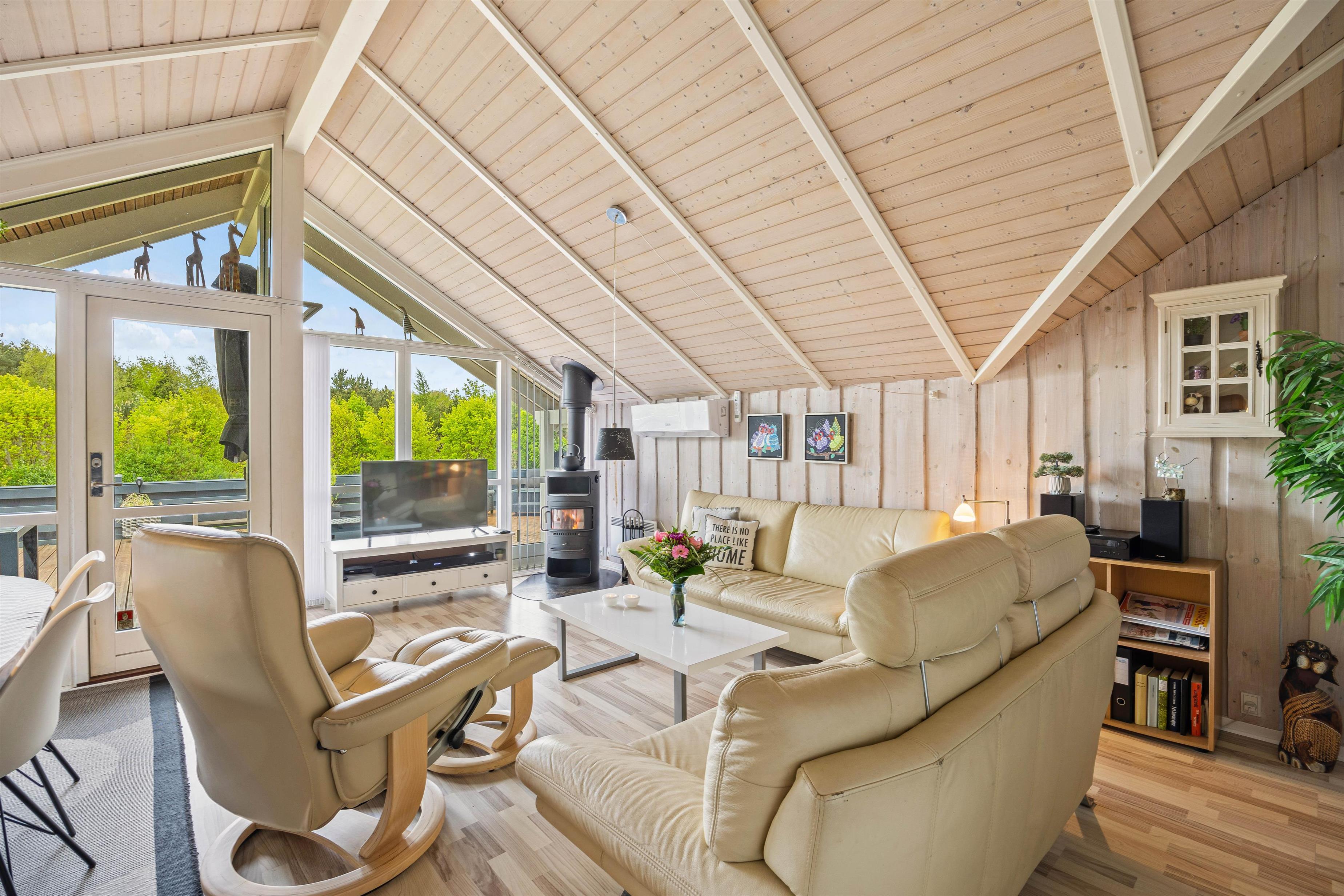Brændeovnen sørger også for, at hyggen er i top. Varmen og de flotte flammer kan få enhver til at falde i staver og glemme tid og sted. I kan selvfølgelig også benytte jer af den energirigtige varmepumpe, der på kort tid varmer hele sommerhuset op.