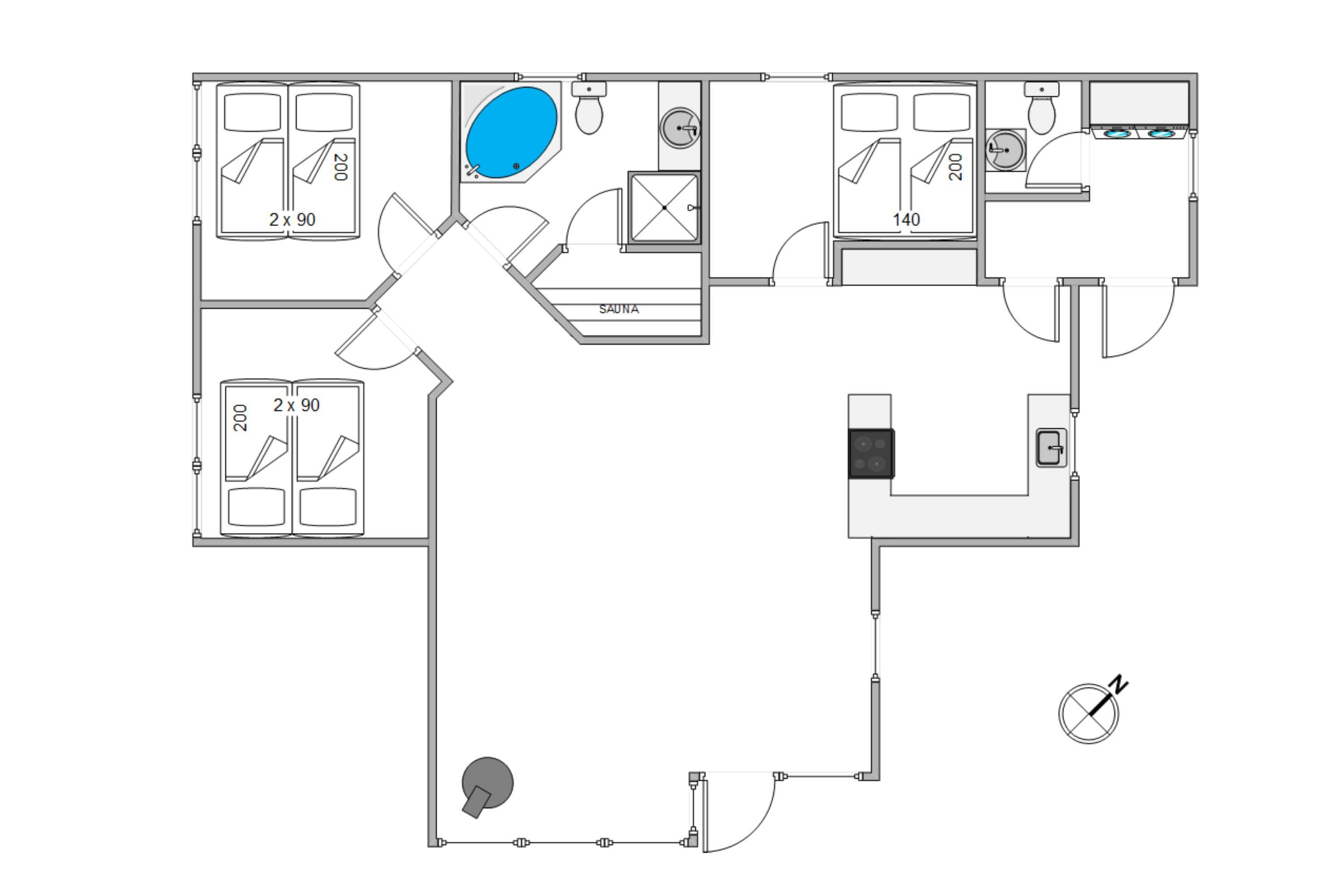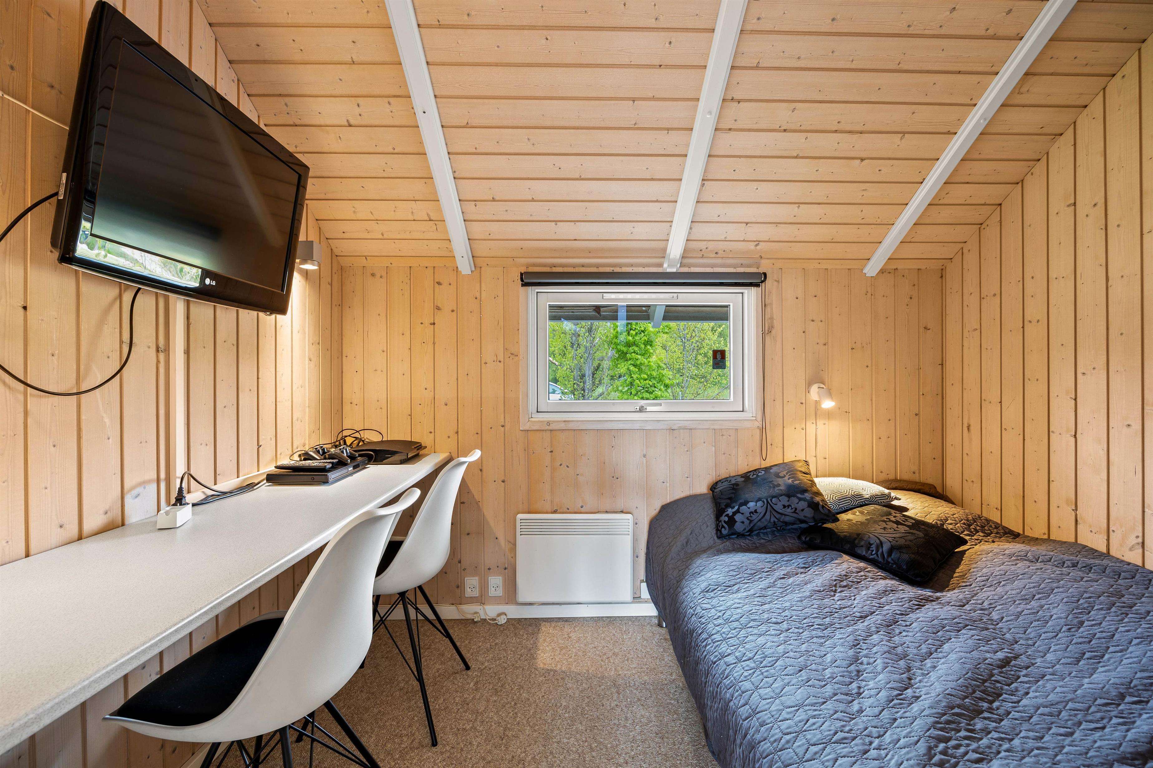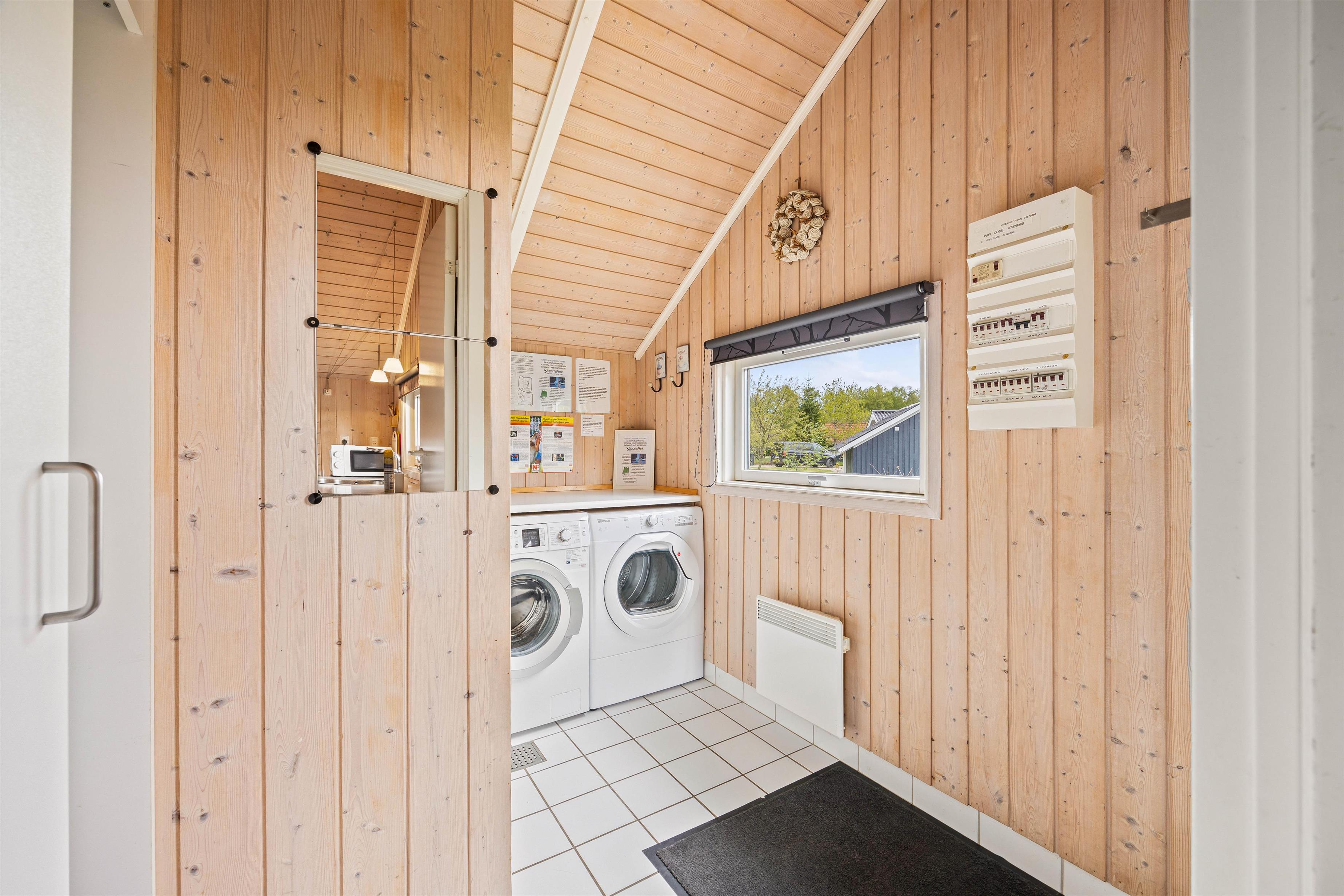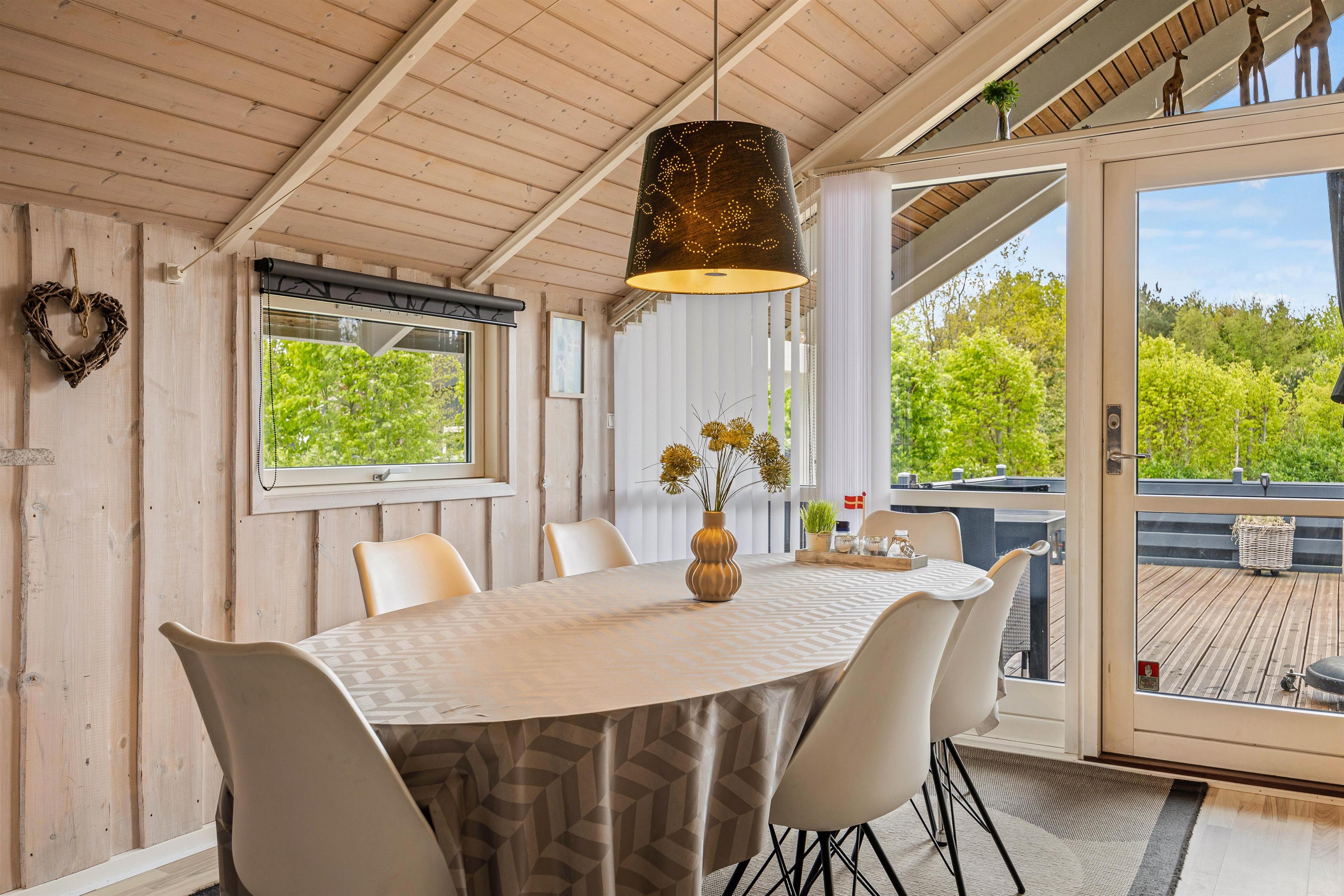 Straks når I træder ind i entreen, vil I mærke sommerhusstemningen. De lyse trævægge og store vinduer giver et dejligt, naturligt lys til hele ferieboligen. Det store opholdsrum er hjertet i sommerhuset. Her er stue, spiseplads og køkken samlet, så I kan nyde hinandens nærvær, mens nogle spiller et brætspil eller læser en god bog i sofaen og andre står i køkkenet og tryller lækkerier frem. Sommerhuset er udstyret med både opvaskemaskine, vaskemaskine og tørretumbler, som den perfekte hjælp til hverdagens pligter.