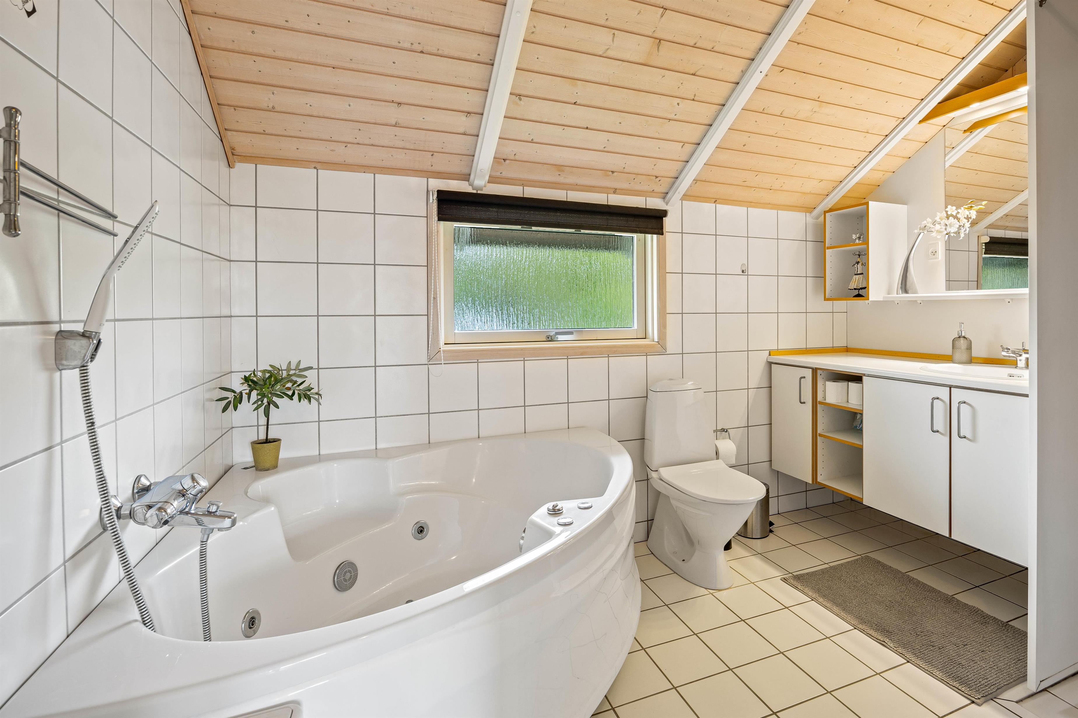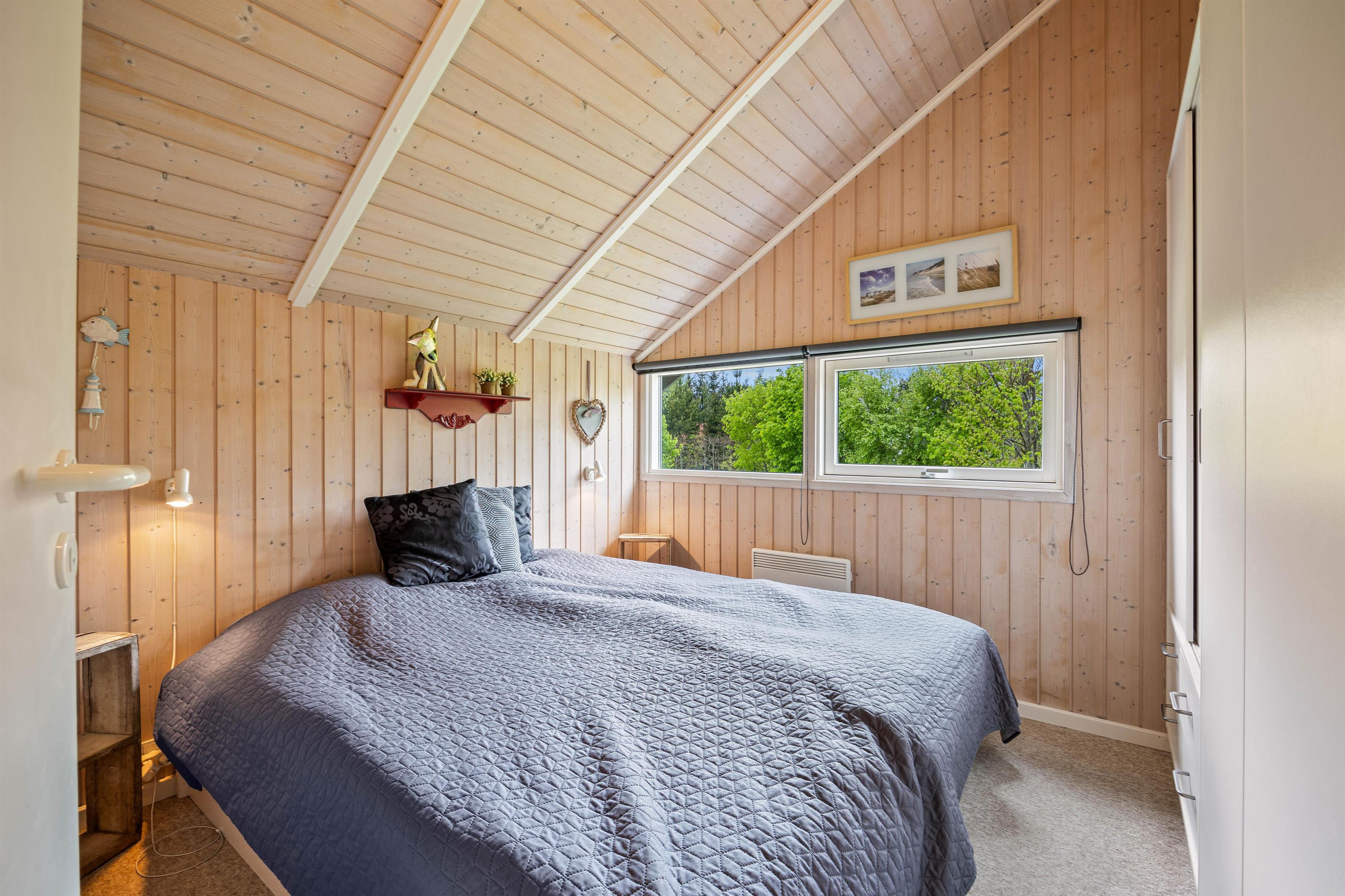 De 3 gode soverum er alle indrettet med dobbeltsenge. Dertil er der både et gæstetoilet og et stort badeværelse med bruseniche, gulvvarme, sauna og spa. Det perfekte sted at komme helt ned i gear efter en lang gå- eller cykeltur i det skønne område.