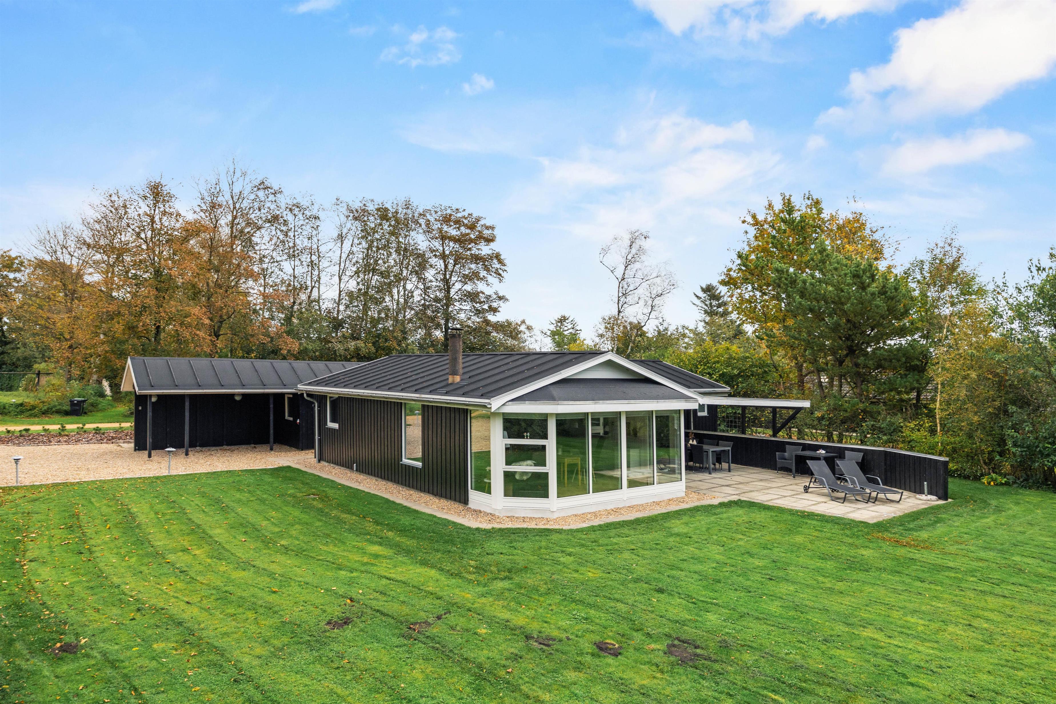 Udenfor byder sommerhuset på et generøst udeareal med en størrelse på 1518 m2, hvilket giver jer masser af plads til udendørs aktiviteter og afslapning. Den kombinerede åbne og overdækkede terrasse gør det muligt at nyde udelivet i al slags vejr og danner den perfekte ramme for alt fra solbadning til hyggelige middagsselskaber. Plænegrunden er ideel til leg og spil, hvor både børn og voksne kan nyde en aktiv dag i det fri.
