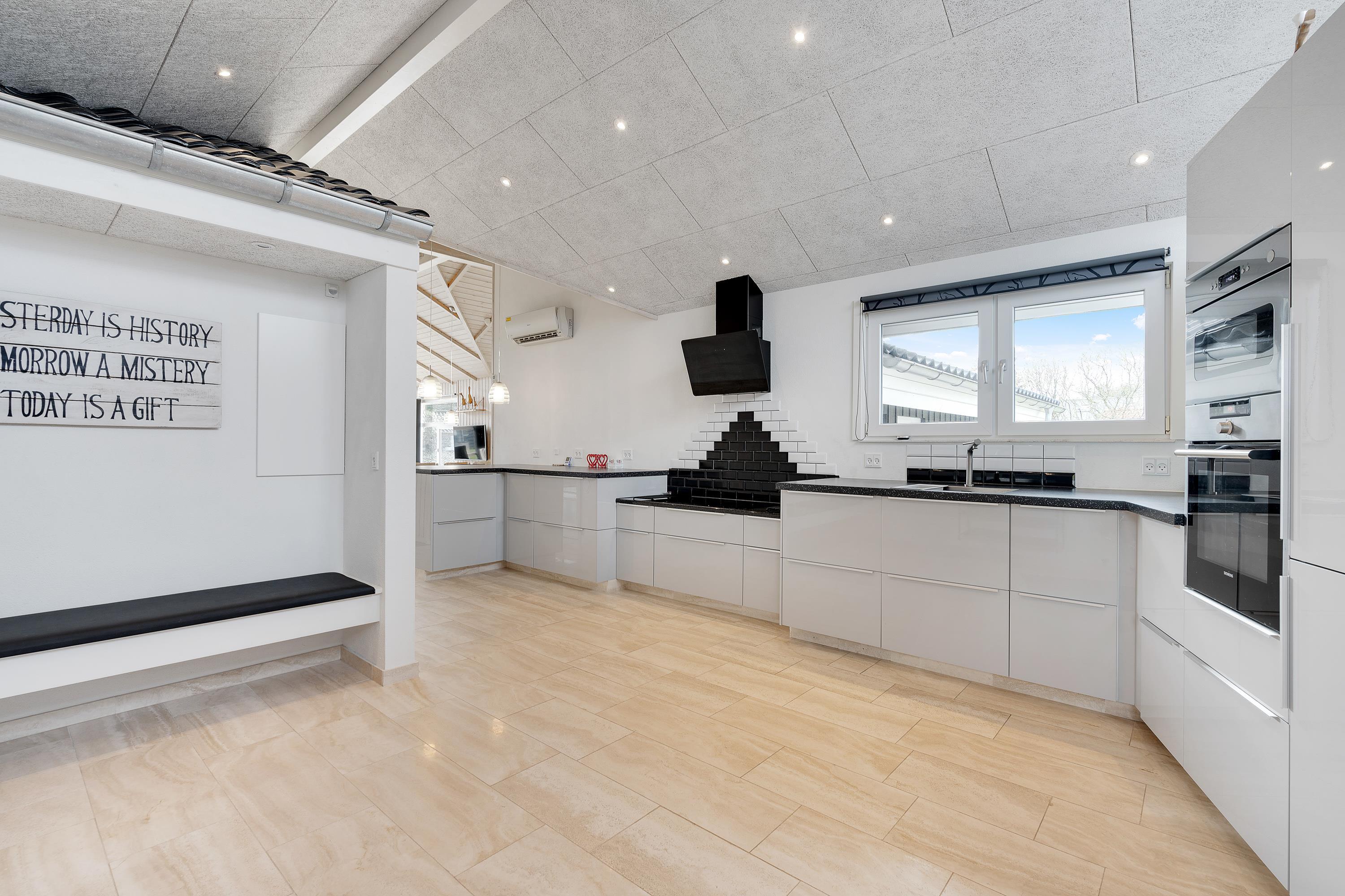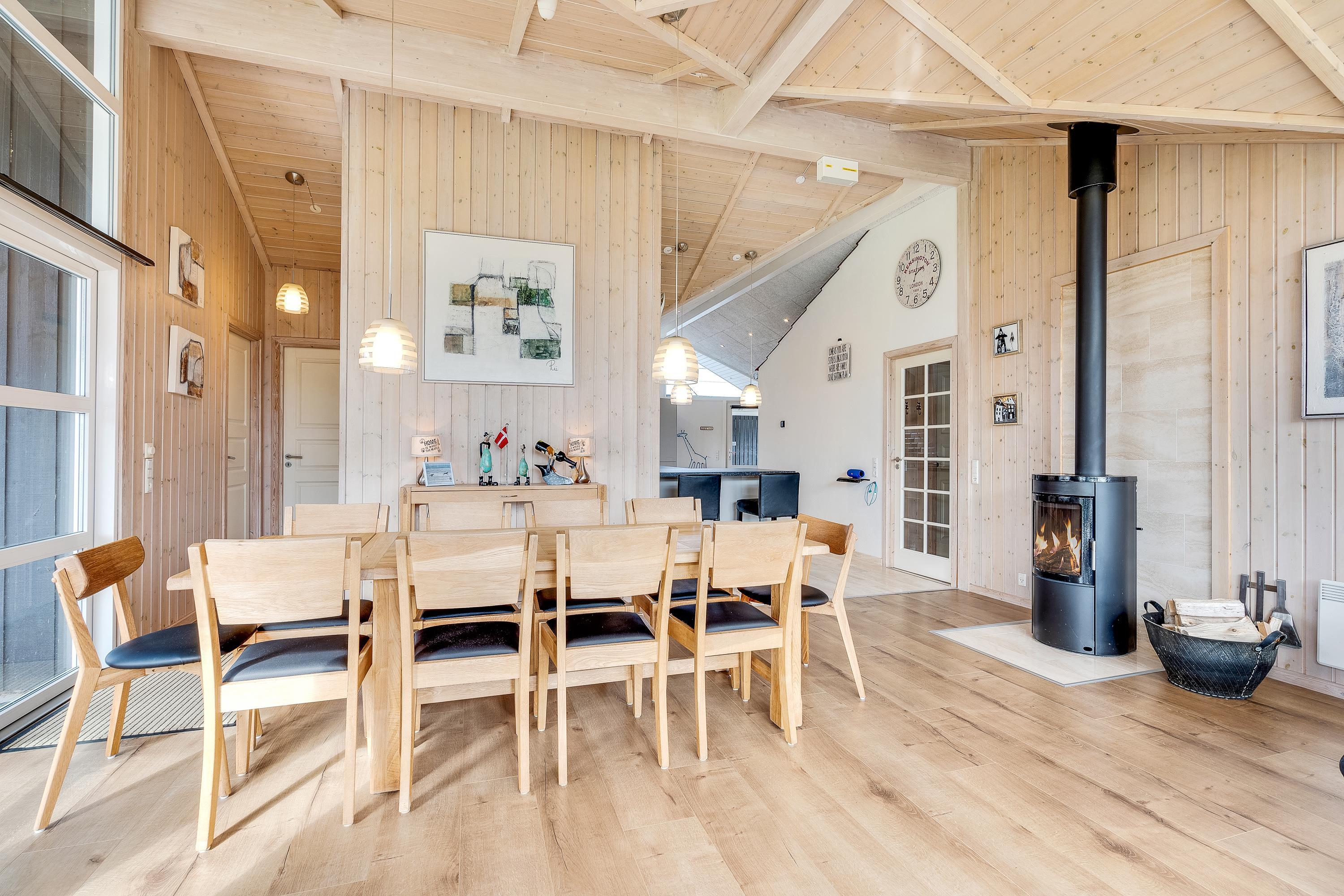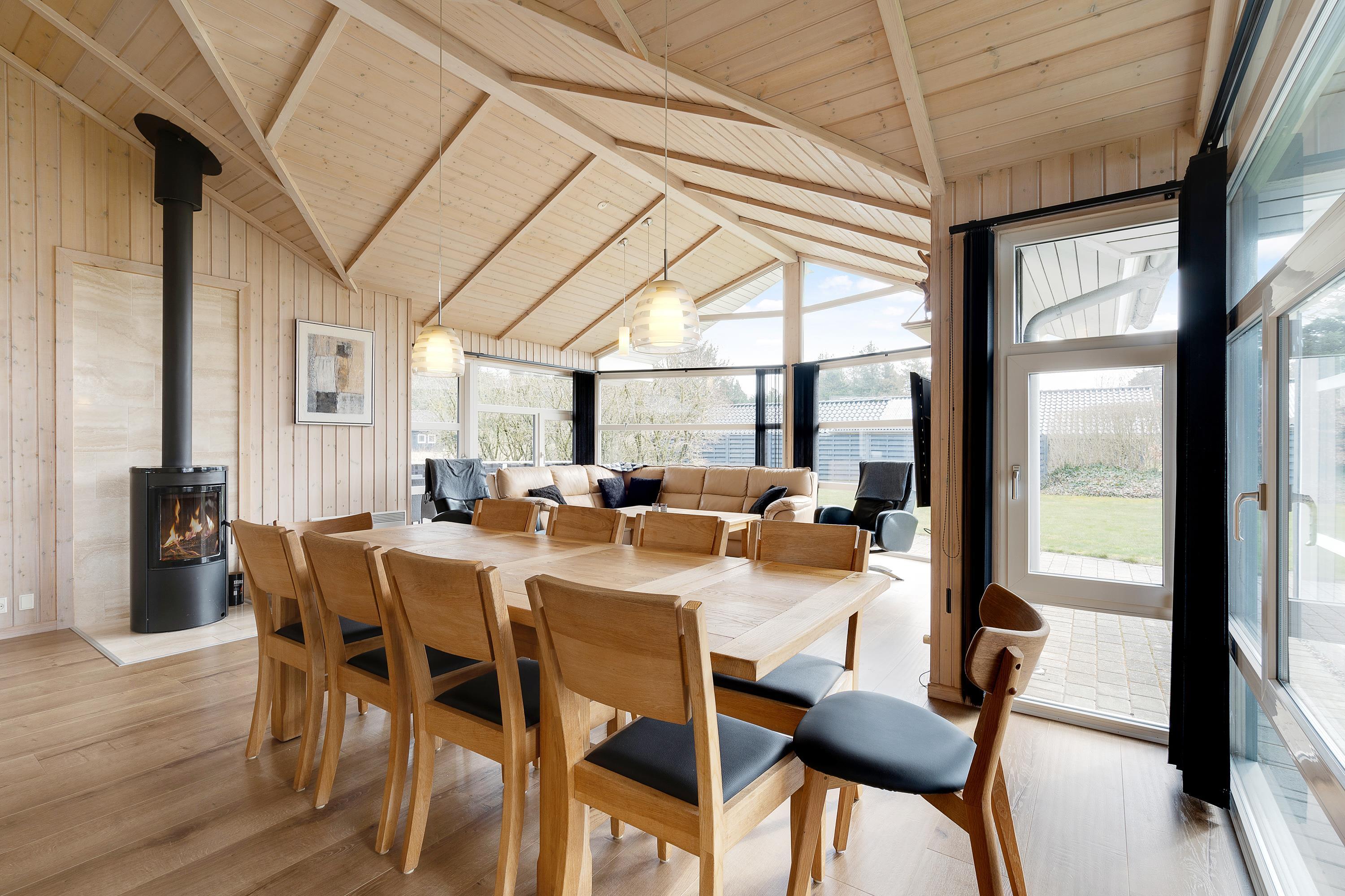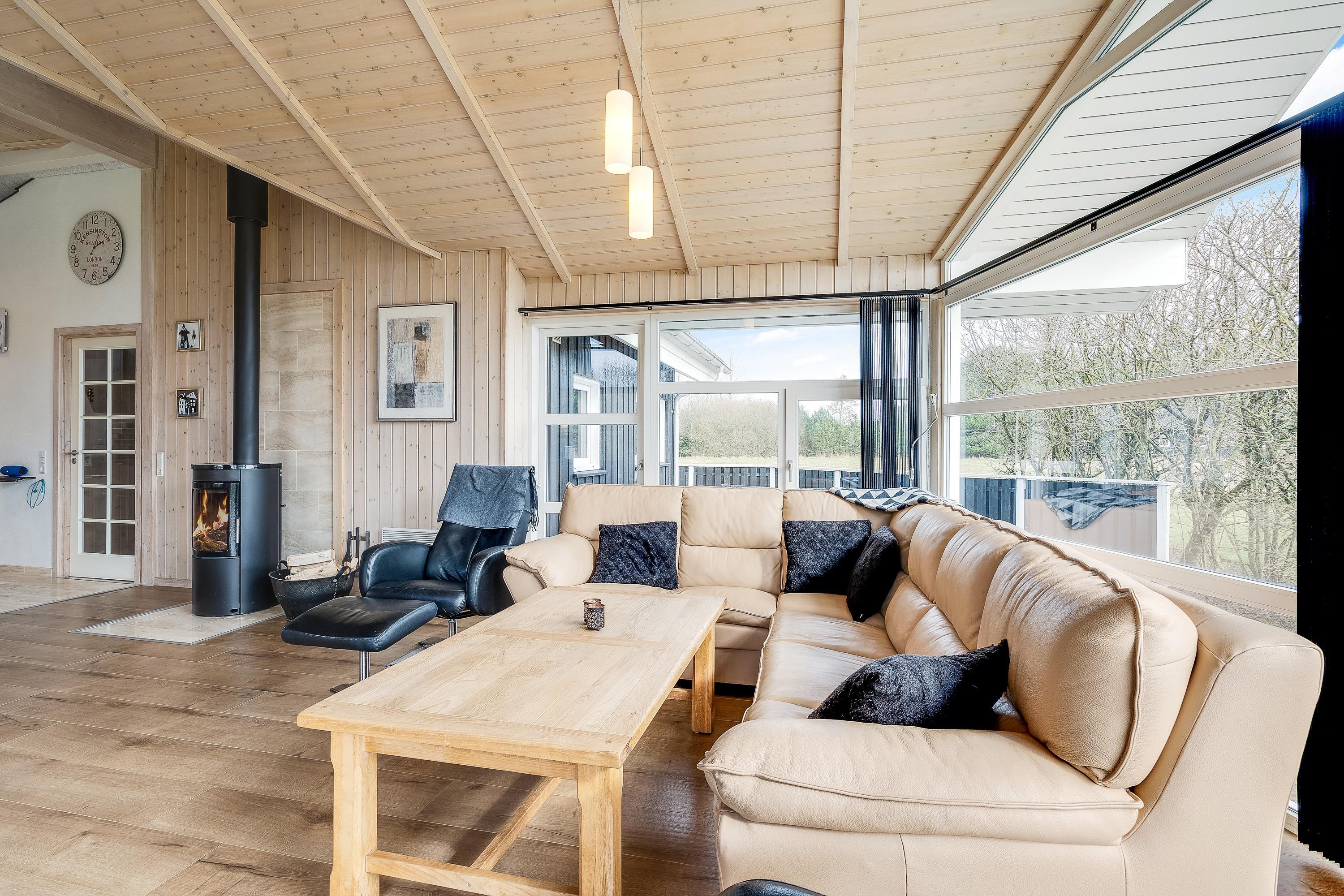 I sommerhuset vil I altid kunne nyde et godt indeklima. En energivenlig varmepumpe sørger for behagelige temperaturer i feriehuset, mens gulvvarmen i køkken, indgangsparti og på begge badeværelser holder fødderne varme. Skal der skrues op for varmen og hyggen, tænder I bare op i brændeovnen i stuen.
