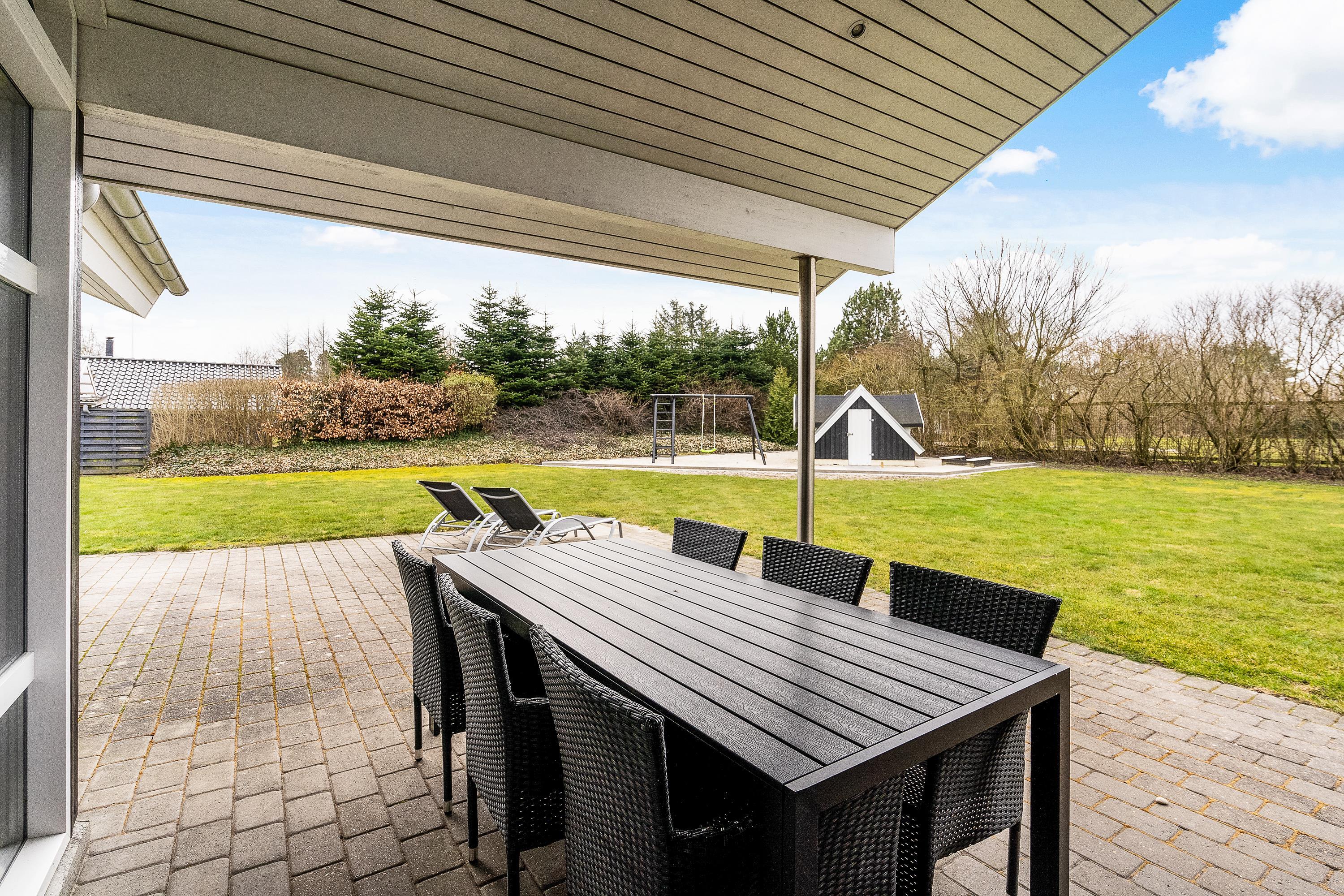 Havemøblerne på terrassen skaber det perfekte sted for hyggelige stunder med familie og venner, hvor I kan nyde et lækkert måltid og de lange, lyse sommeraftener, som Danmark er kendt for.