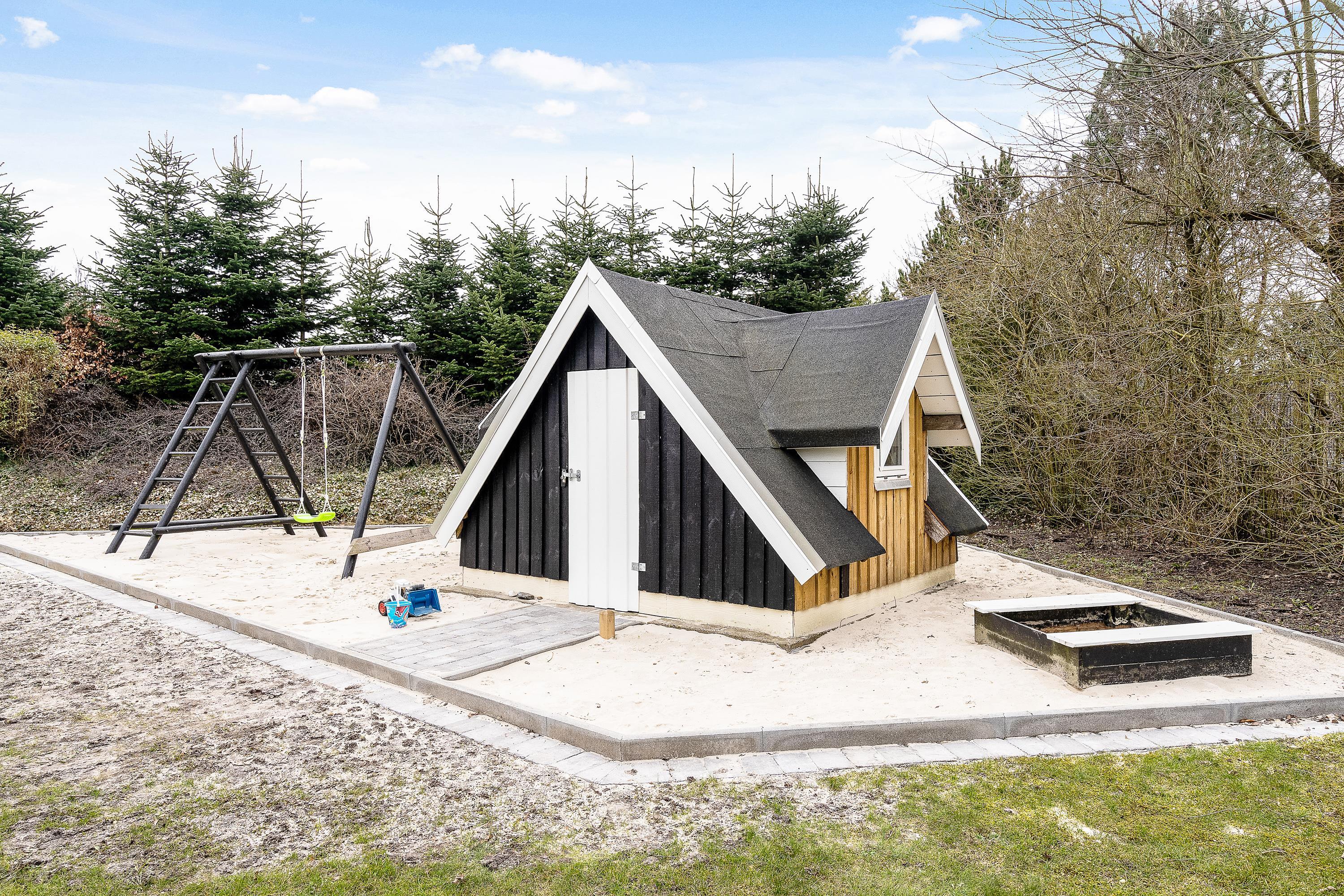 Stor have med gyngestativ og sandkasse