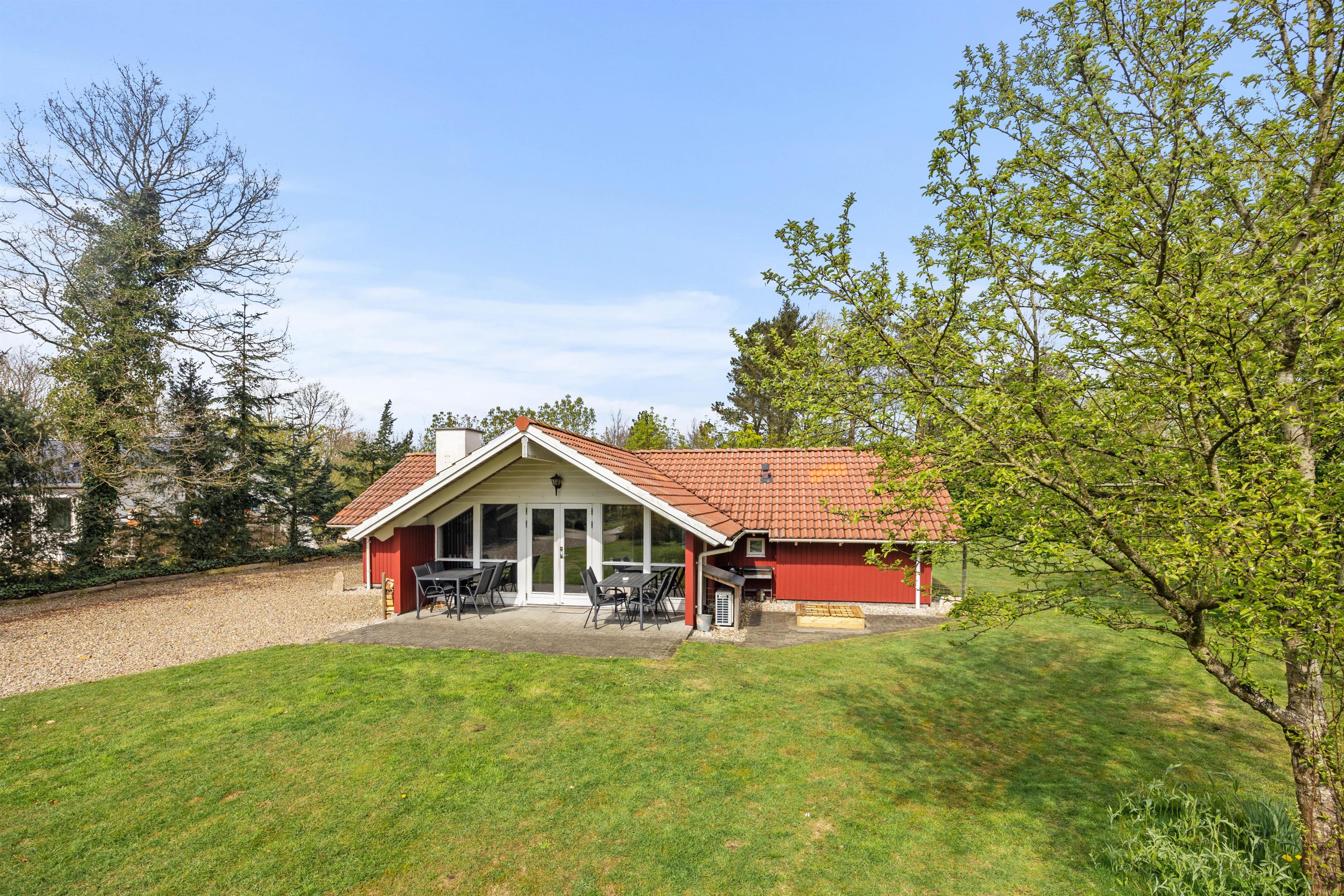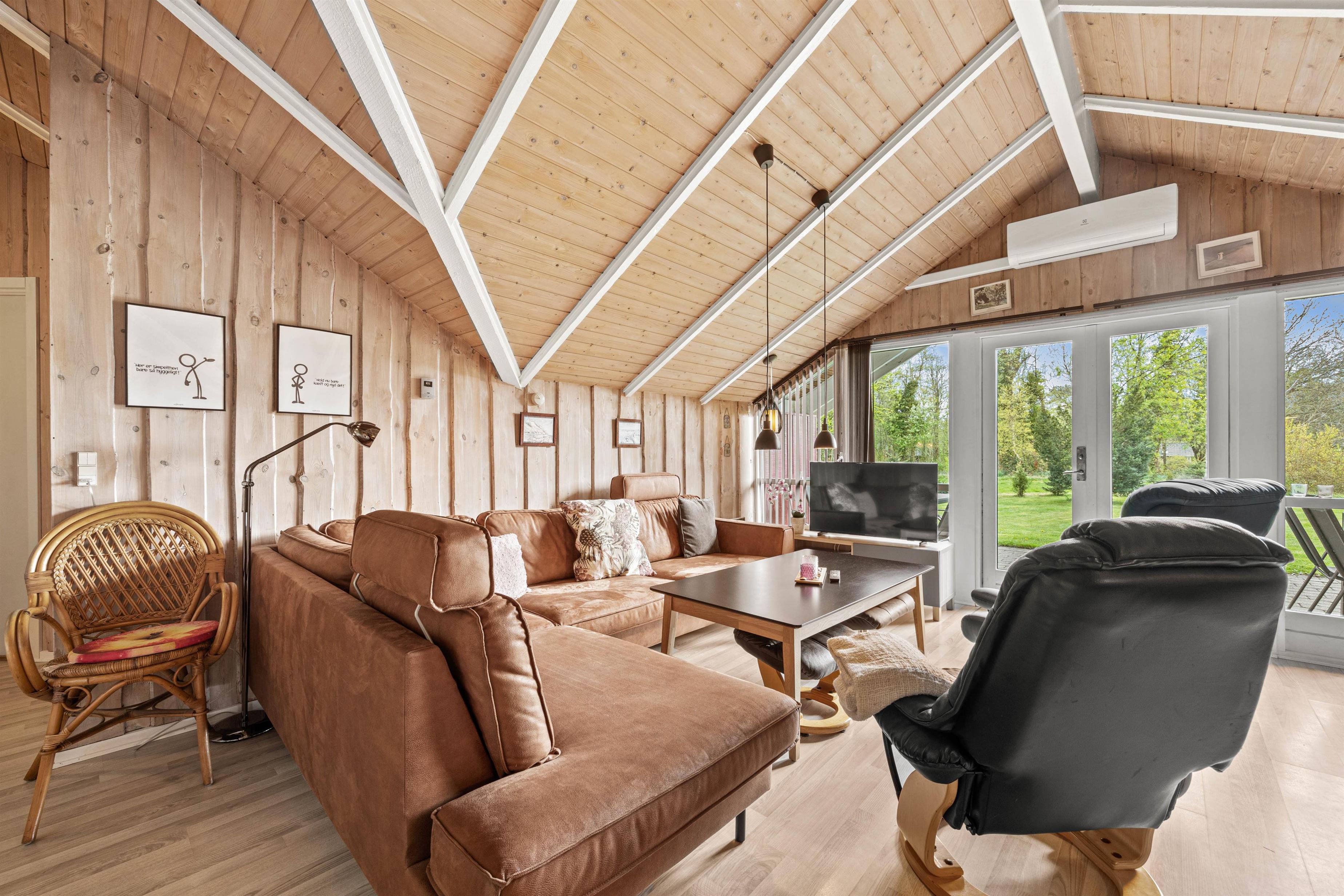 De 3 soveværelser er indrettet med henblik på komfort, og et åbent alrum fungerer som hjemmets hjerte, hvor I kan samles til måltider og stunder foran skærmen med Chromecast. Med spa og sauna inviteres I til daglig forkælelse, mens børnene boltrer sig i sandkassen og på gyngen.