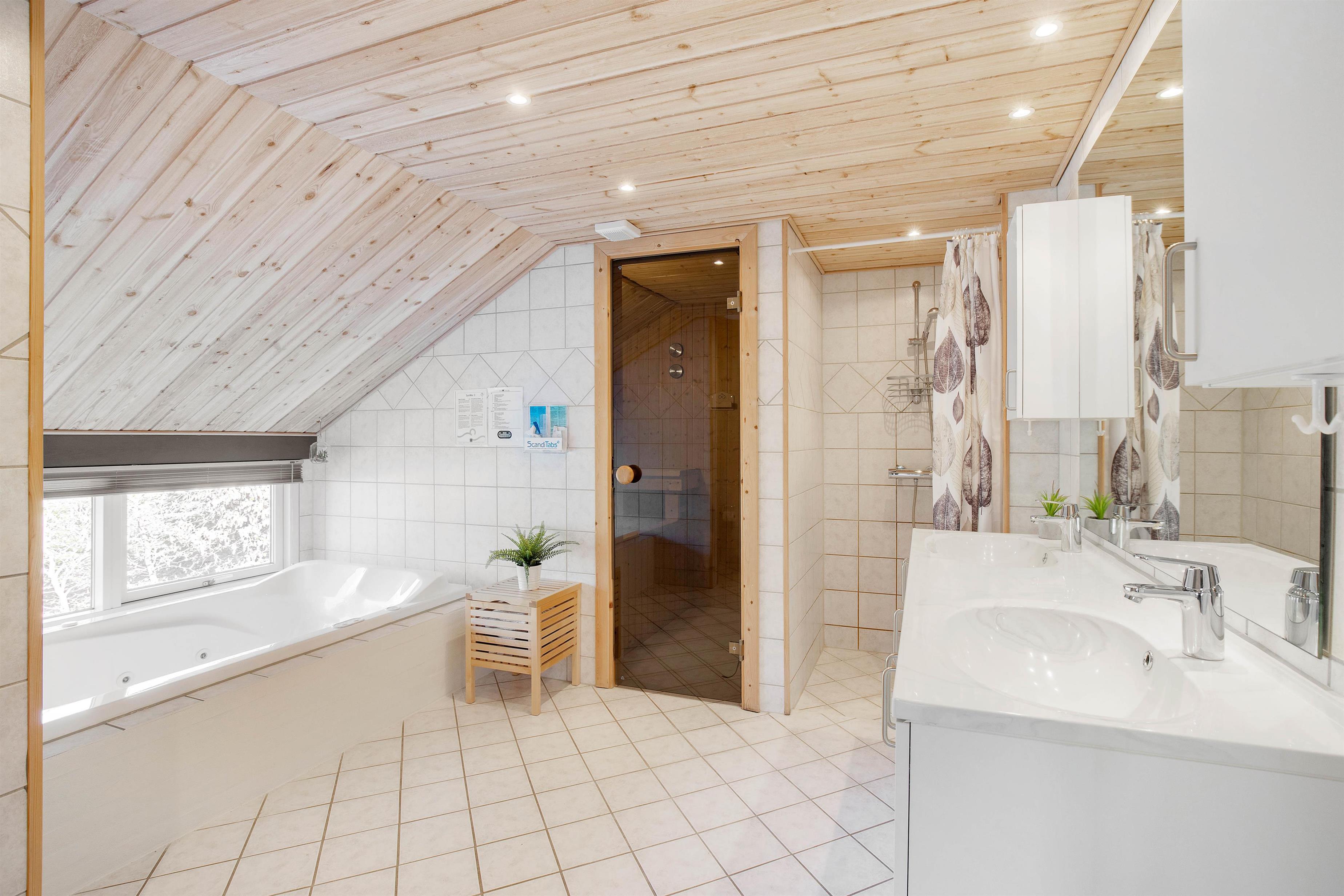 Når det er tid til at krybe til køjs, kan I søge mod sommerhusets 3 soveværelser, der alle er indrettet dobbeltsenge, hvor I kan samle ny energi. Desuden finder I også 4 sovepladser i annekset og 2 badeværelser i sommerhuset med gulvvarme.