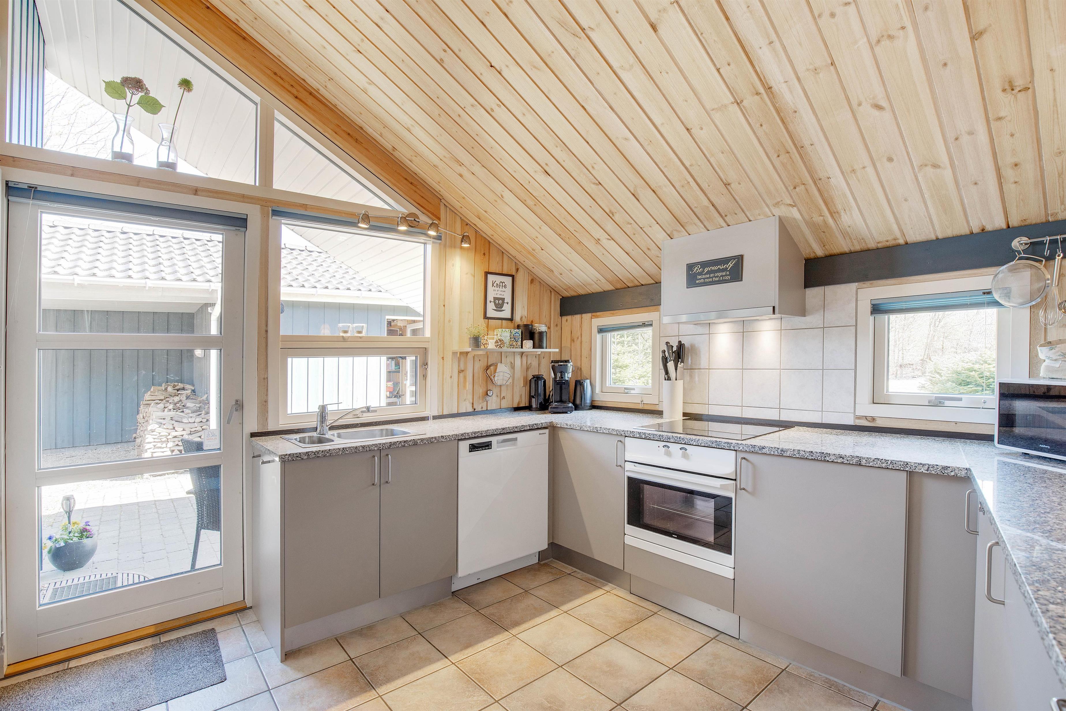 Sommerhuset rummer en lys og indbydende indretning, og der er ingen tvivl om, at I hurtigt vil føle jer hjemme. I feriehuset er der højt til loftet, et skønt lysindfald samt lyse vægge og lofter, der tilsammen er med til at skabe en dejlig ferieatmosfære.