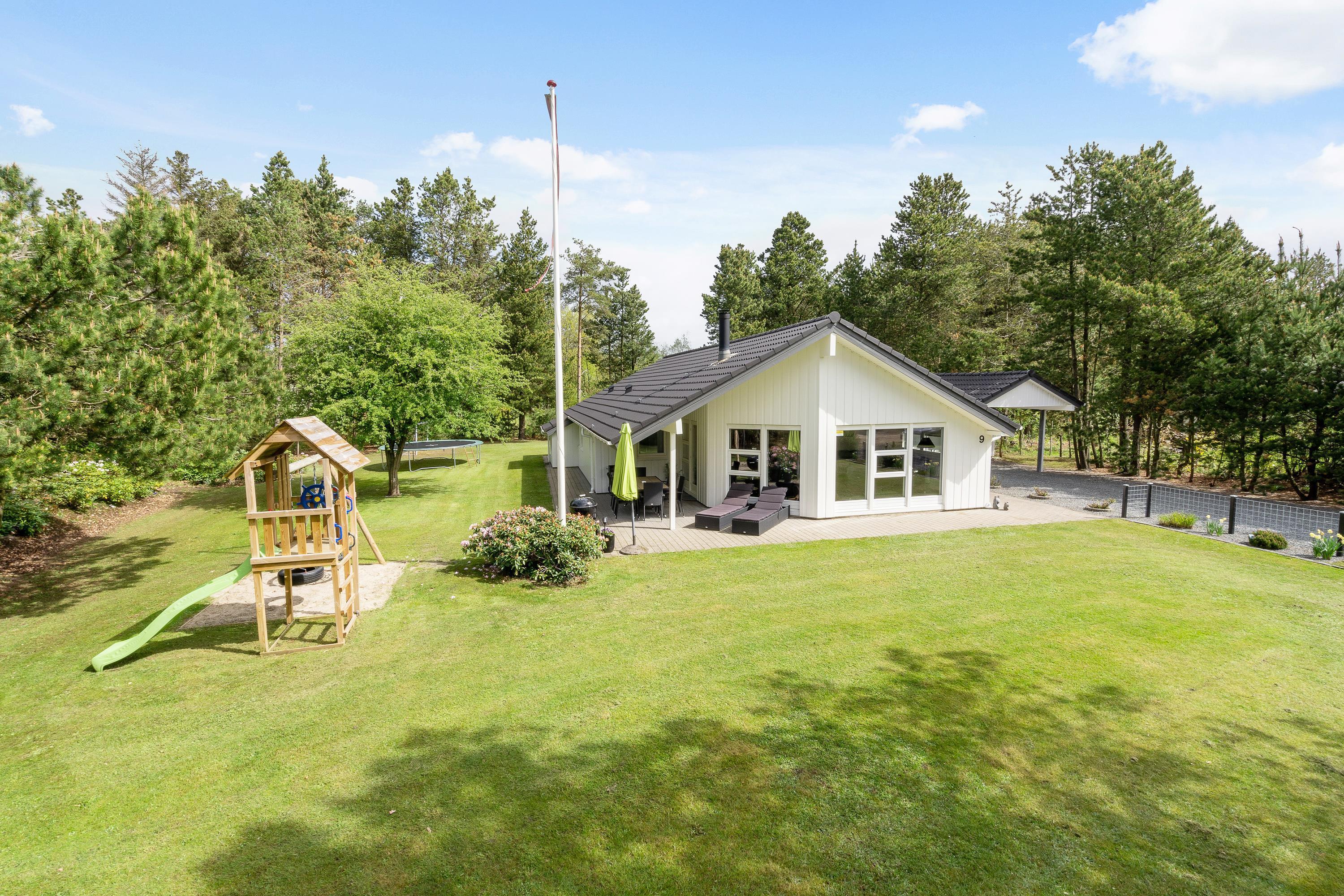 Der er både afslapning og velvære i form af sauna og spabad, mens børnene kan se frem til en gynger, sandkasse, legetårn og masser af plads omkring sommerhuset. Desuden er der en carport, hvor I kan stille jeres bil og jeres medbragte cykler.