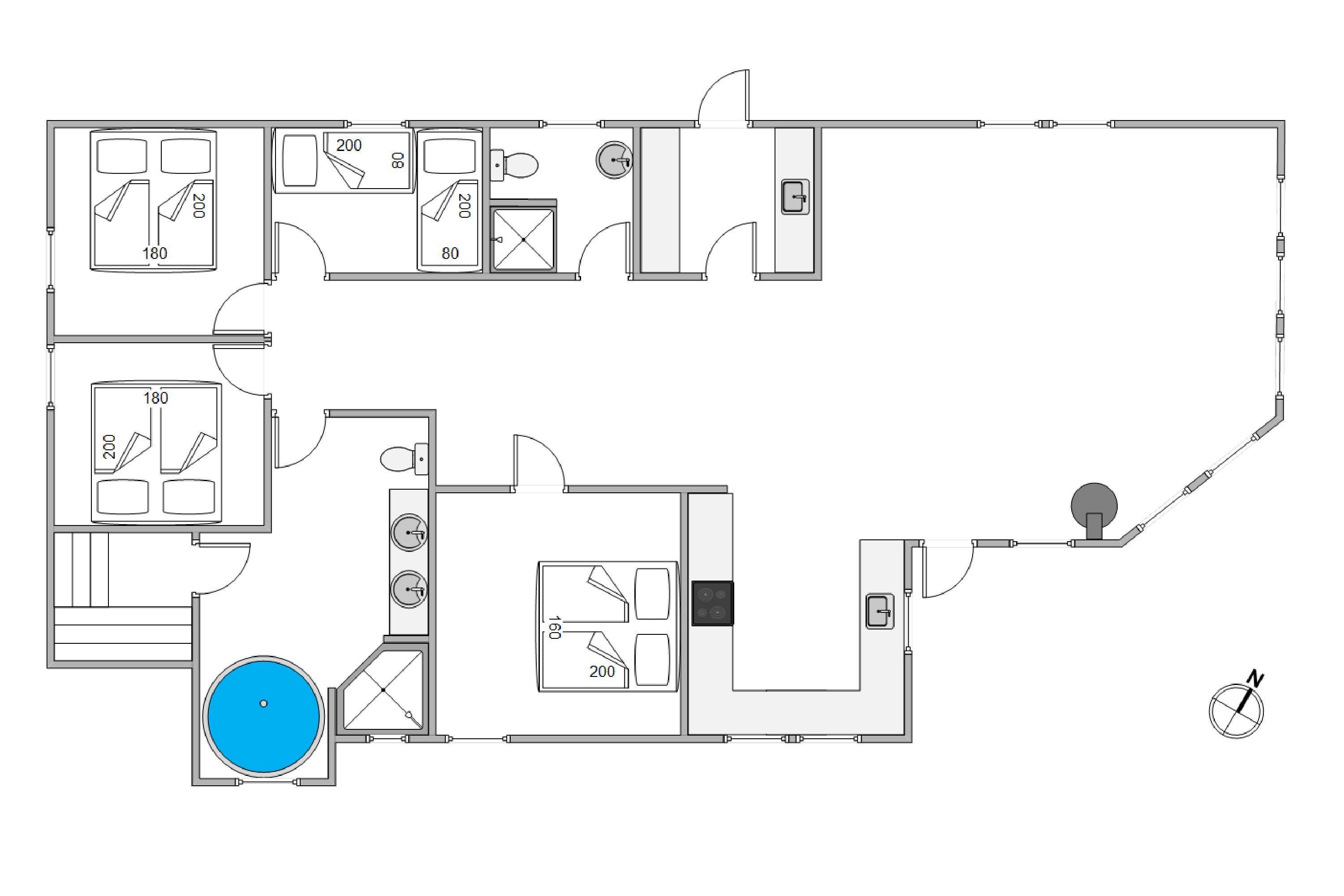 I alt 4 soveværelser findes i ferieboligen. De 3 af dem er indrettet med dobbeltsenge, men det sidste har to enkeltsenge. De 2 badeværelser er begge udstyret med gulvvarme, og det største badeværelse har også både sauna og spa til 2 personer, så det betyder ren afslapning! Især efter en lang dag i den friske og til tider kølige vestenvind, hjælper et bad i det varme, boblende vand eller en sauna-session med at genoplade jeres batterier og blive klar igen til den næste aktivitet.