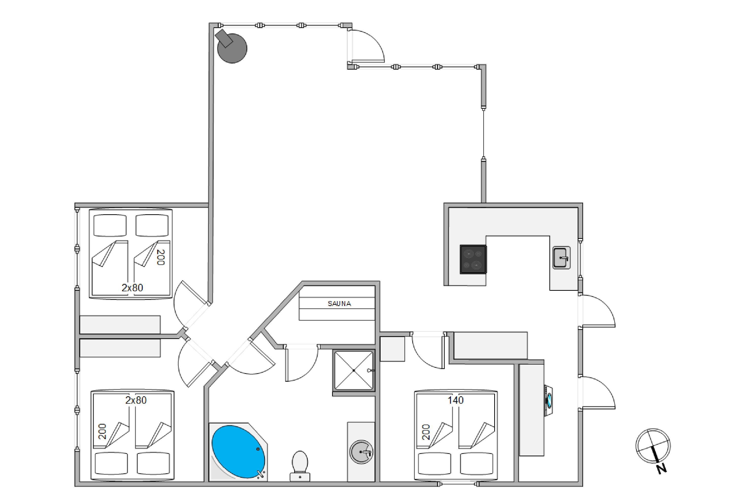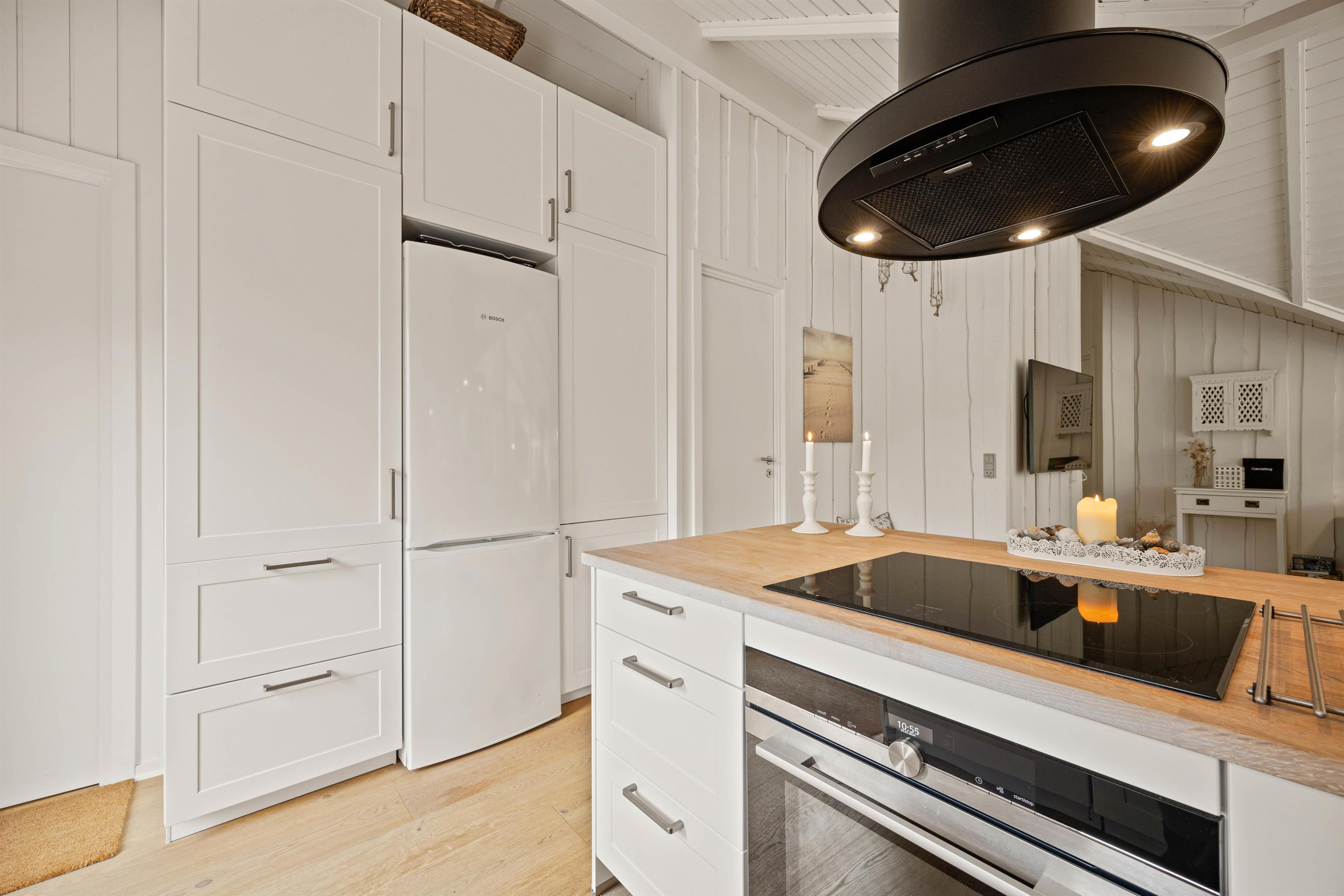 Ferienhuset byder på 3 soveværelser med dobbeltsenge. Værelserne er lyst og venligt indrettet. Efter en god nats søvn og tanken fyldt med energi kan I hygge jer med fælles madlavning i det åben køkkenalrum. Køkkenet er stort nok til at børnene kan deltage, hvad enten det er morgenmaden, aftensmaden eller måske en hjemmebagt kage, der skal fremtrylles. Og når kokkene er færdige med kreationerne, tager husets opvaskemaskine sig af resten.