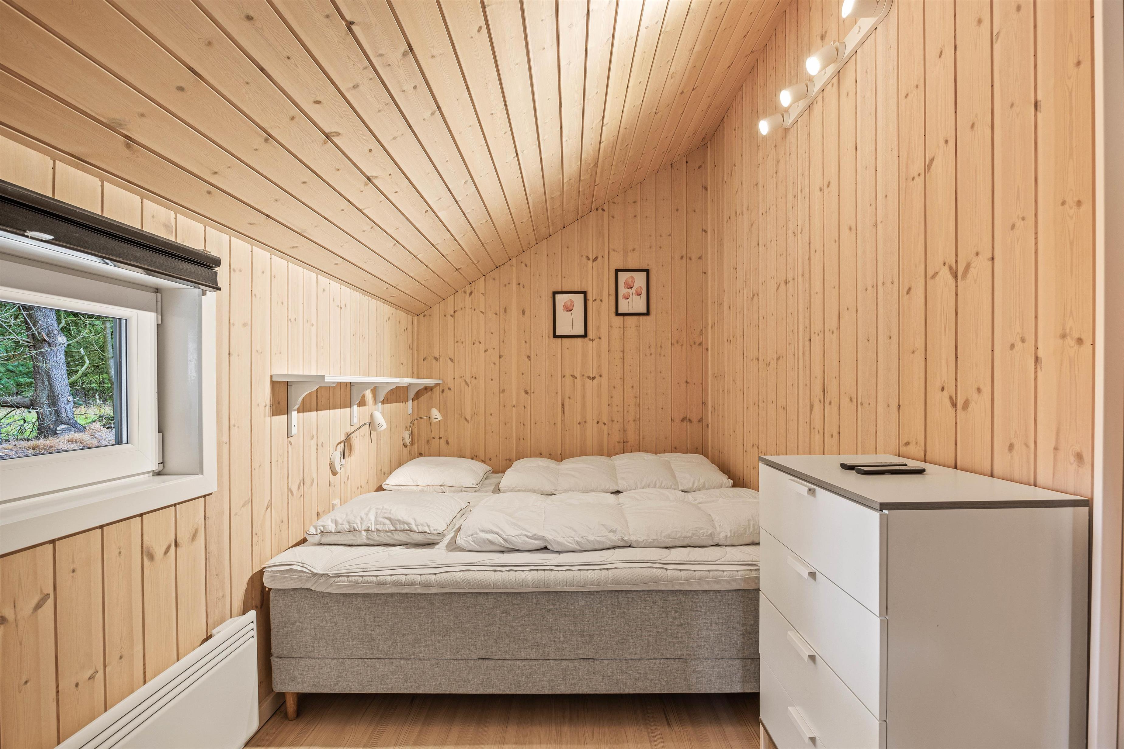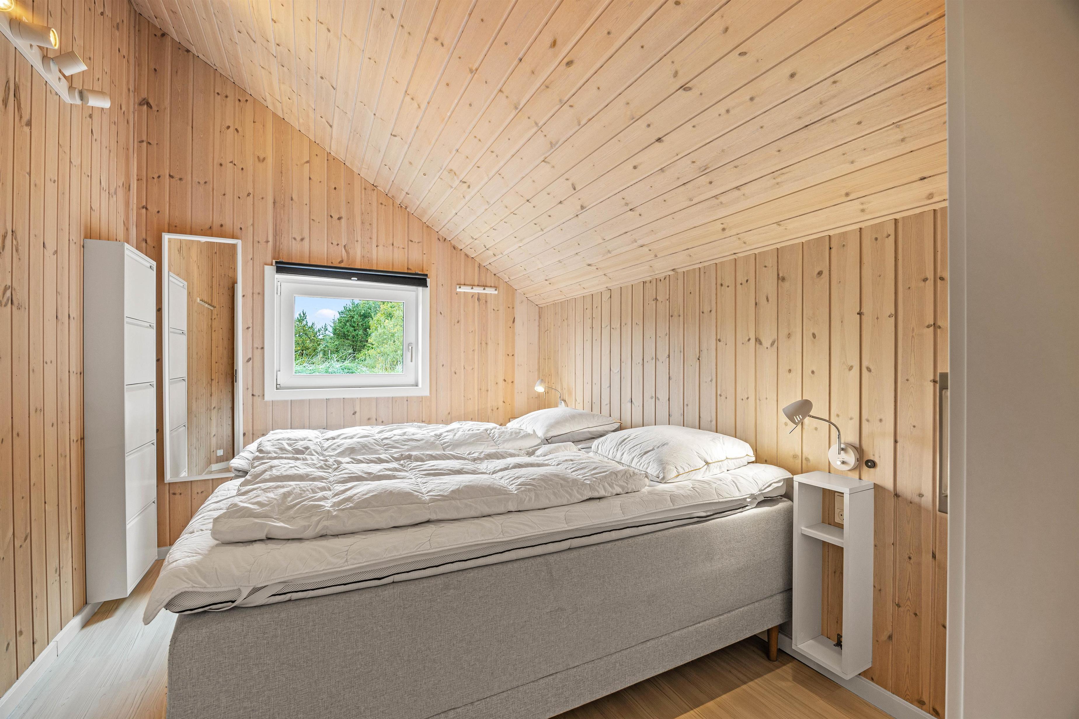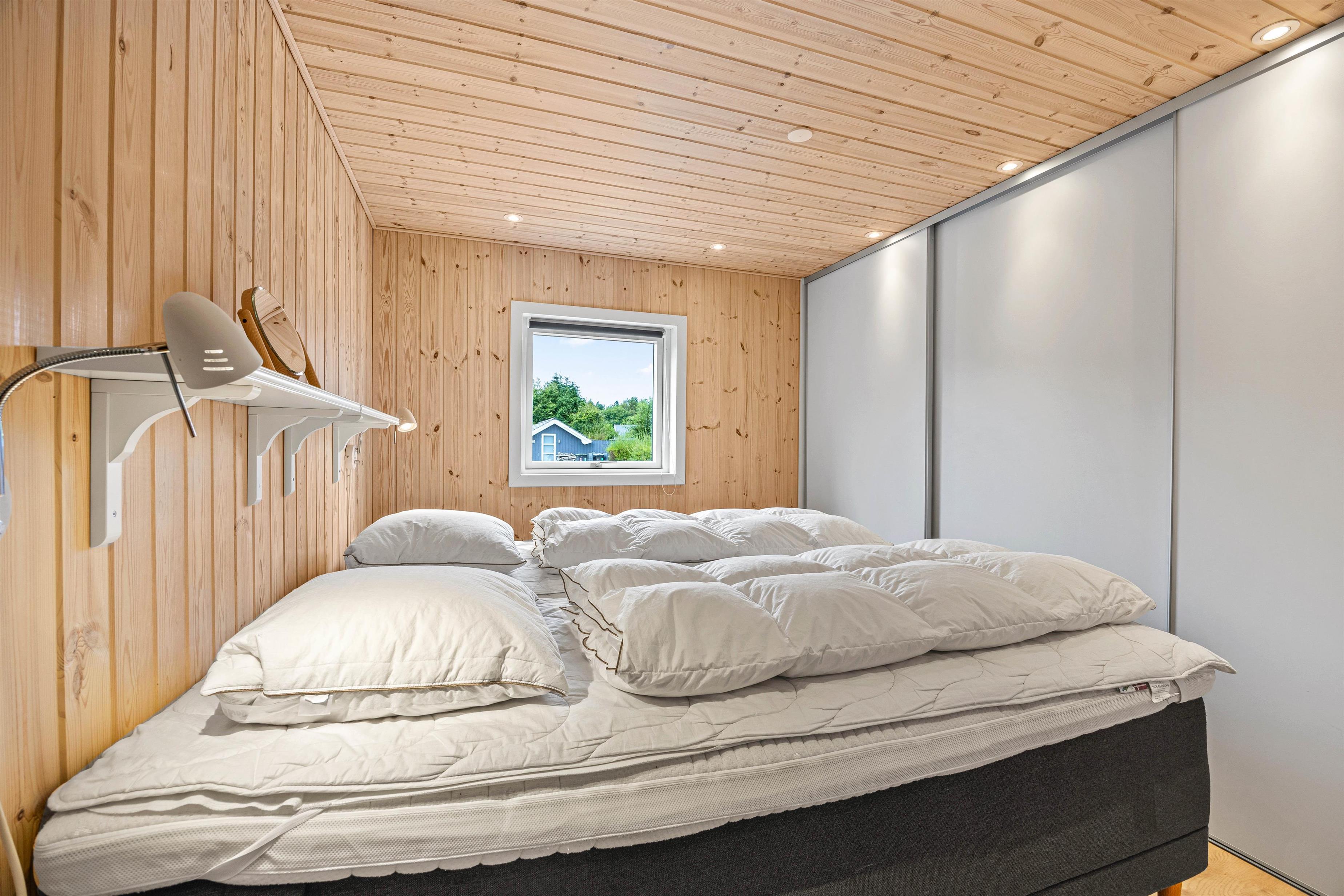 Indendørs i sommerhuset venter jer en lys indretning, som I helt sikkert vil føle jer godt tilpas i. Sommerhuset er indrettet med 4 gode soveværelser med super lækre kvalitets madrasser fra Dunlopillo i 3 af værelserne og en 140x200cm seng i det fjerde værelse. Derudover er der også sovepladser på hemsen. Med 2 badeværelser i sommerhuset, der har gulvvarme, slipper I for kø fra morgenstunden.