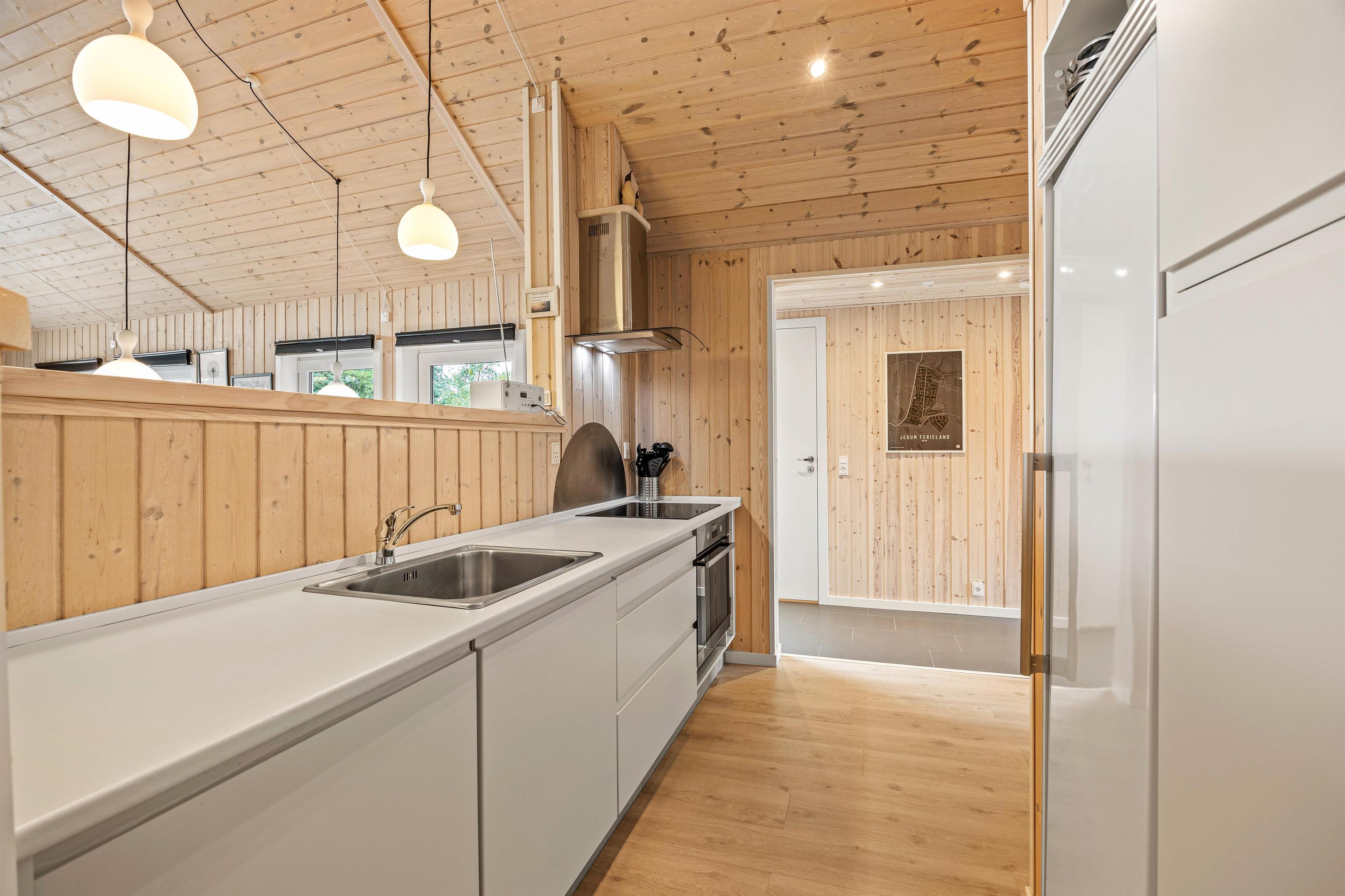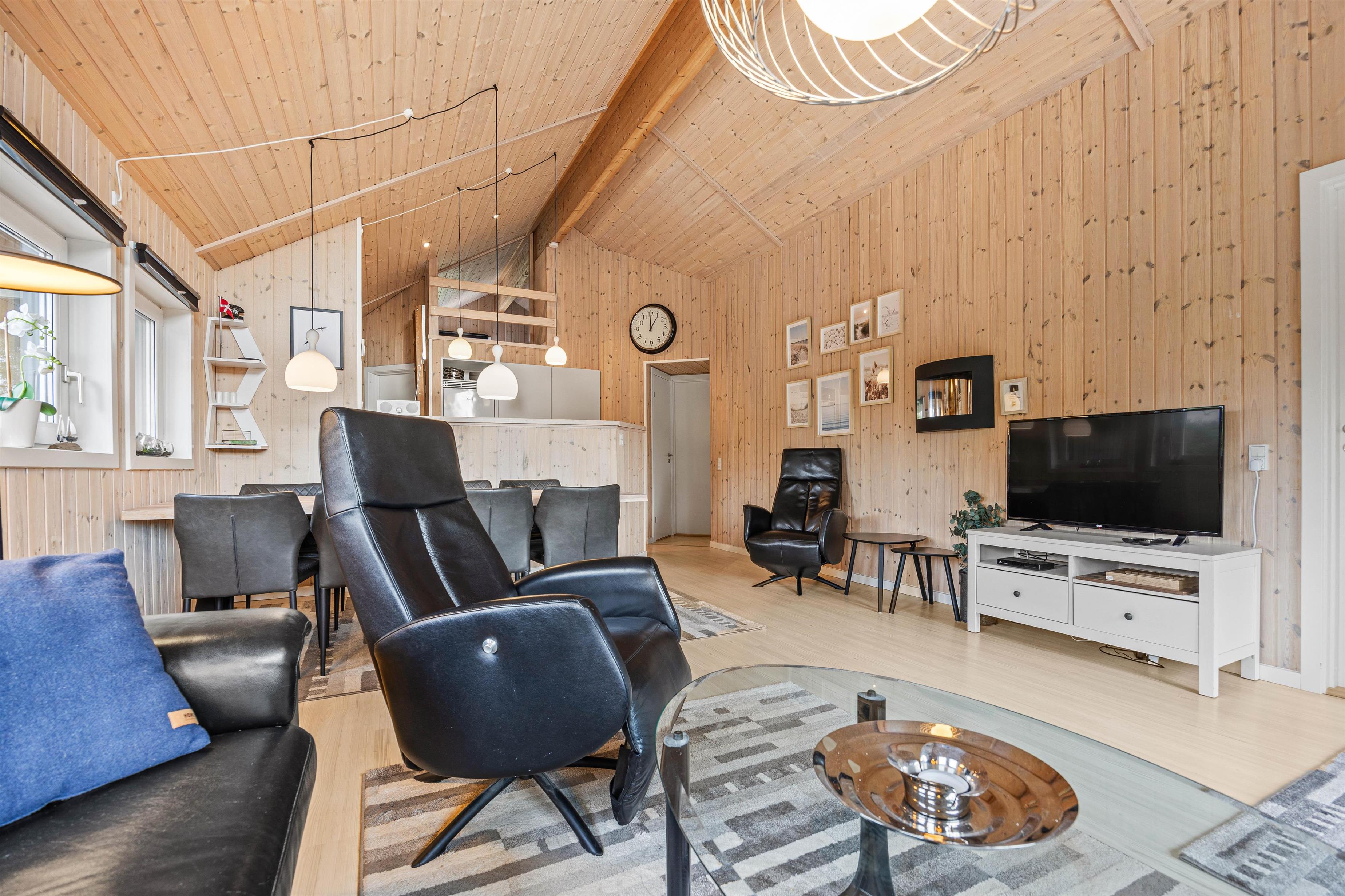 Jeres samlingspunkt i feriehuset kommer uden tvivl til at være alrummet, der forener køkken med stue og spiseplads. Her kan I nyde ferien og hinandens selskab, mens I sammen laver mad, spiller spil og ser film.
