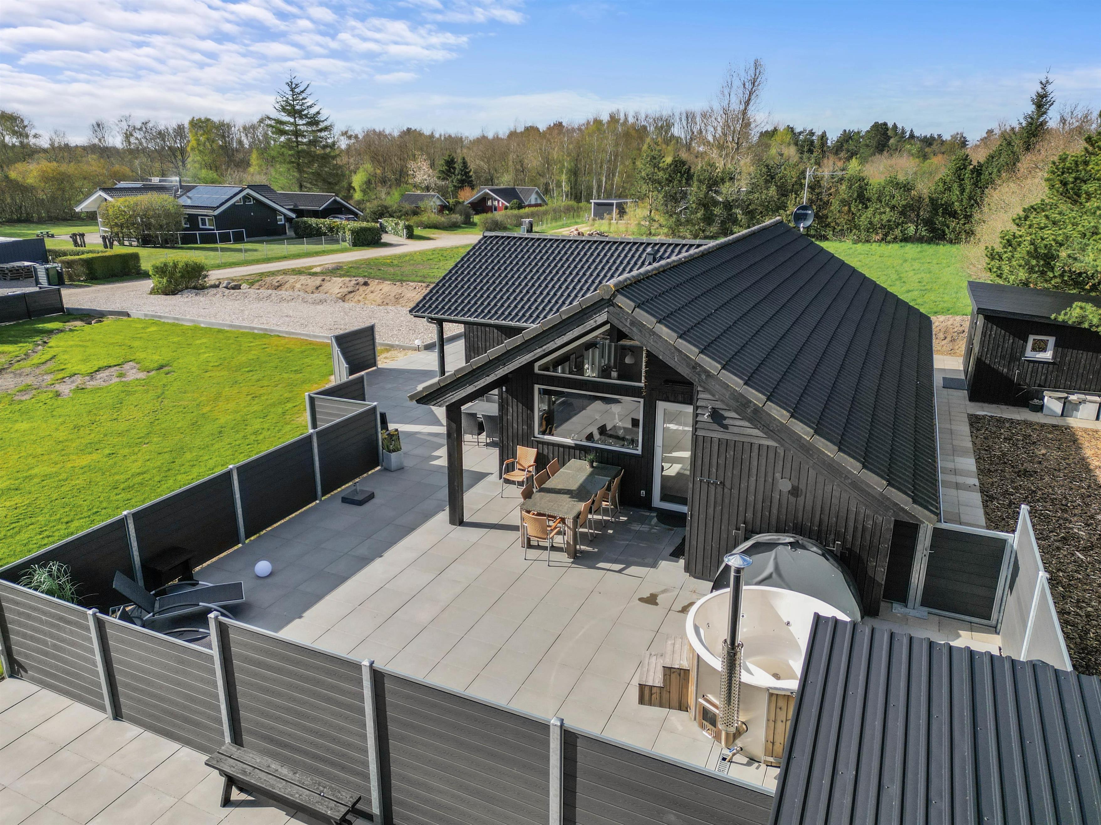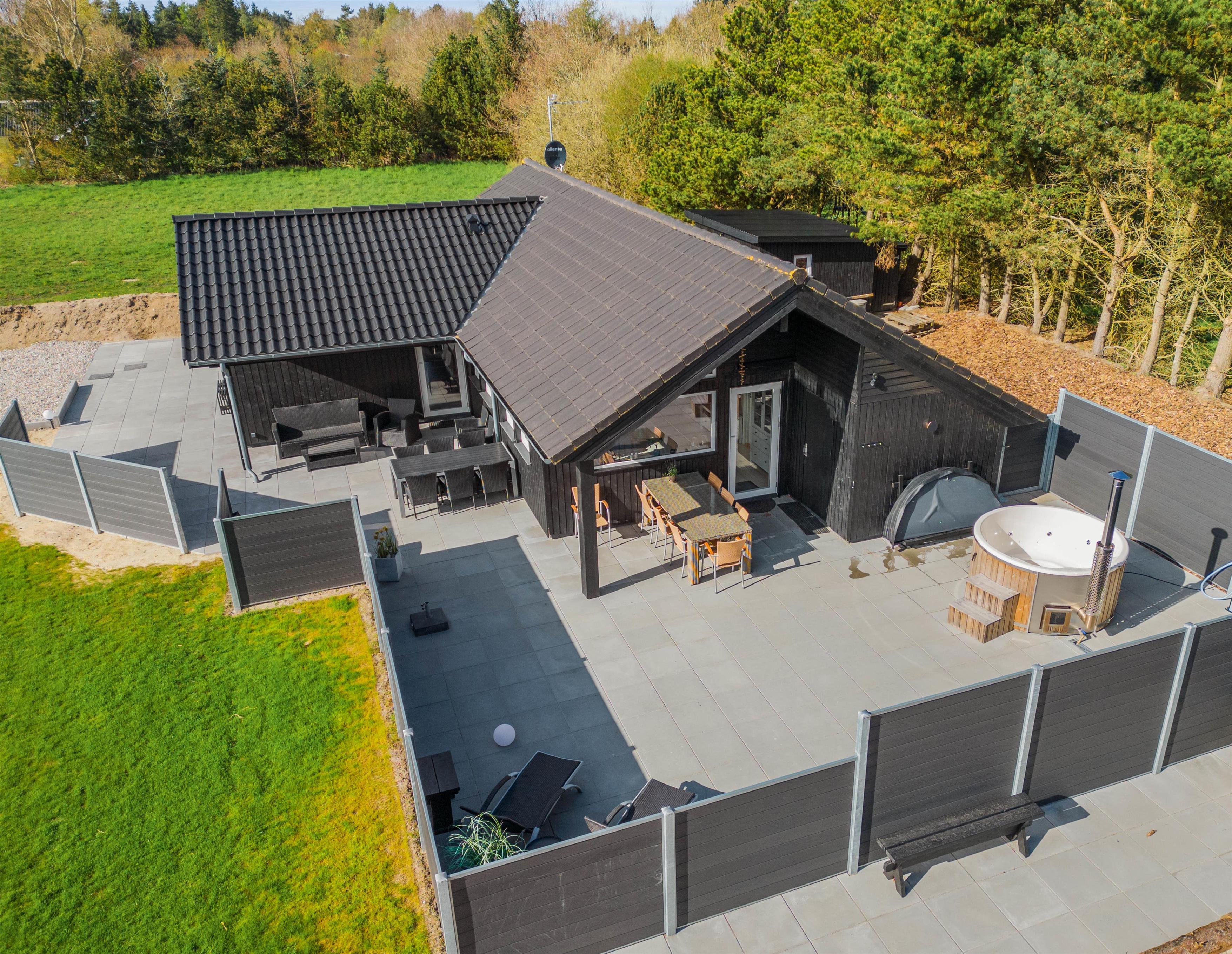 Med en række luksuriøse faciliteter som infrarød sauna, vildmarksbad med dyser og en rummelig terrasse, er ægte feriehygge garanteret. Udforsk den fantastiske naturgrund, og nyd nem adgang til både strand og indkøbsmuligheder i nærområdet.