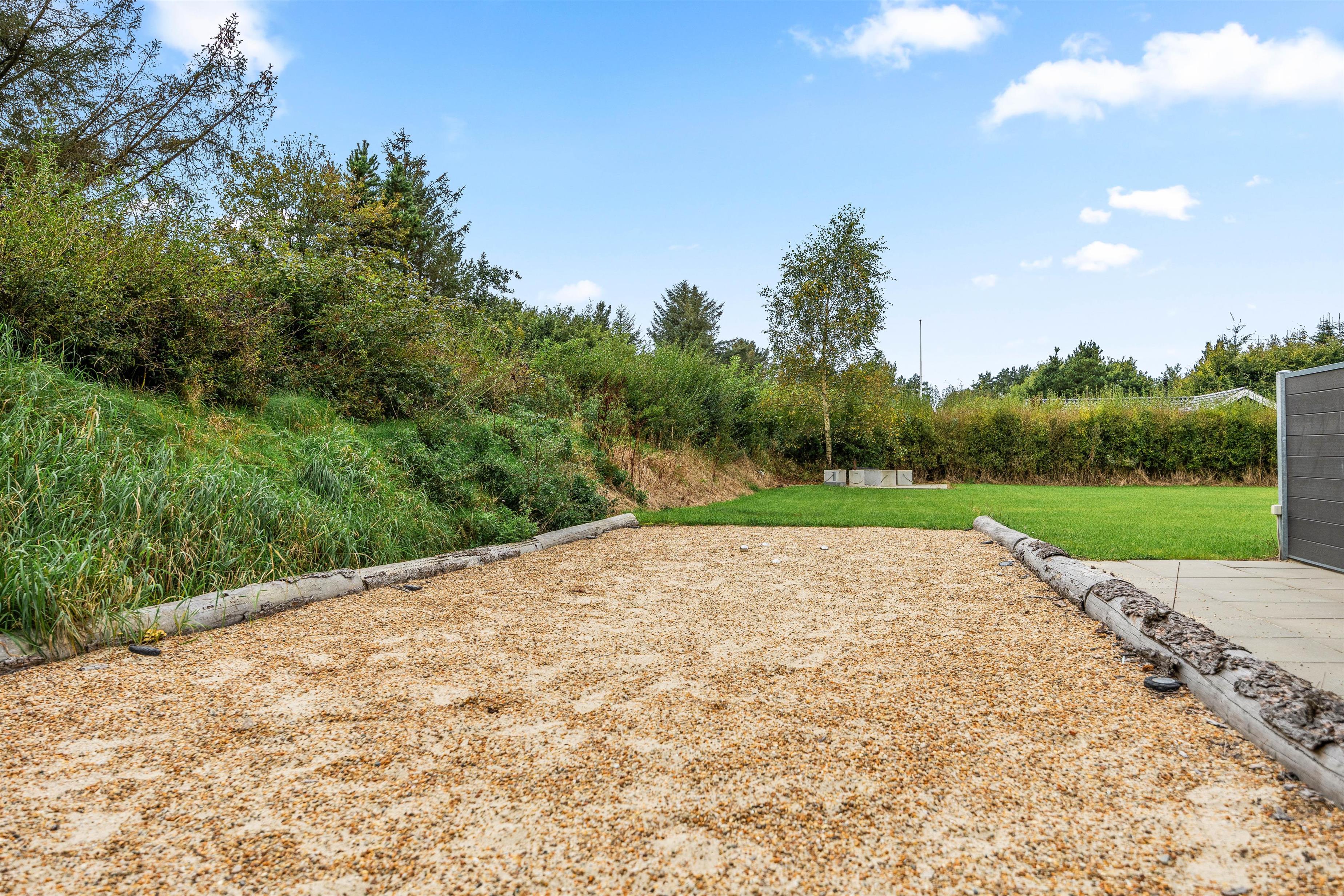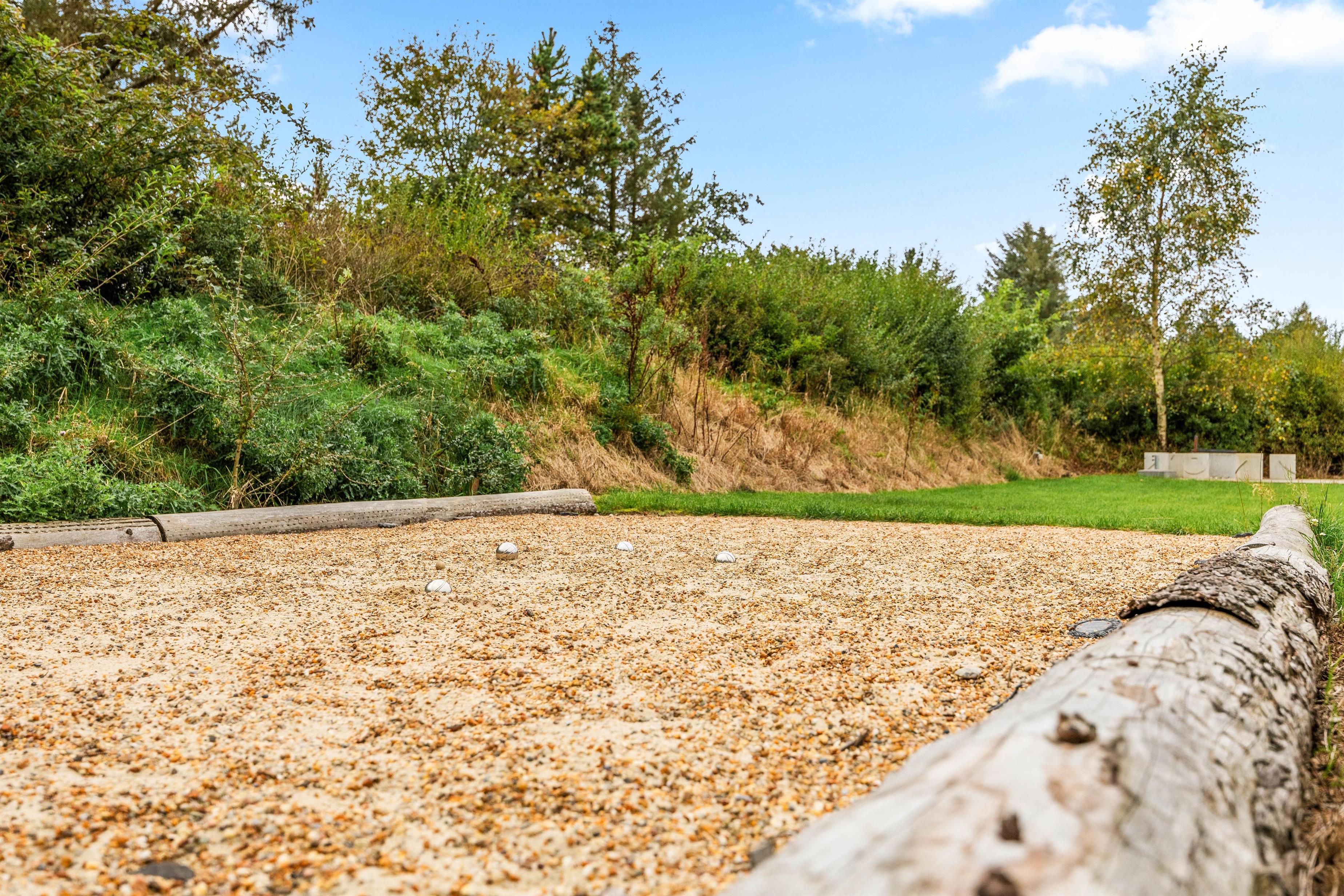 På sommerhusets udeområde venter jer flere skønne højdepunkter, som I kan se frem til på jeres ferie. På udeområdet finder I det skønne vildmarksbad, der inviterer til masser af afslapning under åben himmel. Kan I lide at spille petanque, kan I gøre dette i haven. Her finder I en dejlig stor petanque-bane, med internationale mål på 3,5 x 12m.