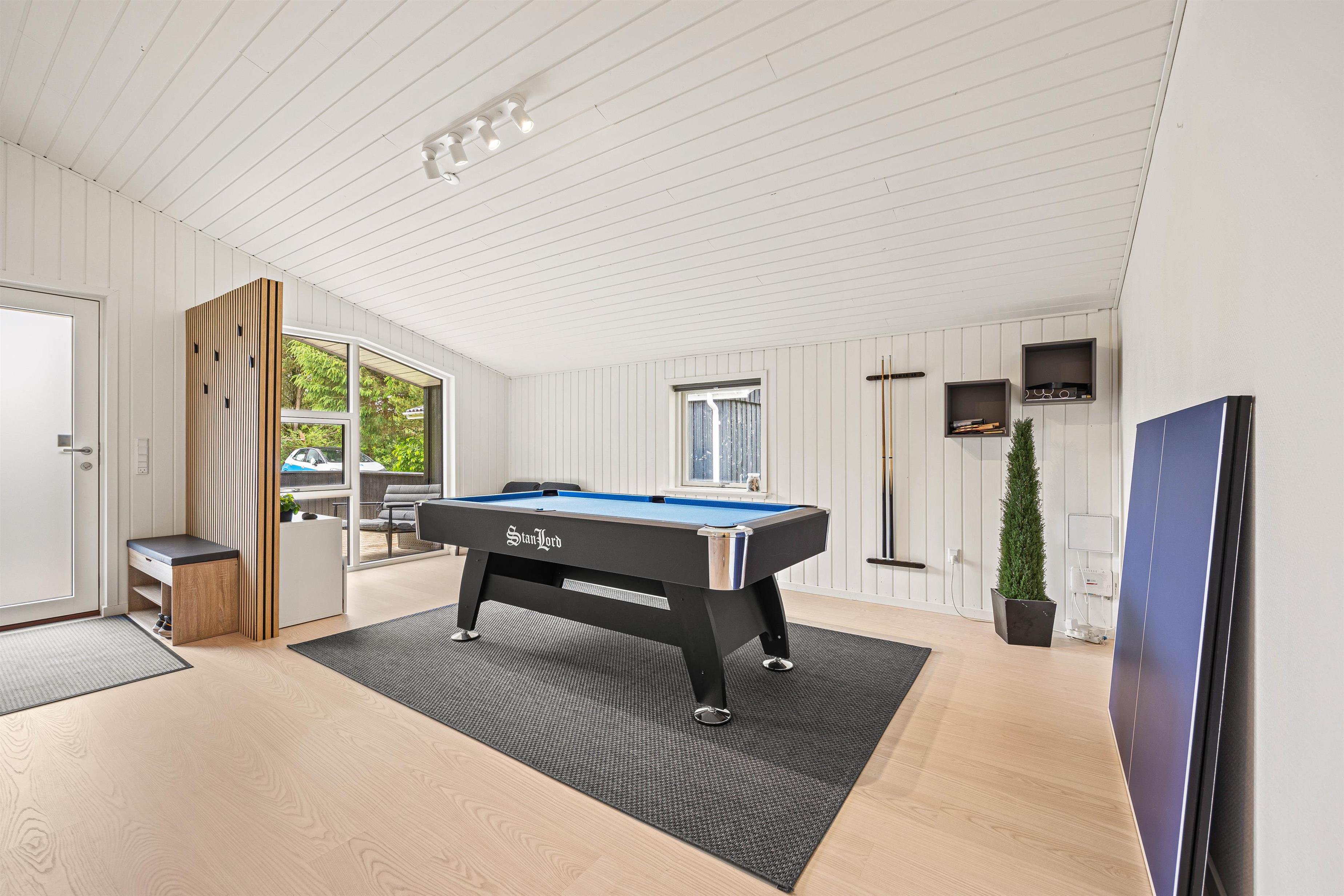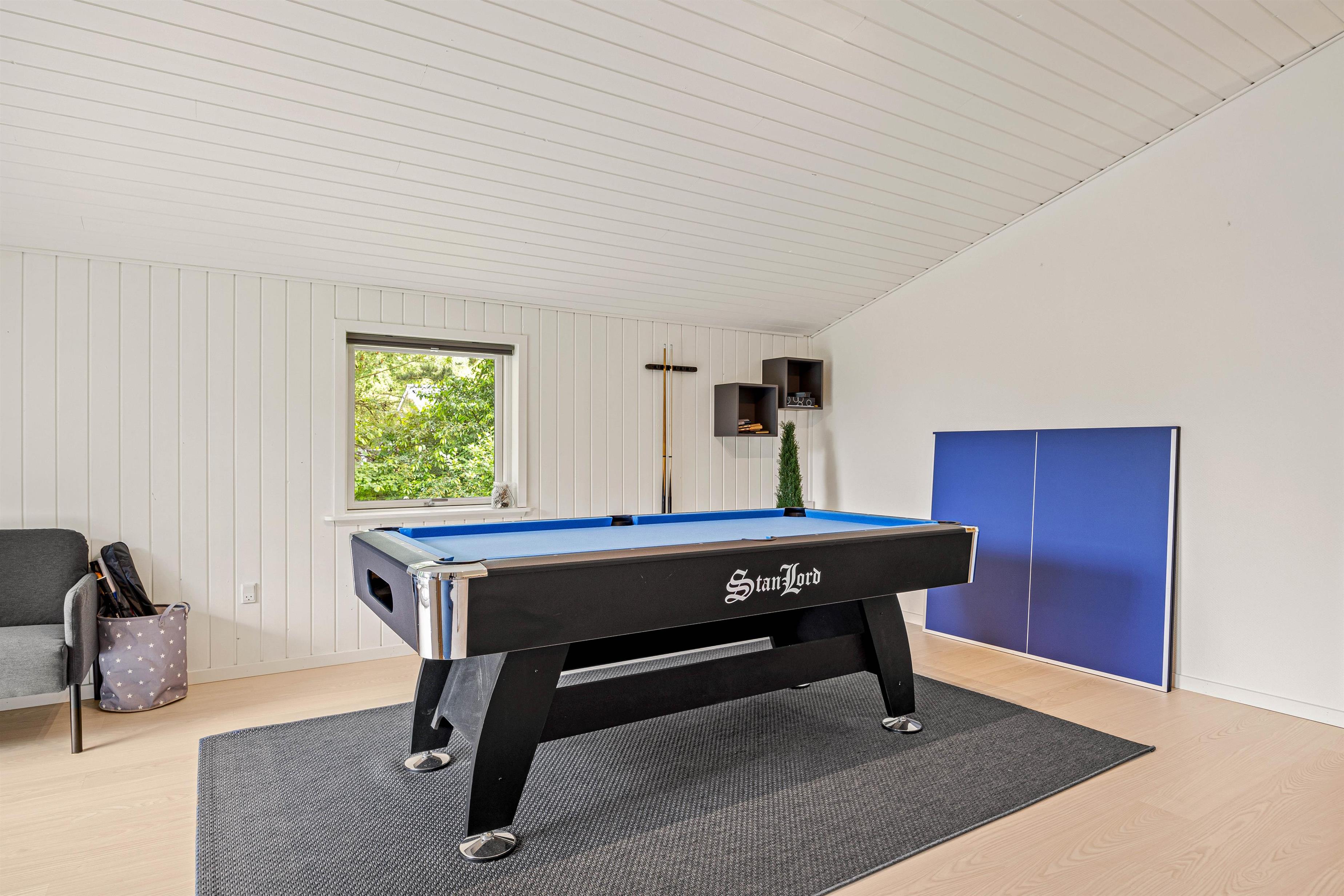 Et af husets højdepunkter er aktivitetsrummet, der har både poolbord, bordtennisbord og en playstation 4. Det er perfekt til at afholde turneringer og skabe sjove minder sammen.