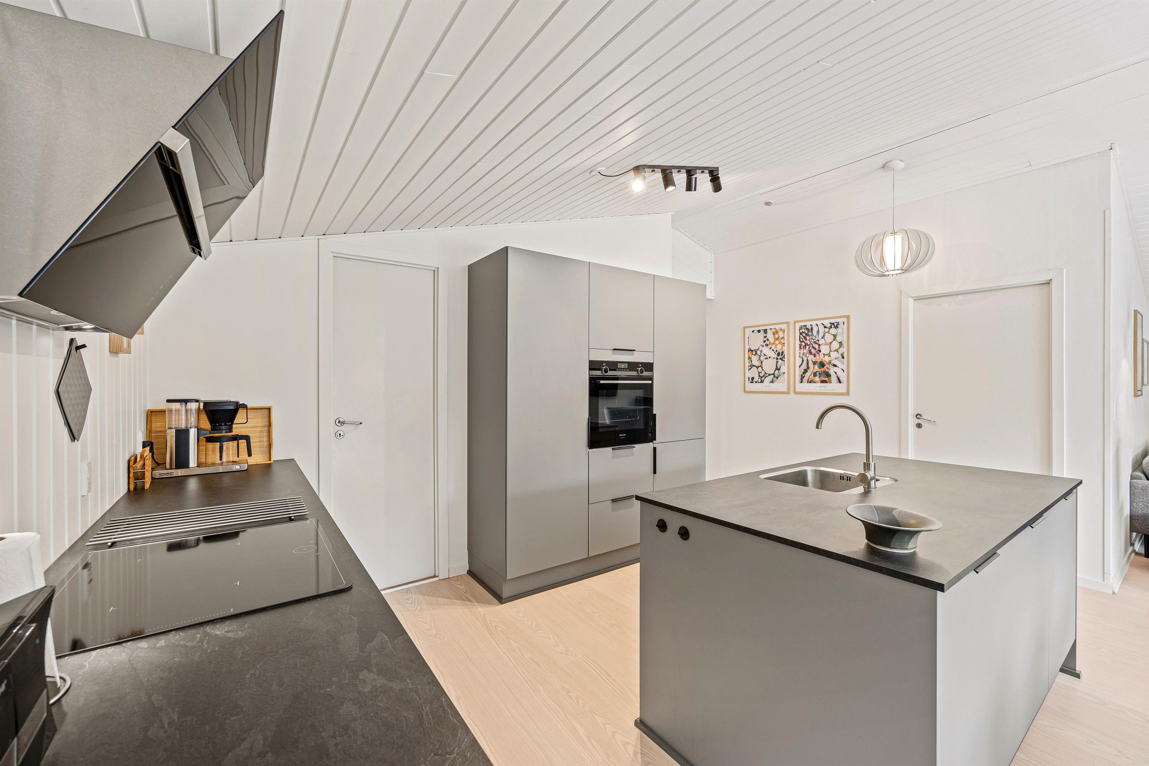 I køkkenet er der en praktisk opvaskemaskine, der gør oprydningen til en leg, så I hurtigt kan komme tilbage til jeres næste eventyr uden besvær. Et ekstra element af hygge findes i stuen, hvor en brændeovn venter på at give varme – her kan I også samles omkring et eller flere spil på husets playstation.