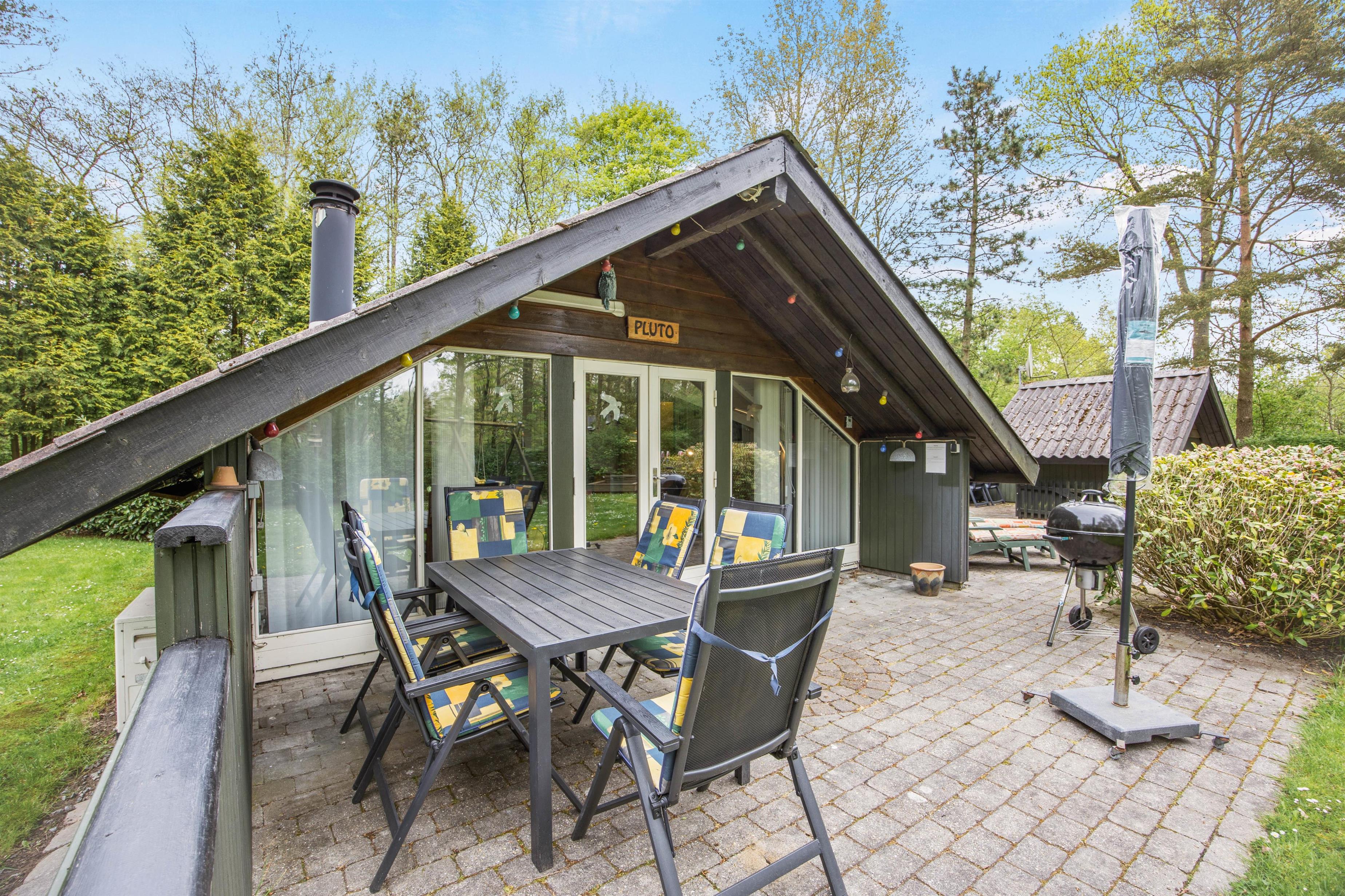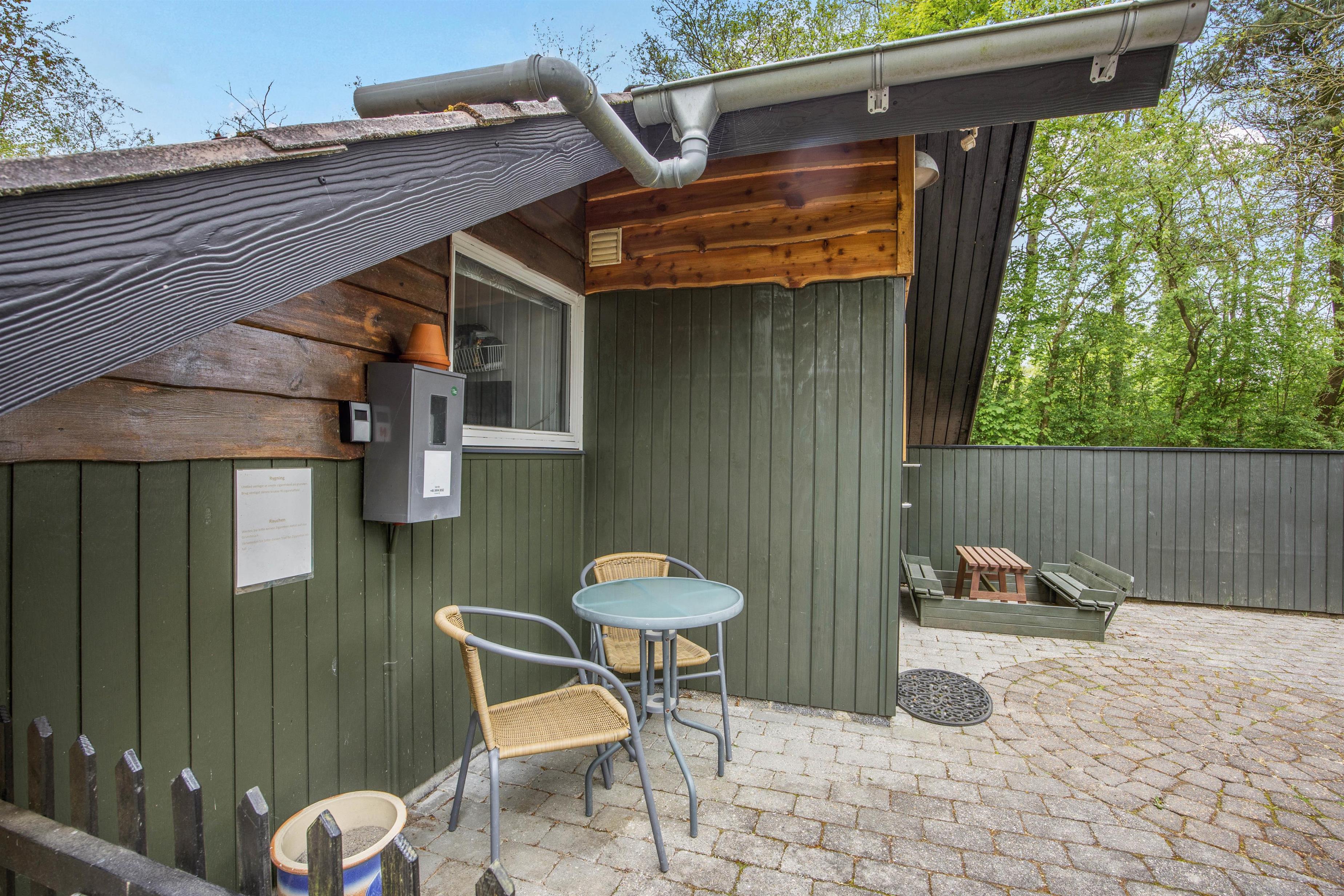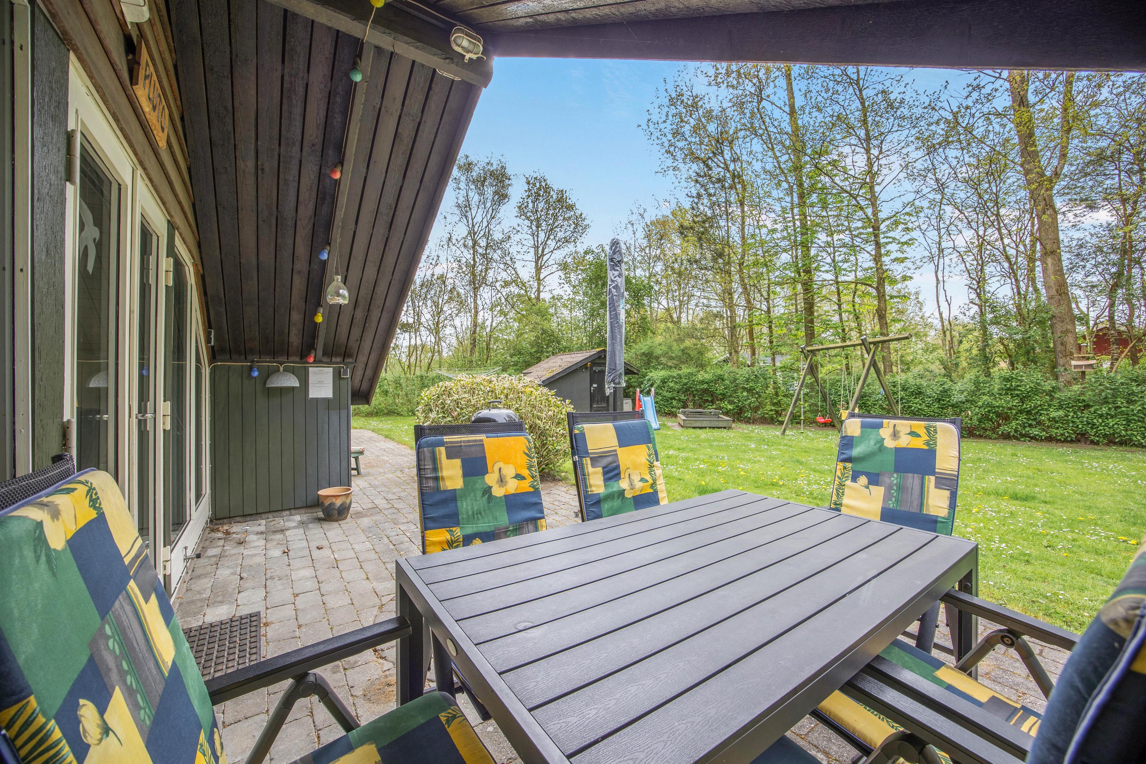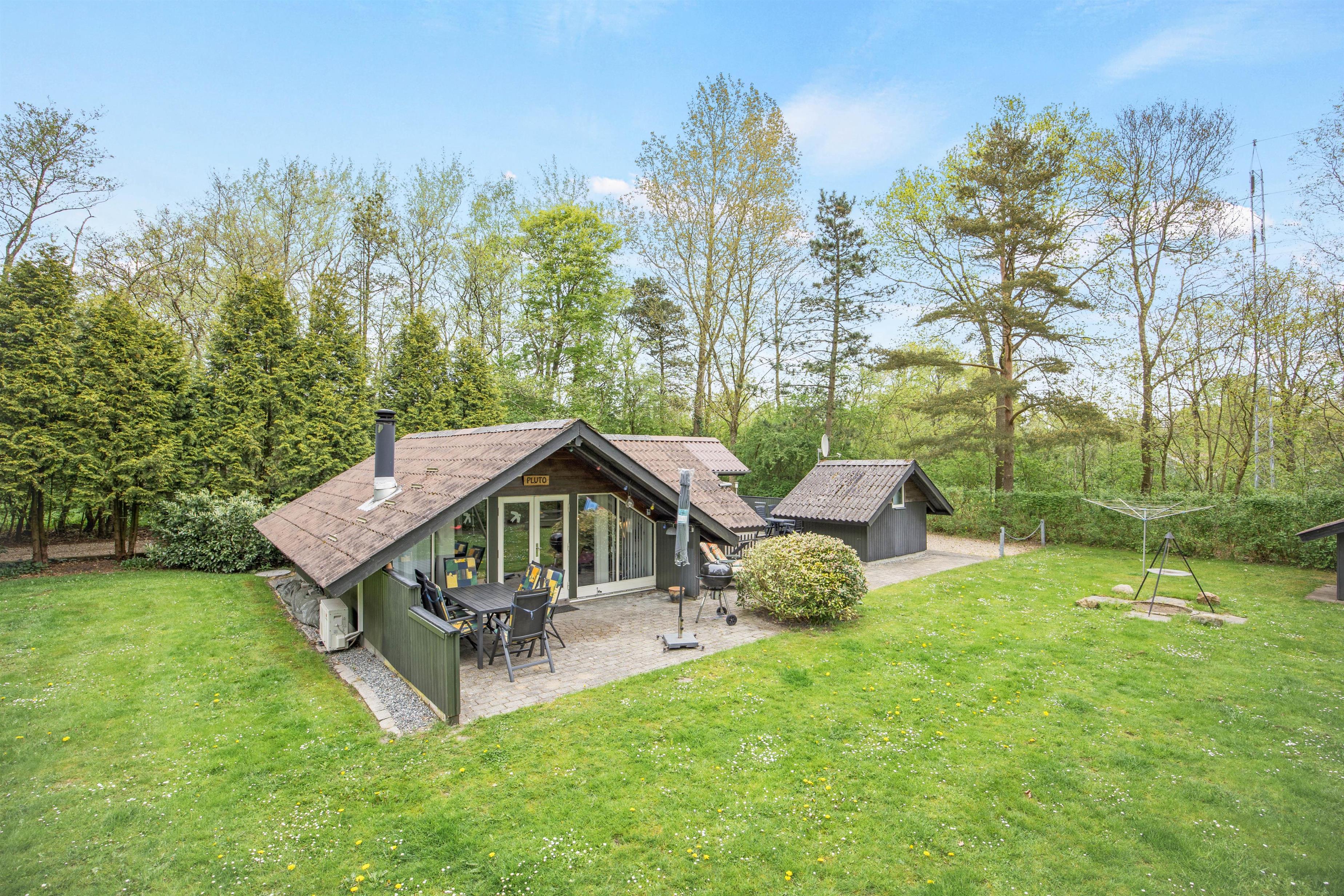 Dette 50 m² feriehus er træbeklædt og ligger på en grund omgivet af træer, hvilket giver masser af privatliv og ro, så I virkelig kan komme væk fra det hele og holde en dejlig og velfortjent ferie.