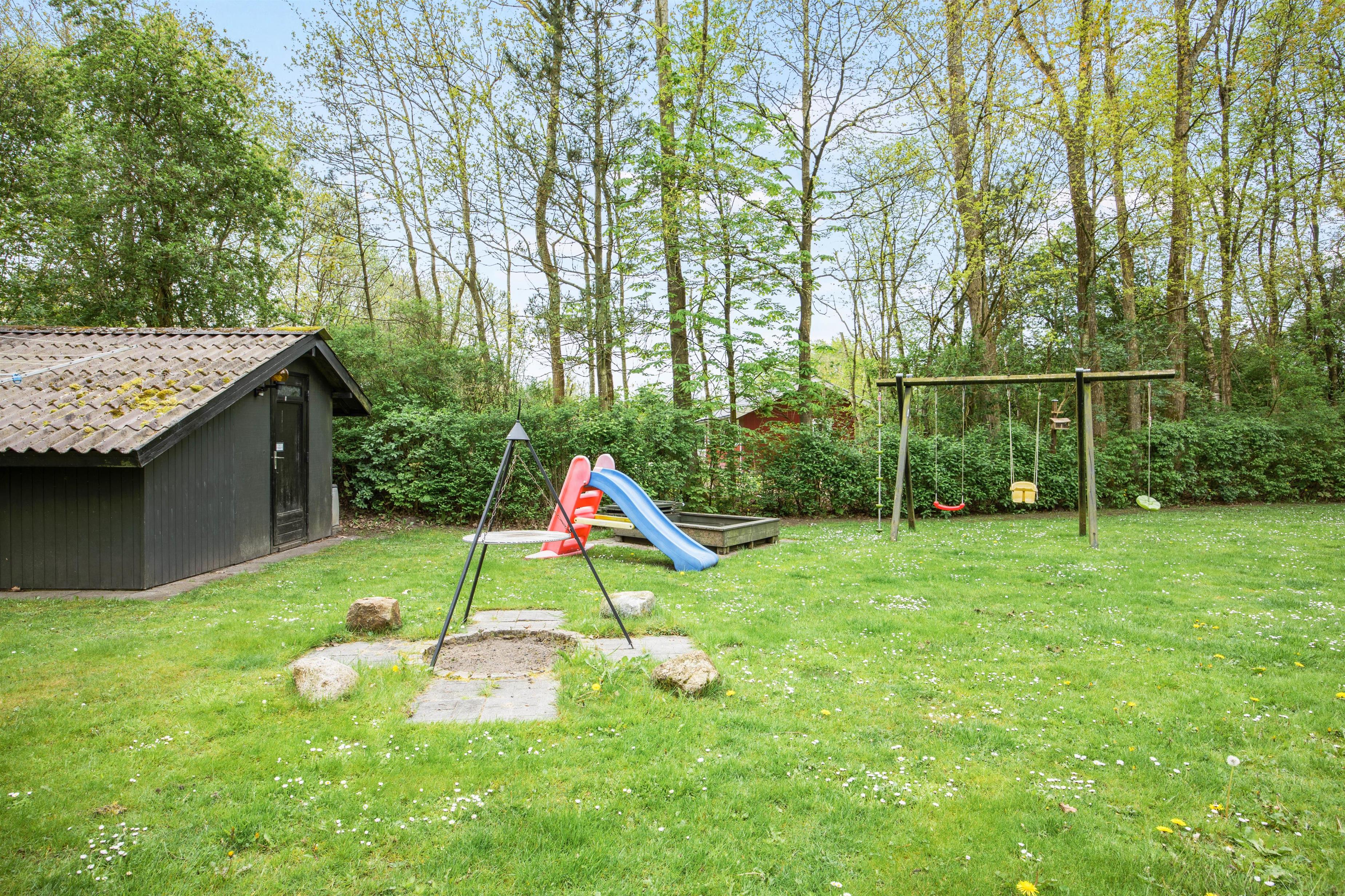 På den store, flotte og grønne plænegrund kan I lade jeres hunde løbe frit, og de små kan lege på gyngestativet og i sandkassen. Her er der også rig mulighed for en masse boldspil. Om aftenen kan I tilberede en smagfuld middag på grillen.