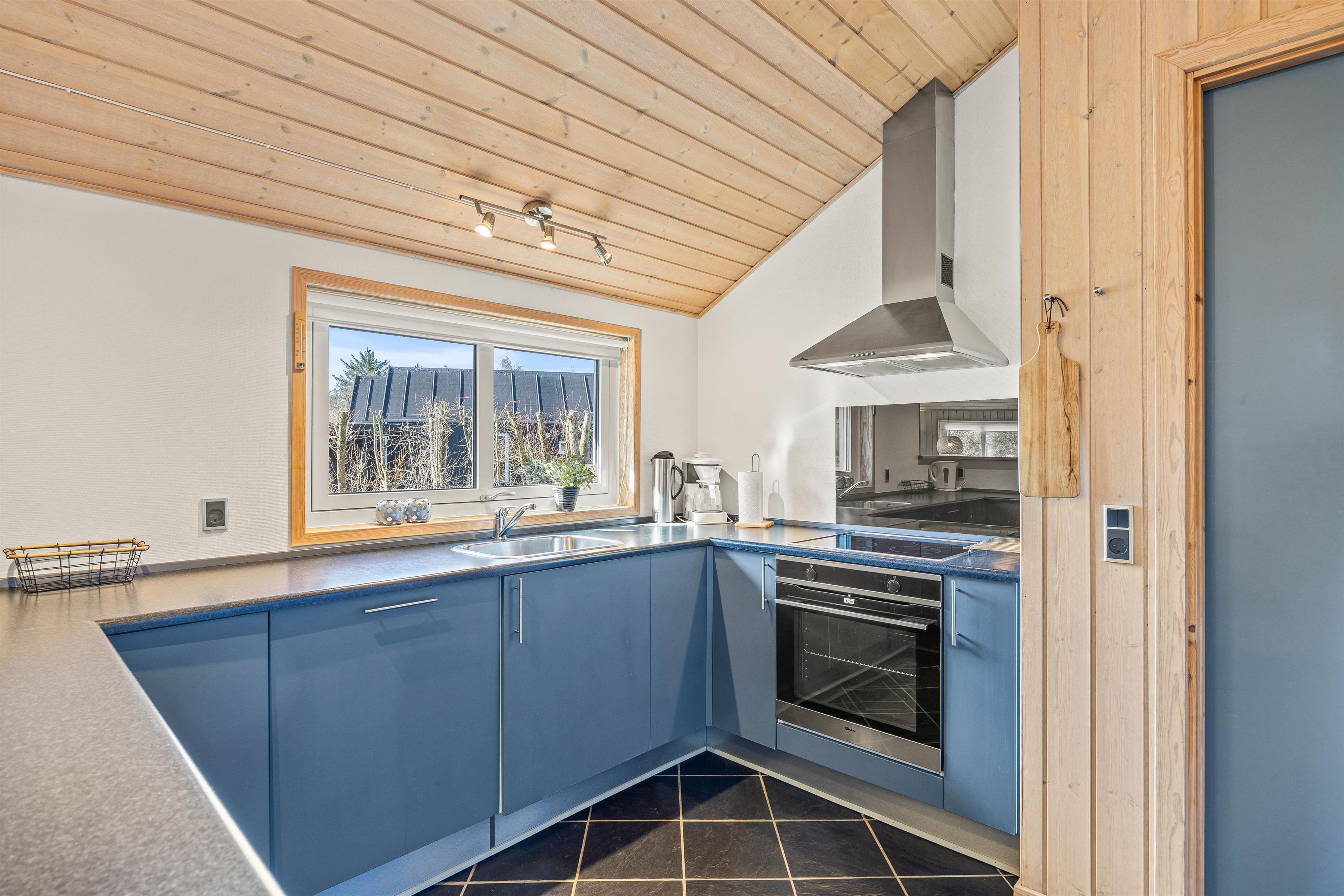 Blomstervangen 96 er indrettet med fokus på komfort og afslapning, som også er at mærke i husets enkle, men charmende karakter. Træder man ind i sommerhuset bliver man ført ind i det hyggelige køkkenalrum, der med højt til loftet og masser af plads til både at snakke om dagens begivenheder og nyde et veletablerede måltid i ro og mag.