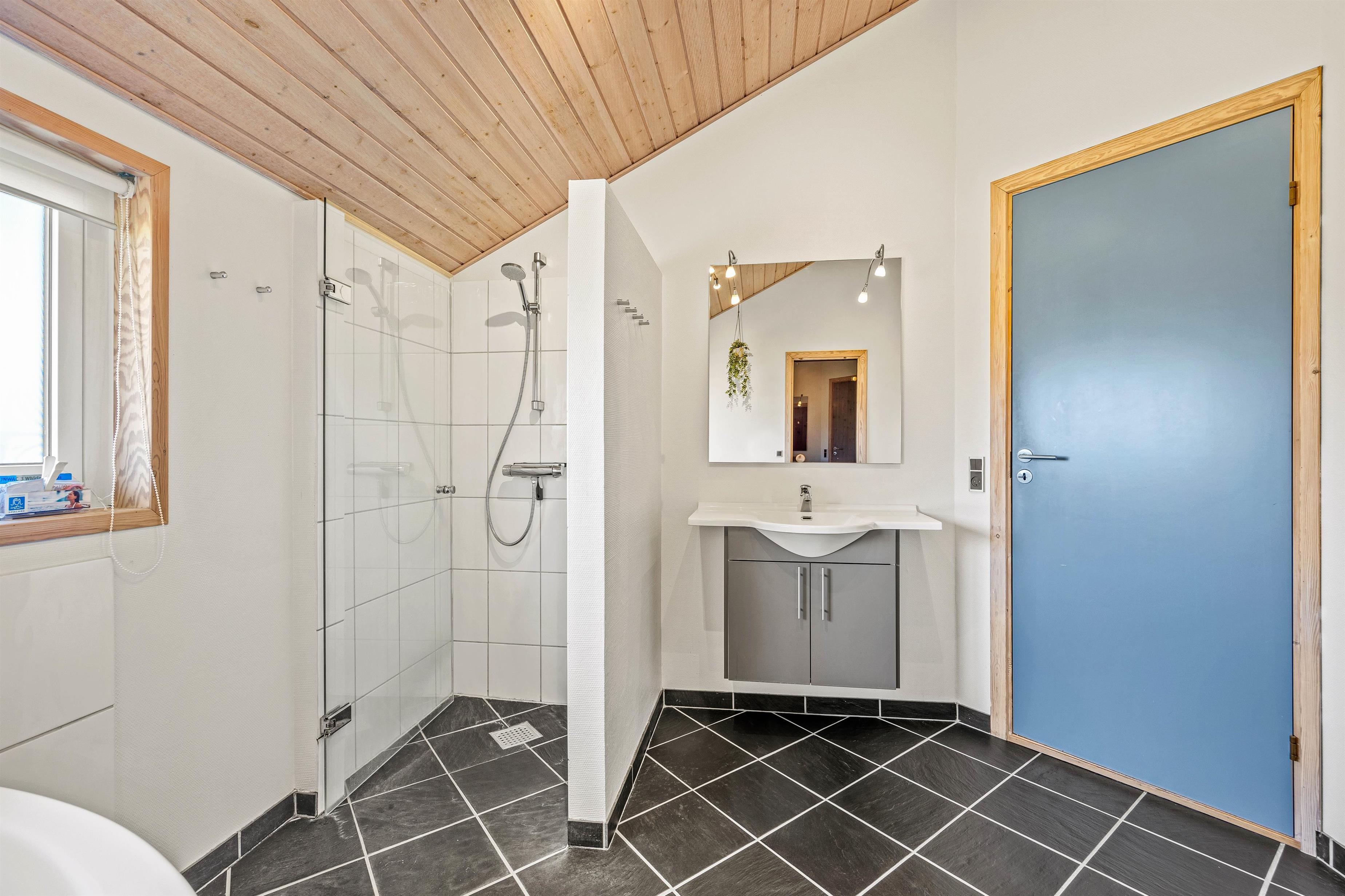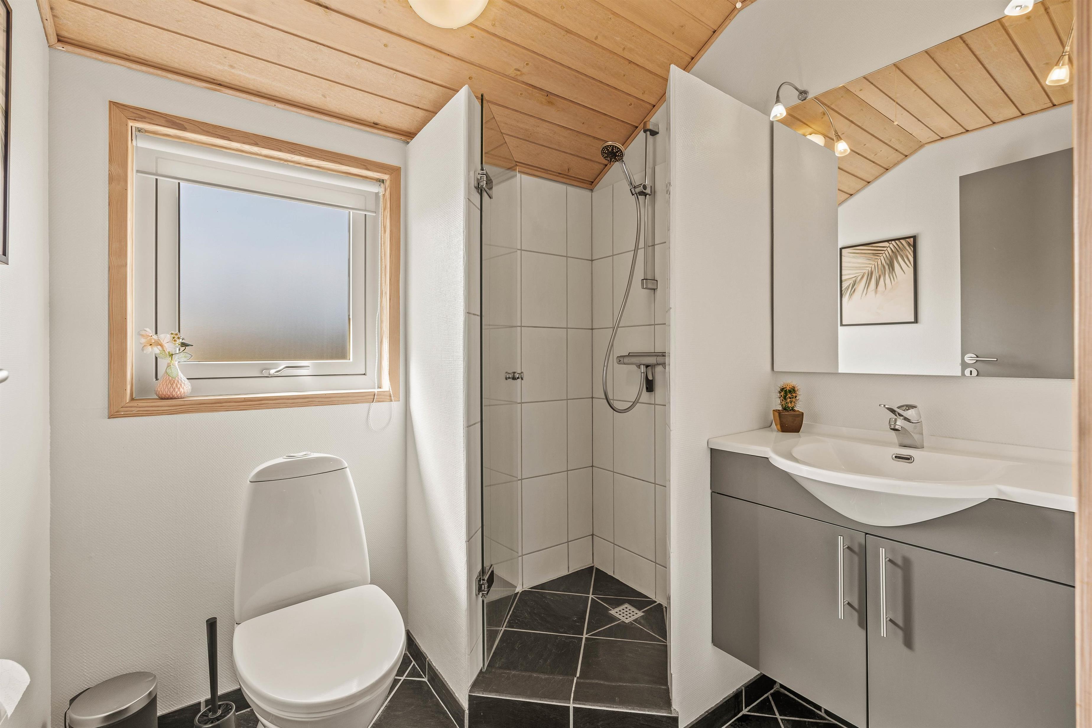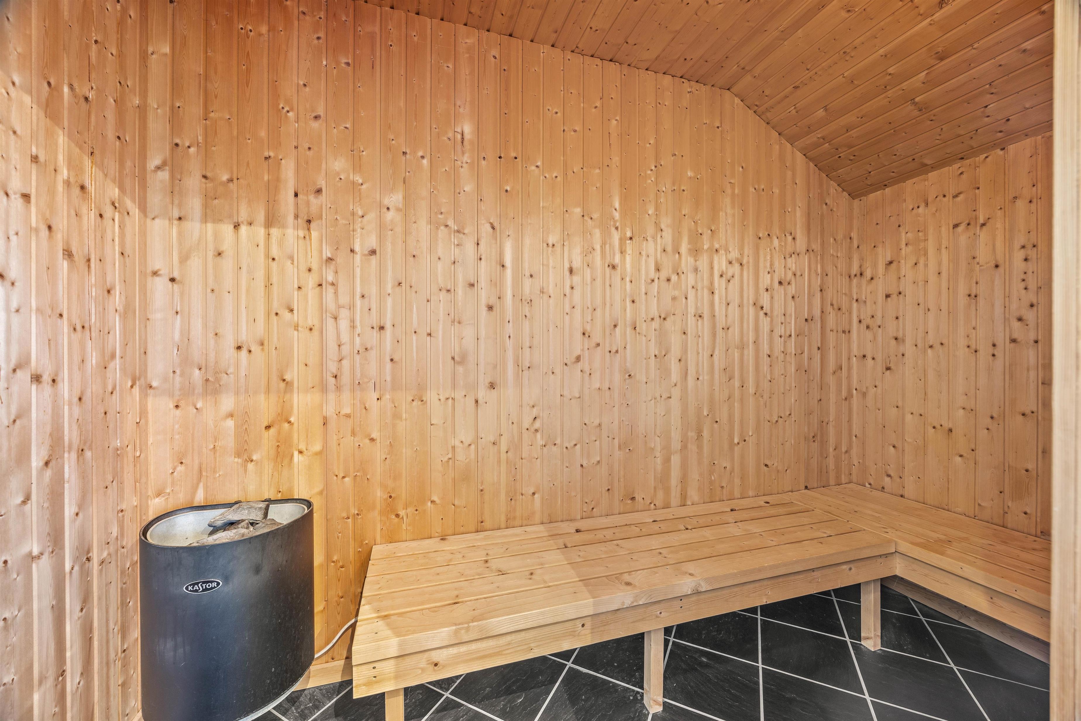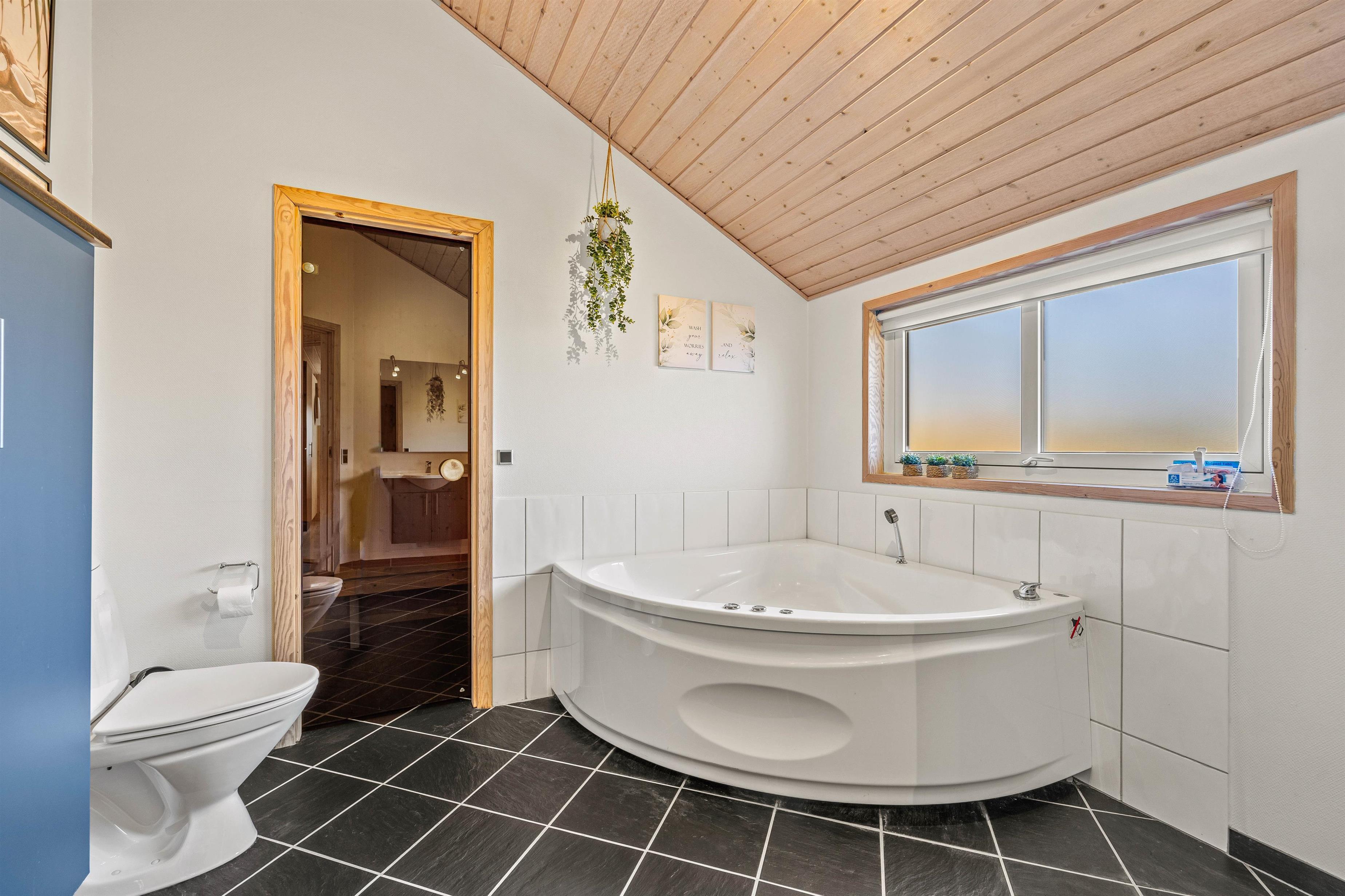 For en ekstra portion luksuriøsitet er sommerhuset udstyret med 2 lækre badeværelser. Det ene er toppet med både sauna og tømmespa for 2 personer, hvilket giver jer mulighed for at nyde en privat wellness-oplevelse.